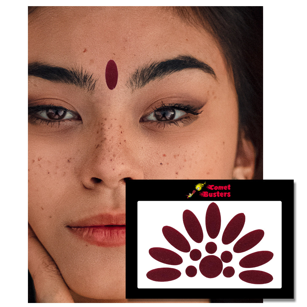 Comet Busters® Maroon Oval, Round – Velvet – Handcrafted, Reusable & Skin-Friendly Bindis for Casual Wear (15mm) – Forehead Bindi Stickers for Women & Girls – BIN1891