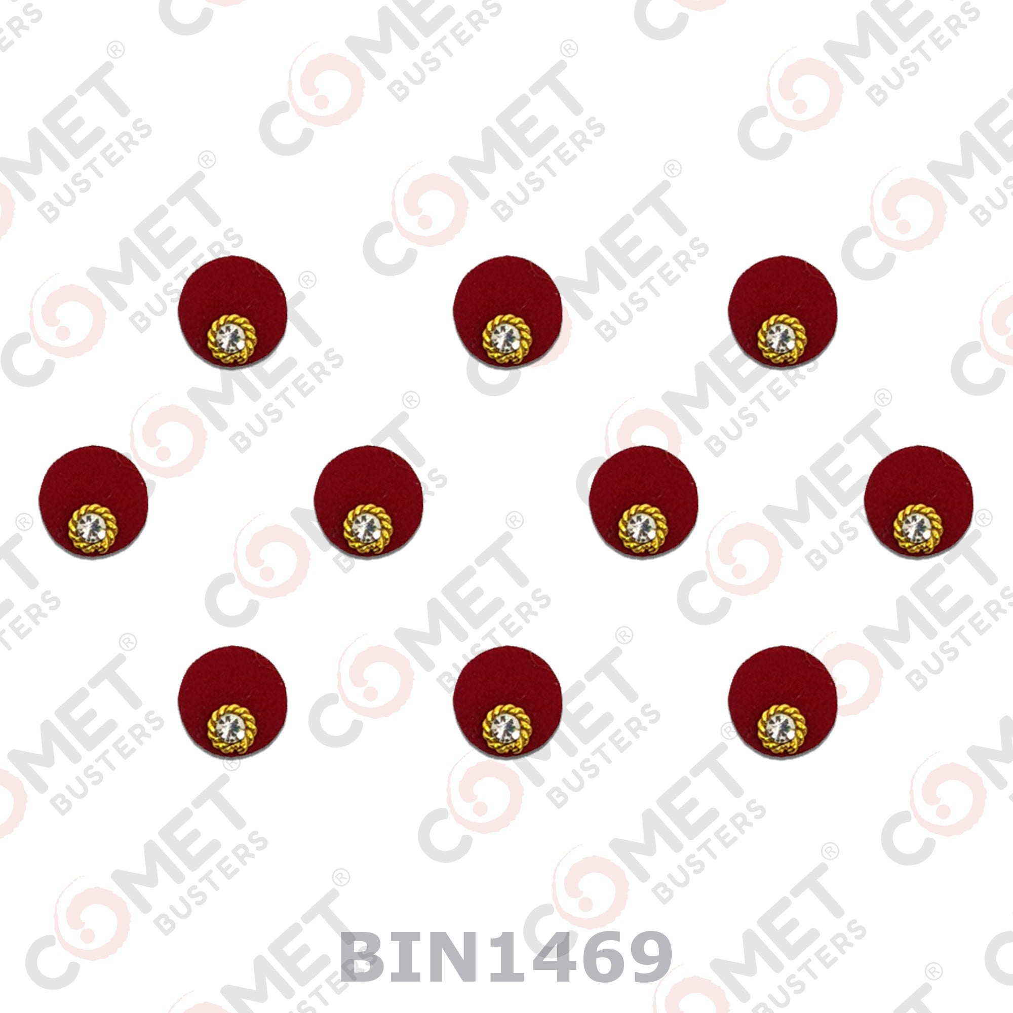Comet Busters® Maroon Round – Diamond, Velvet, Shiny Beads – Handcrafted, Reusable & Skin-Friendly Bindis for Casual Wear (7mm) – Forehead Bindi Stickers for Women & Girls – BIN1469