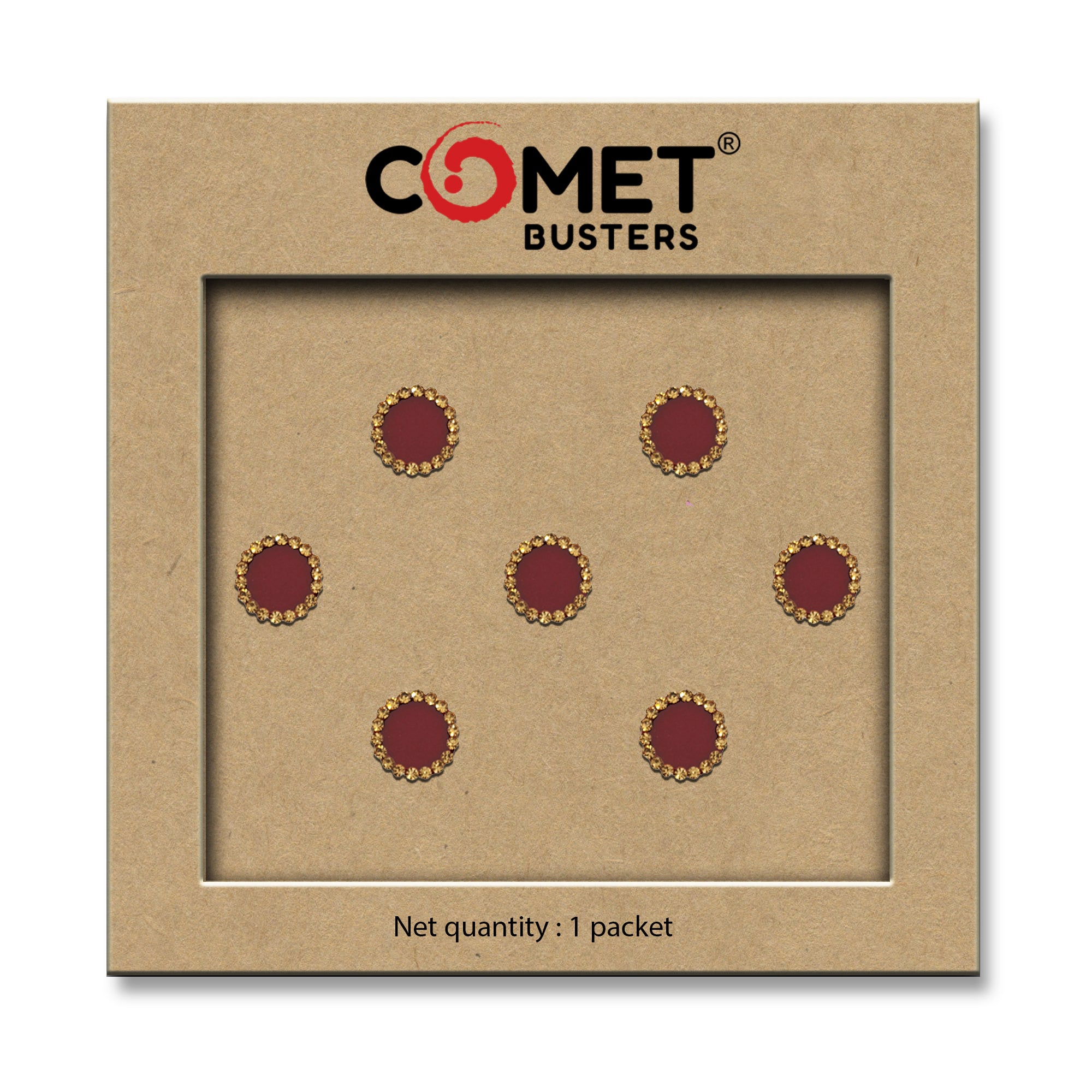 Comet Busters® Maroon Round – Velvet, Diamond – Handcrafted, Reusable & Skin-Friendly Bindis for Party Wear (10mm) – Forehead Bindi Stickers for Women & Girls – BIN1654