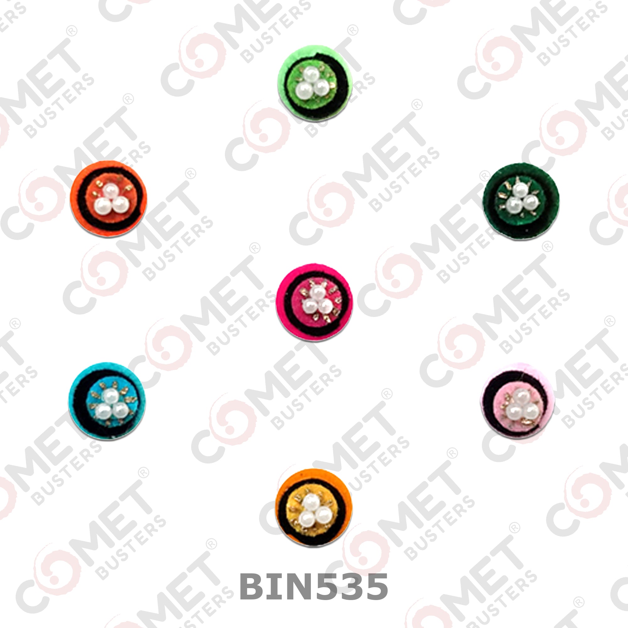 Comet Busters® Multicolor Round – Velvet, Shiny Beads – Handcrafted, Reusable & Skin-Friendly Bindis for Partywear Wear (5mm) – Forehead Bindi Stickers for Women & Girls – BIN535