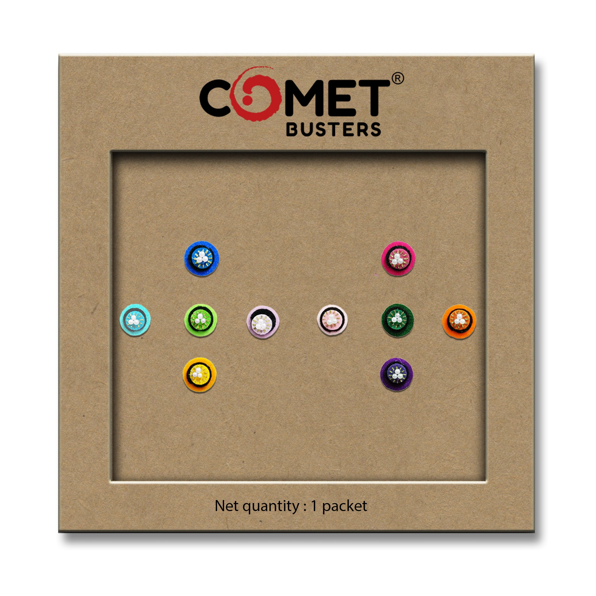 Comet Busters® Multicolor Round – Velvet, Shiny Beads – Handcrafted, Reusable & Skin-Friendly Bindis for Partywear Wear (7mm) – Forehead Bindi Stickers for Women & Girls – BIN532