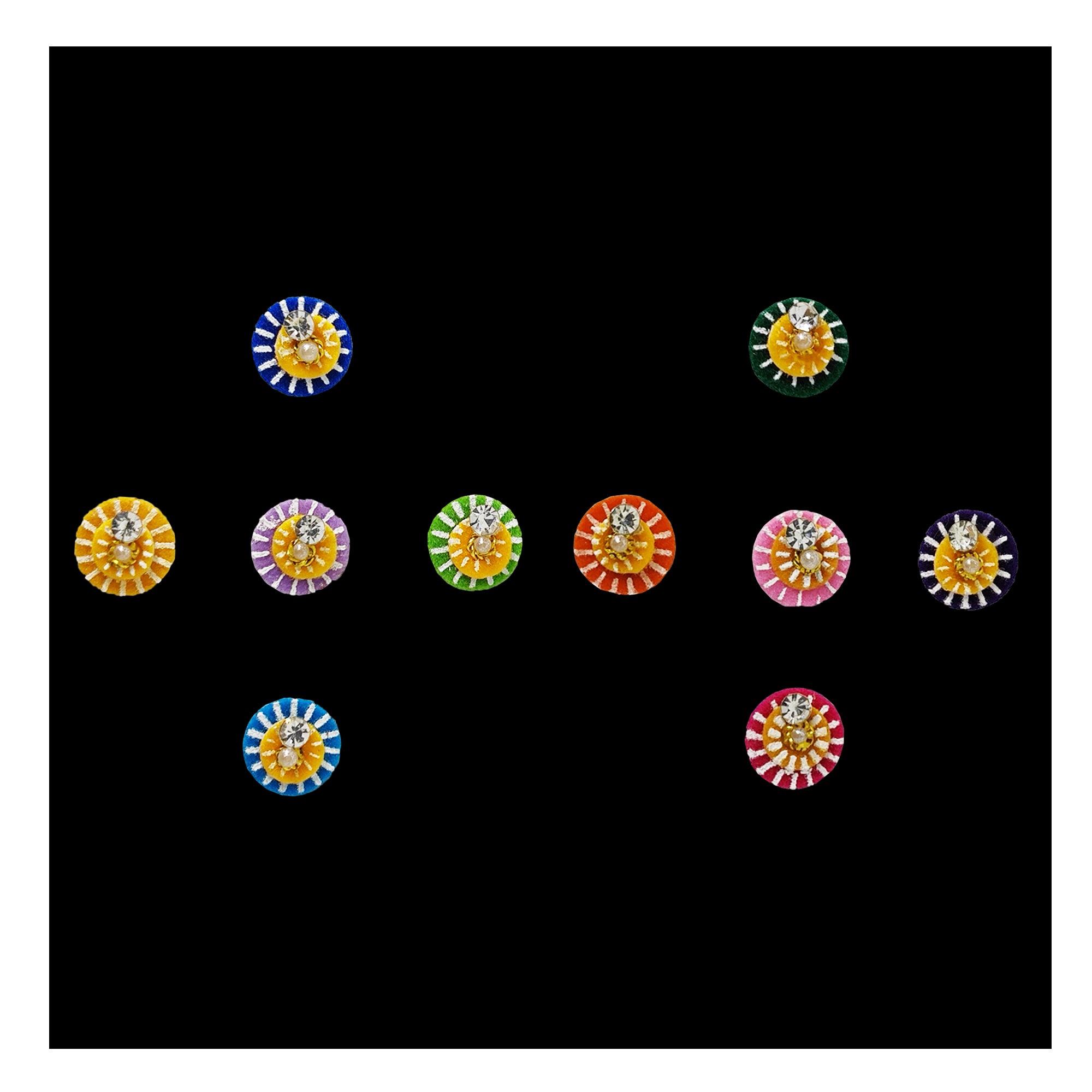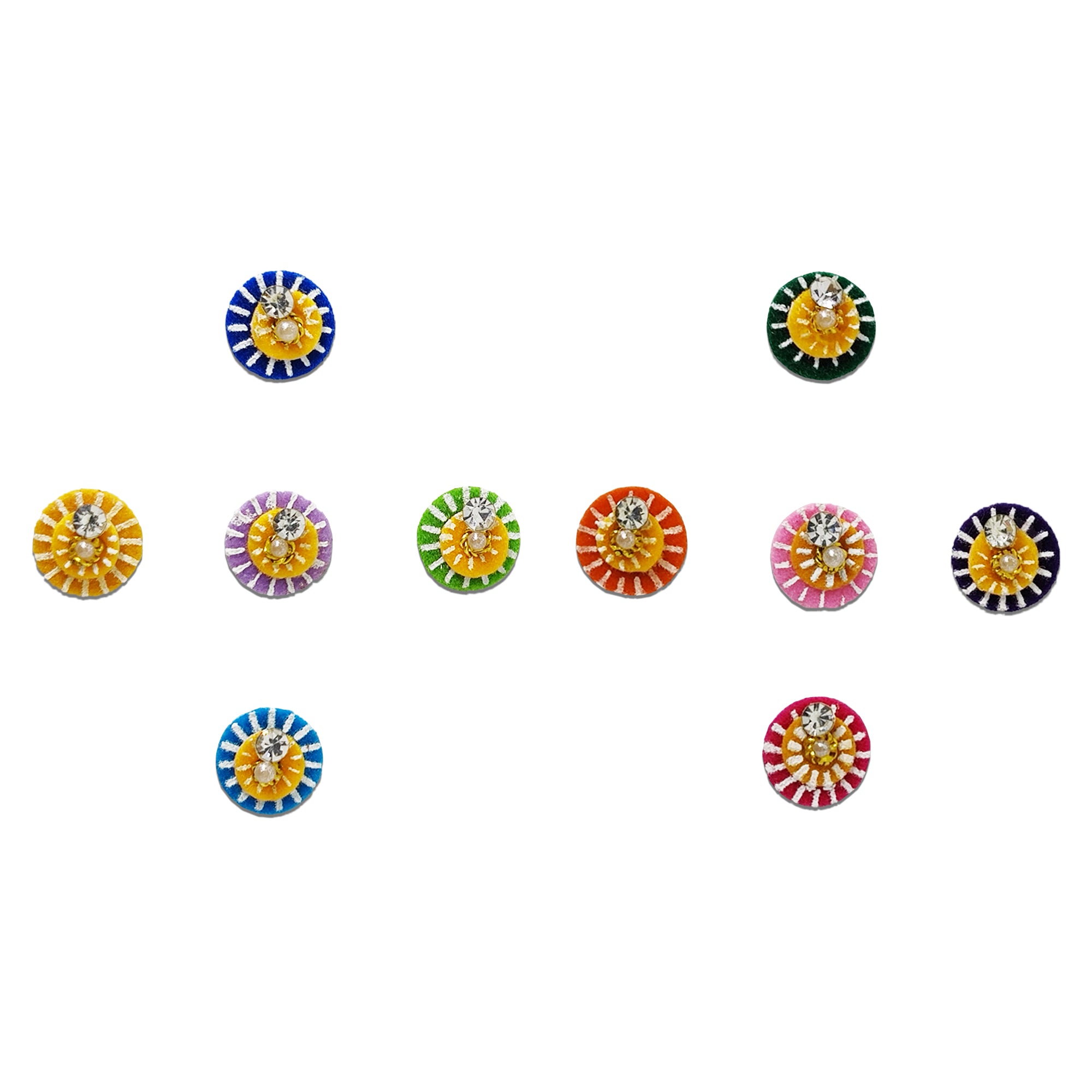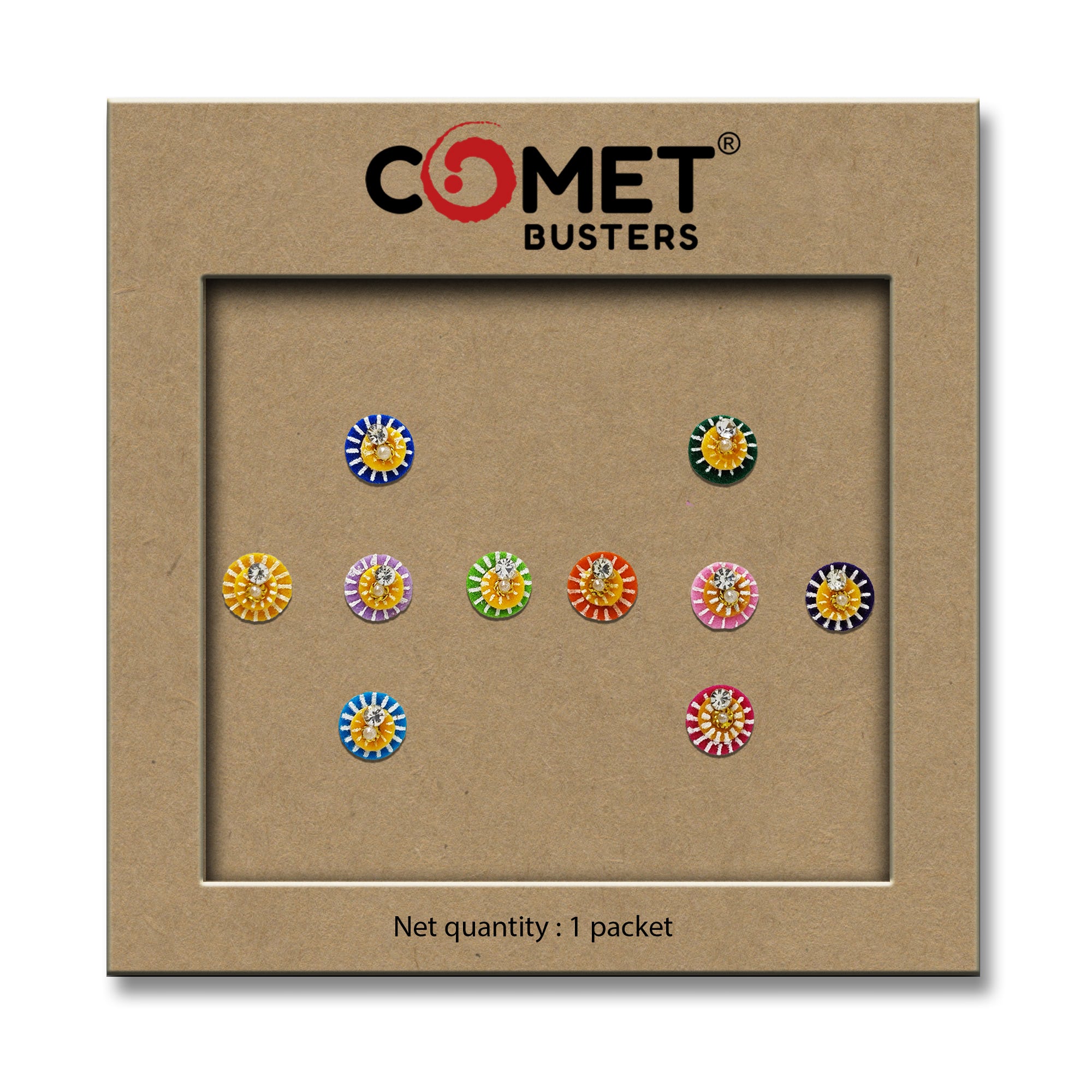 Comet Busters® Multicolor Round – Diamond, Velvet – Handcrafted, Reusable & Skin-Friendly Bindis for Partywear Wear (6mm) – Forehead Bindi Stickers for Women & Girls – BIN531