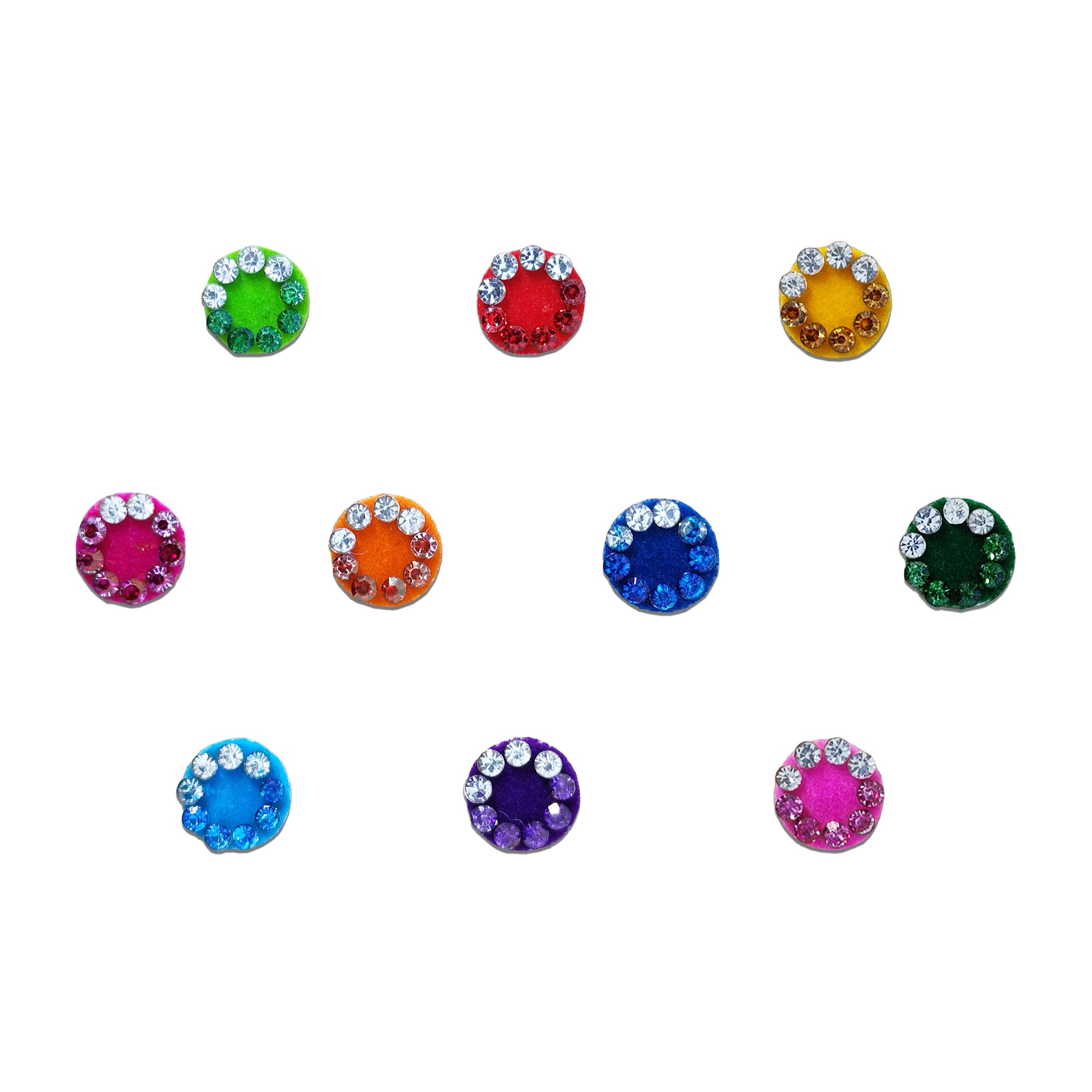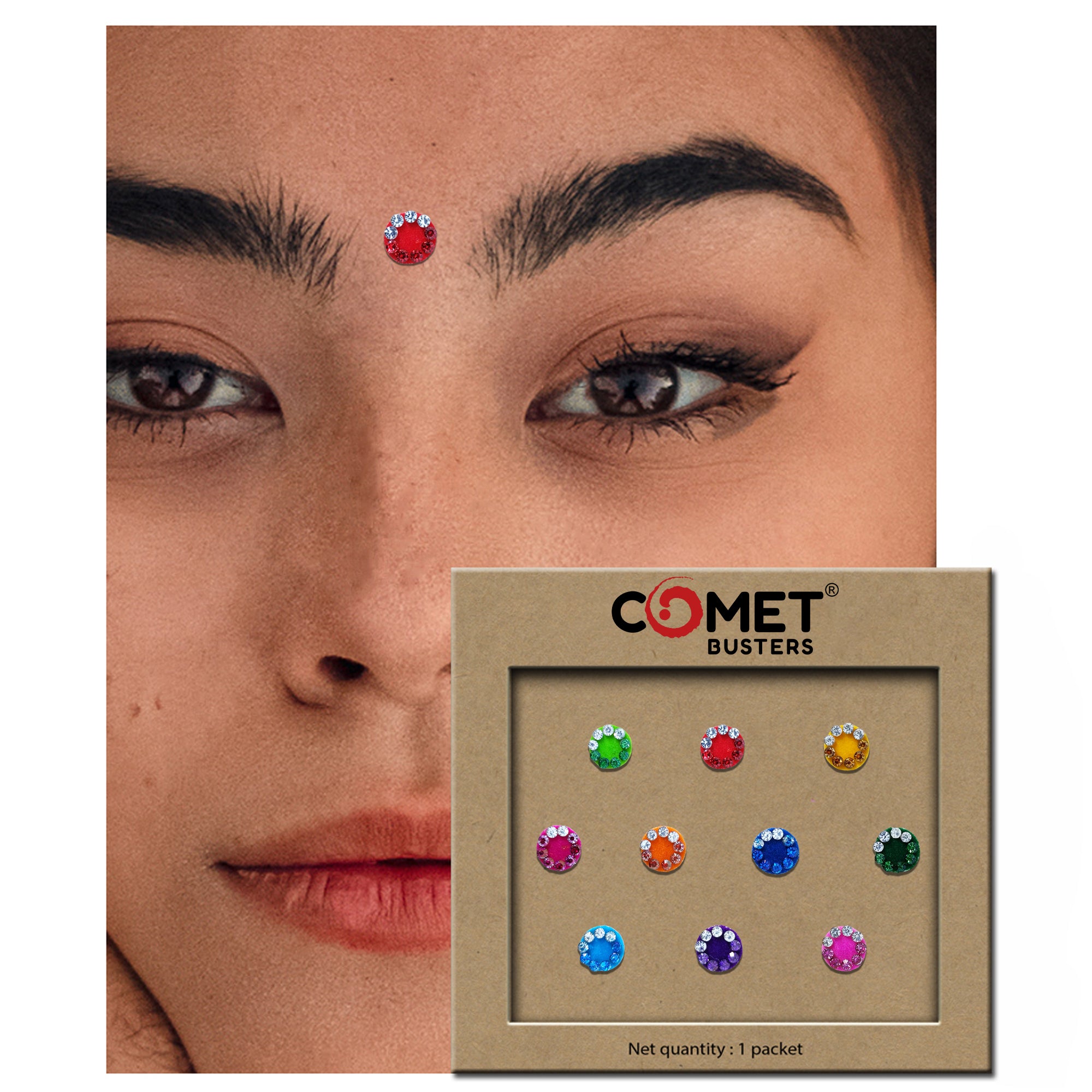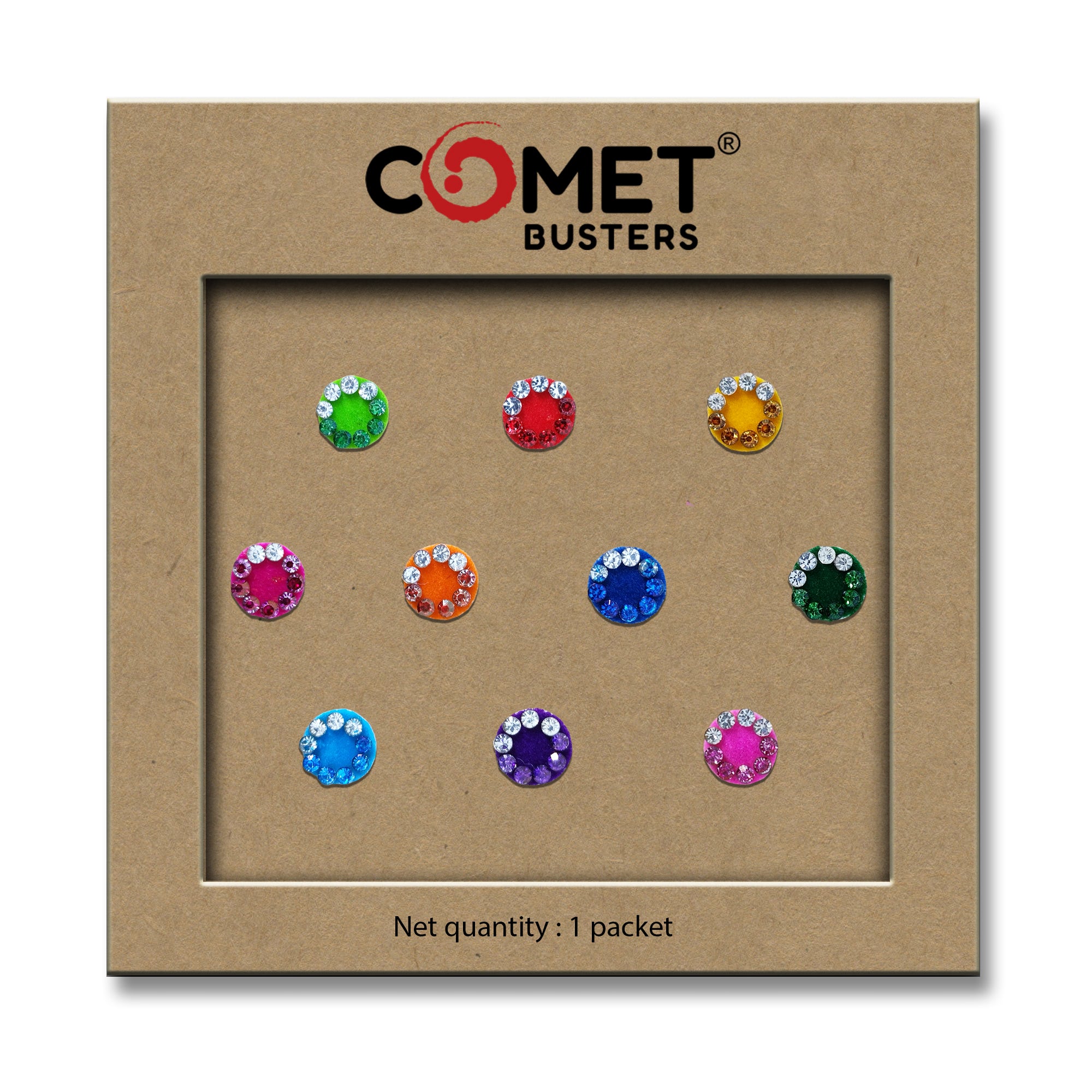 Comet Busters® Multicolor Round – Diamond, Velvet – Handcrafted, Reusable & Skin-Friendly Bindis for Bridal Wear (7mm) – Forehead Bindi Stickers for Women & Girls – BIN968