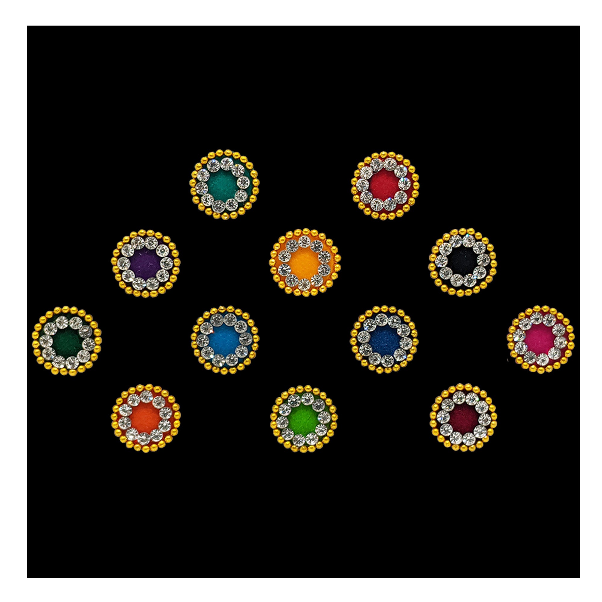 Comet Busters® Multicolor Round – Velvet, Diamond, Shiny Beads – Handcrafted, Reusable & Skin-Friendly Bindis for Party Wear (8mm) – Forehead Bindi Stickers for Women & Girls – BIN1636
