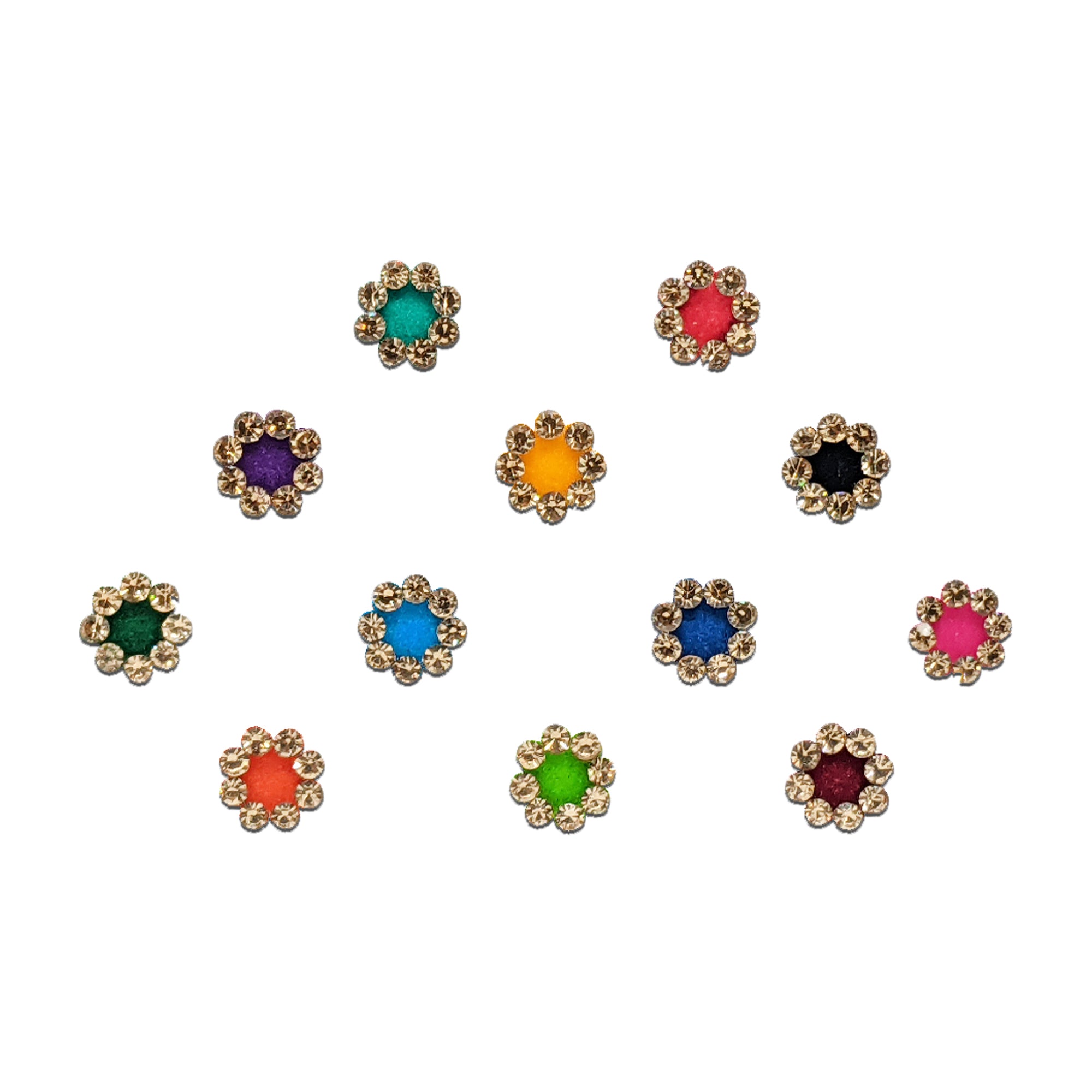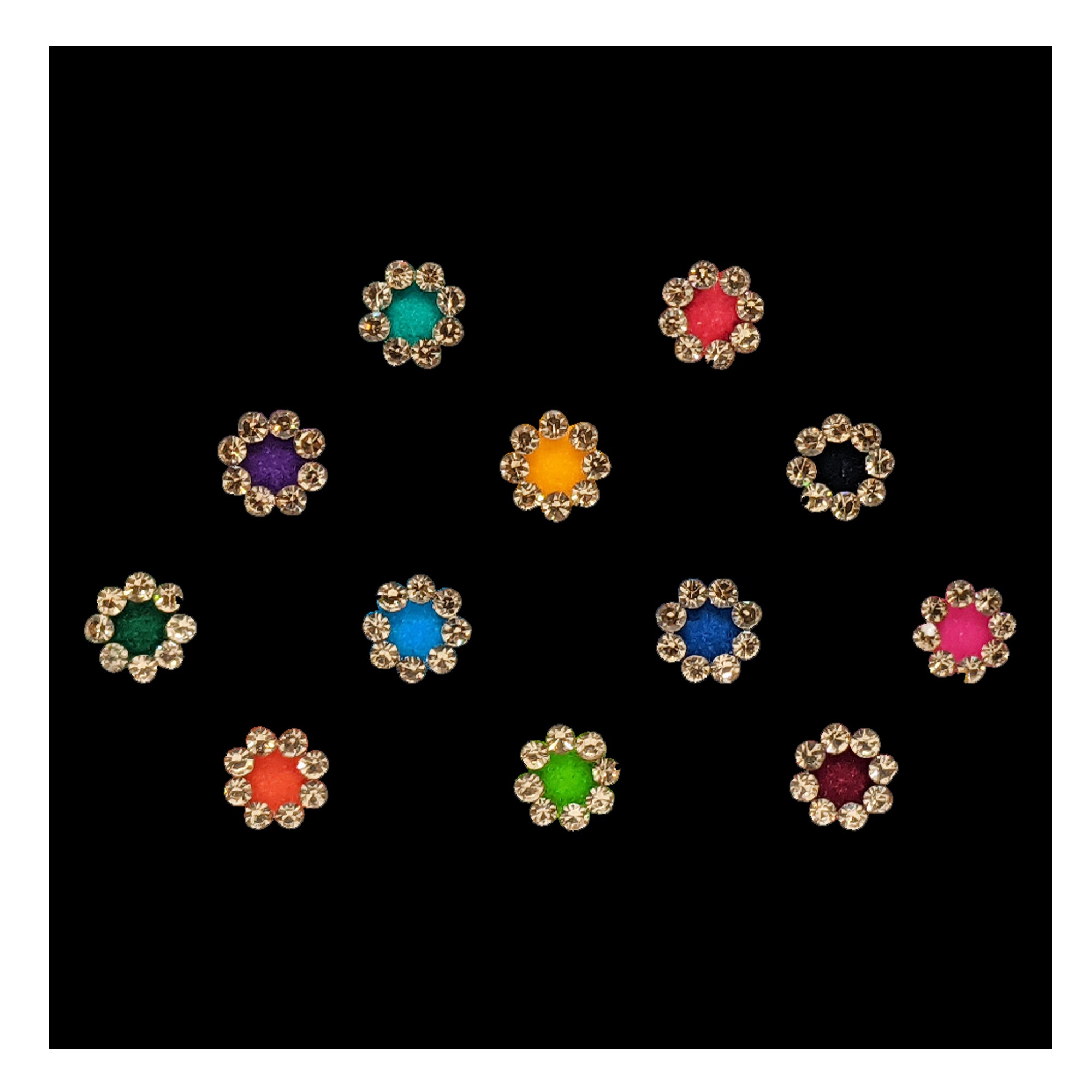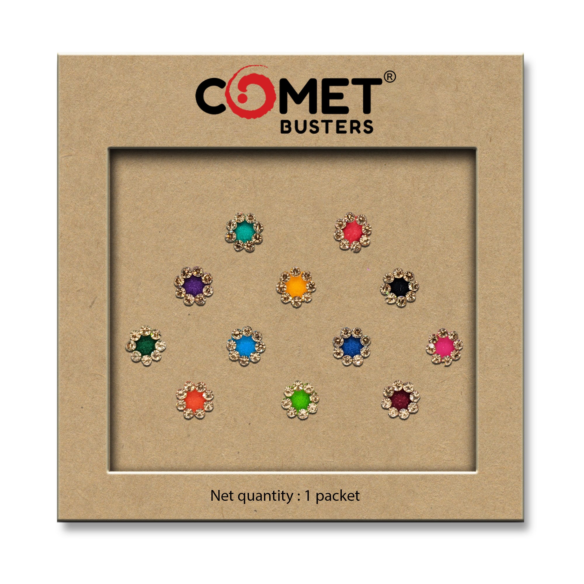 Comet Busters® Multicolor Round – Velvet, Diamond – Handcrafted, Reusable & Skin-Friendly Bindis for Party Wear (5mm) – Forehead Bindi Stickers for Women & Girls – BIN1642
