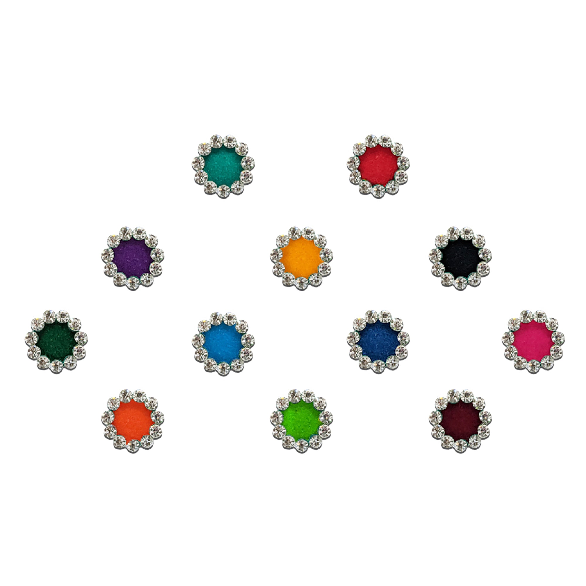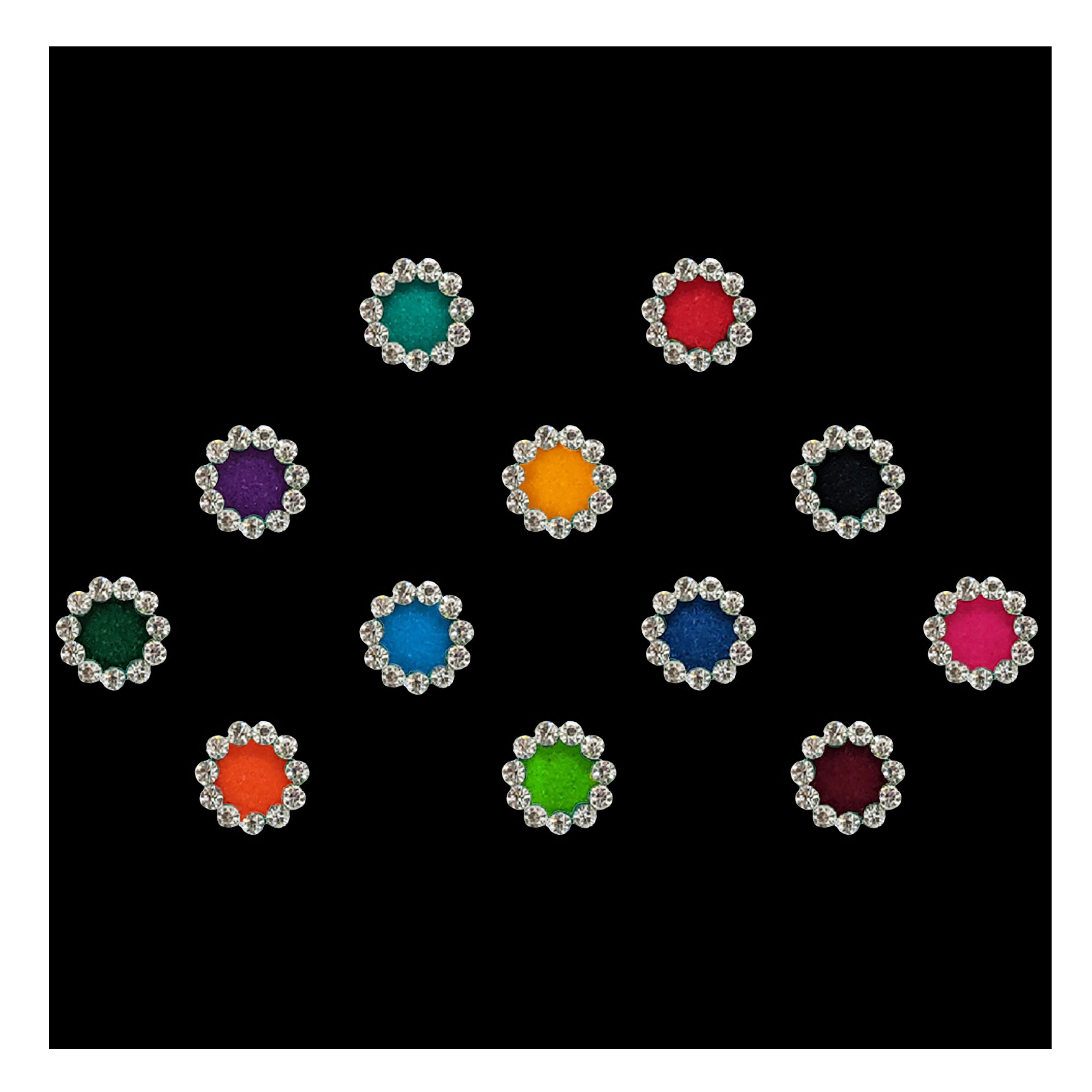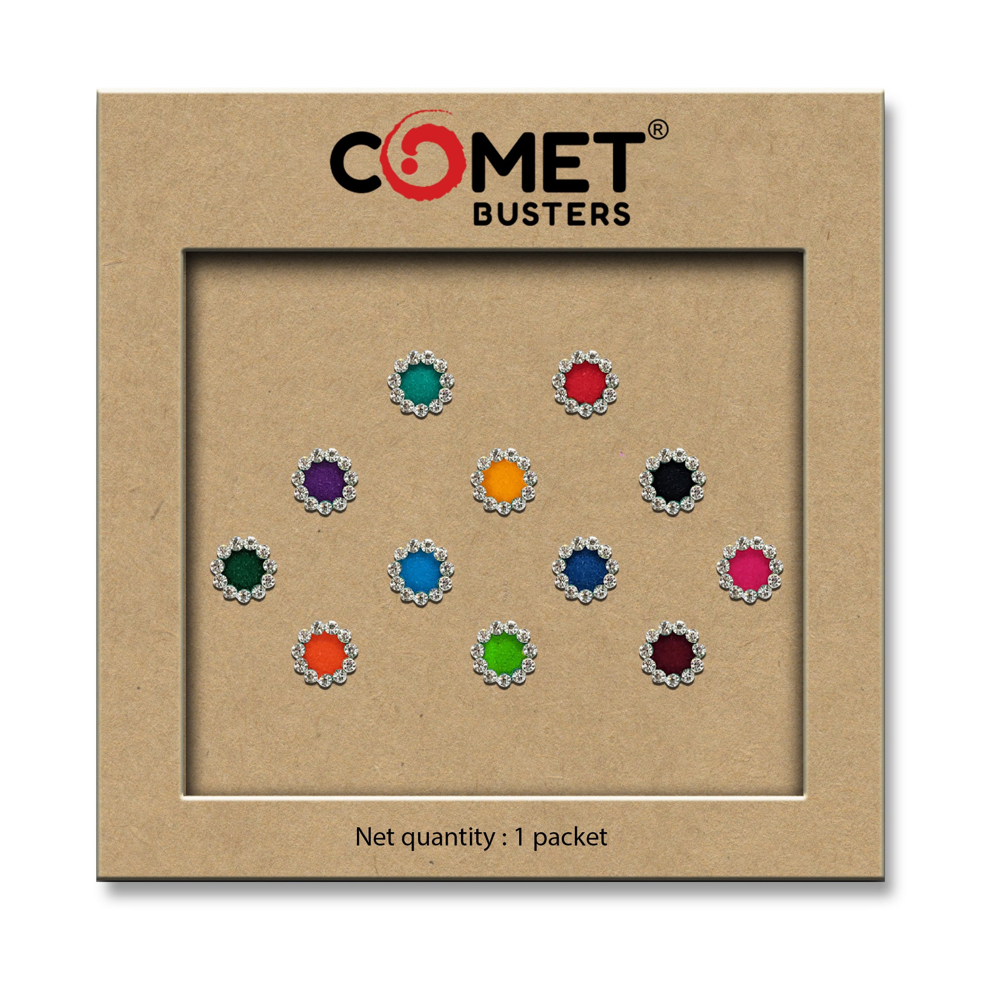 Comet Busters® Multicolor Round – Velvet, Diamond – Handcrafted, Reusable & Skin-Friendly Bindis for Party Wear (7mm) – Forehead Bindi Stickers for Women & Girls – BIN1641