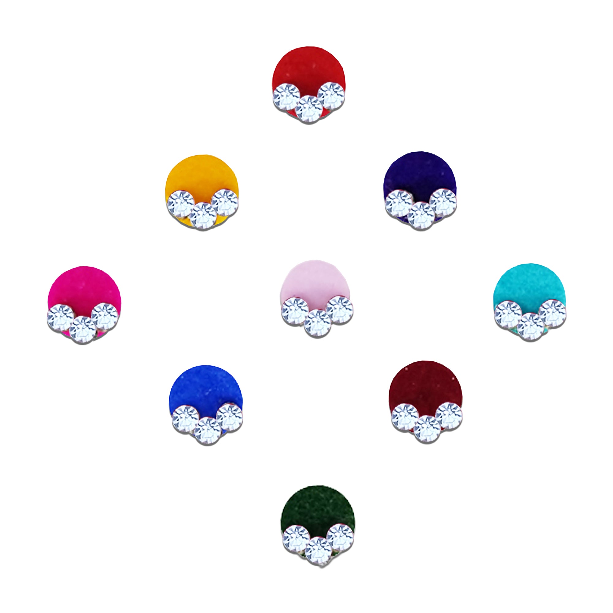 Comet Busters® Multicolor Round – Diamond, Velvet – Handcrafted, Reusable & Skin-Friendly Bindis for Casual Wear (5mm) – Forehead Bindi Stickers for Women & Girls – BIN593