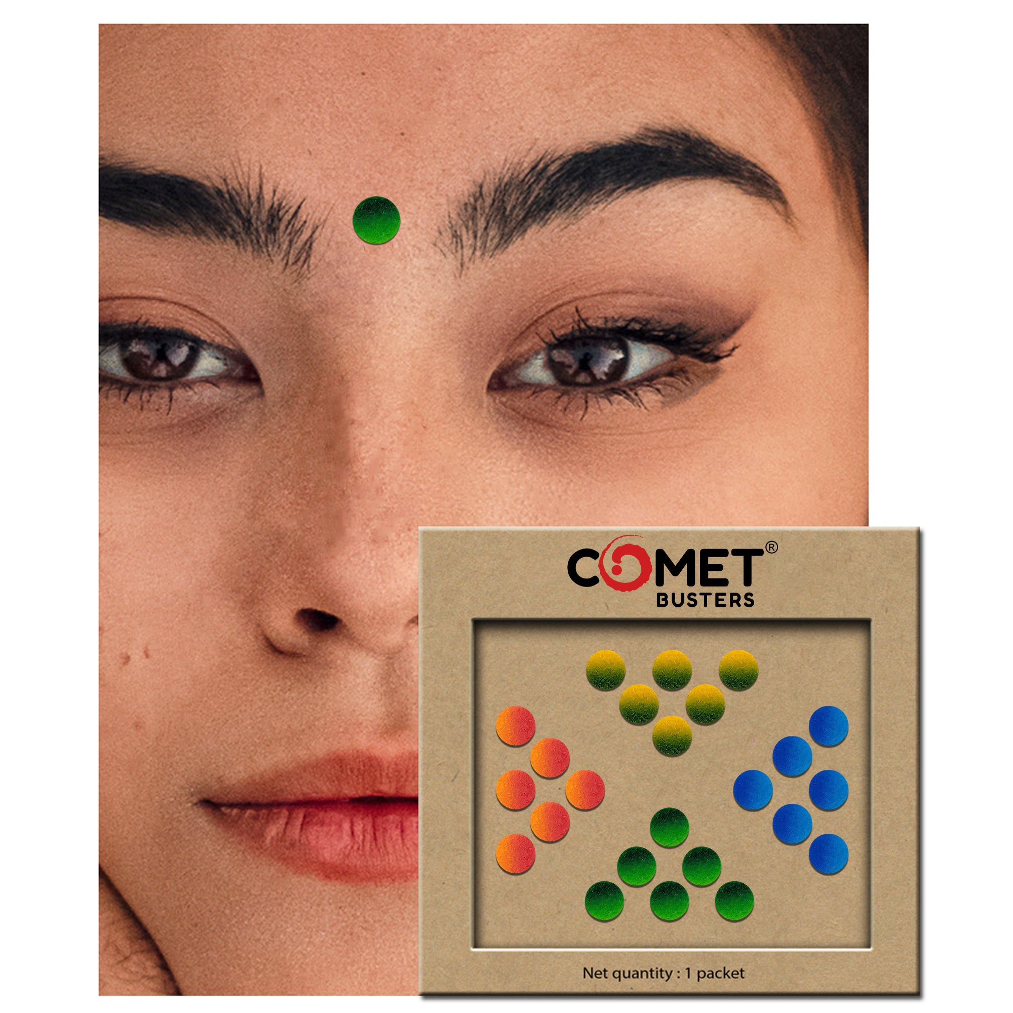 Comet Busters® Yellow, Orange, Green, Blue, Multicolor Round – Velvet, Diamond – Handcrafted, Reusable & Skin-Friendly Bindis for Party Wear (6mm) – Forehead Bindi Stickers for Women & Girls – BIN1557
