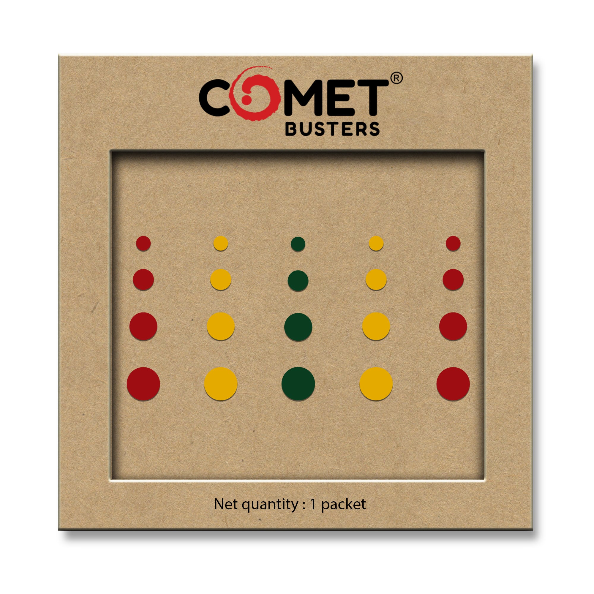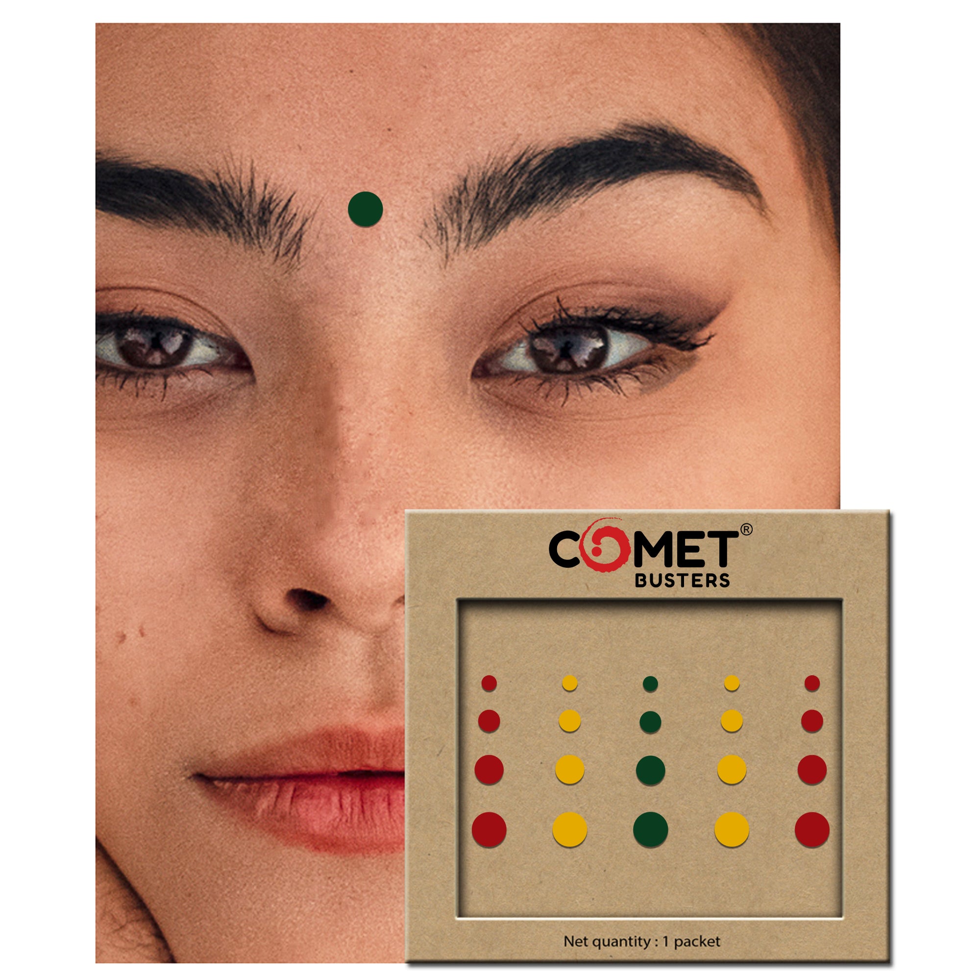 Comet Busters® Red, Yellow, Green, Multicolor Round – Velvet – Handcrafted, Reusable & Skin-Friendly Bindis for Casual Wear (4, 5, 6, 7mm) – Forehead Bindi Stickers for Women & Girls – BIN1544