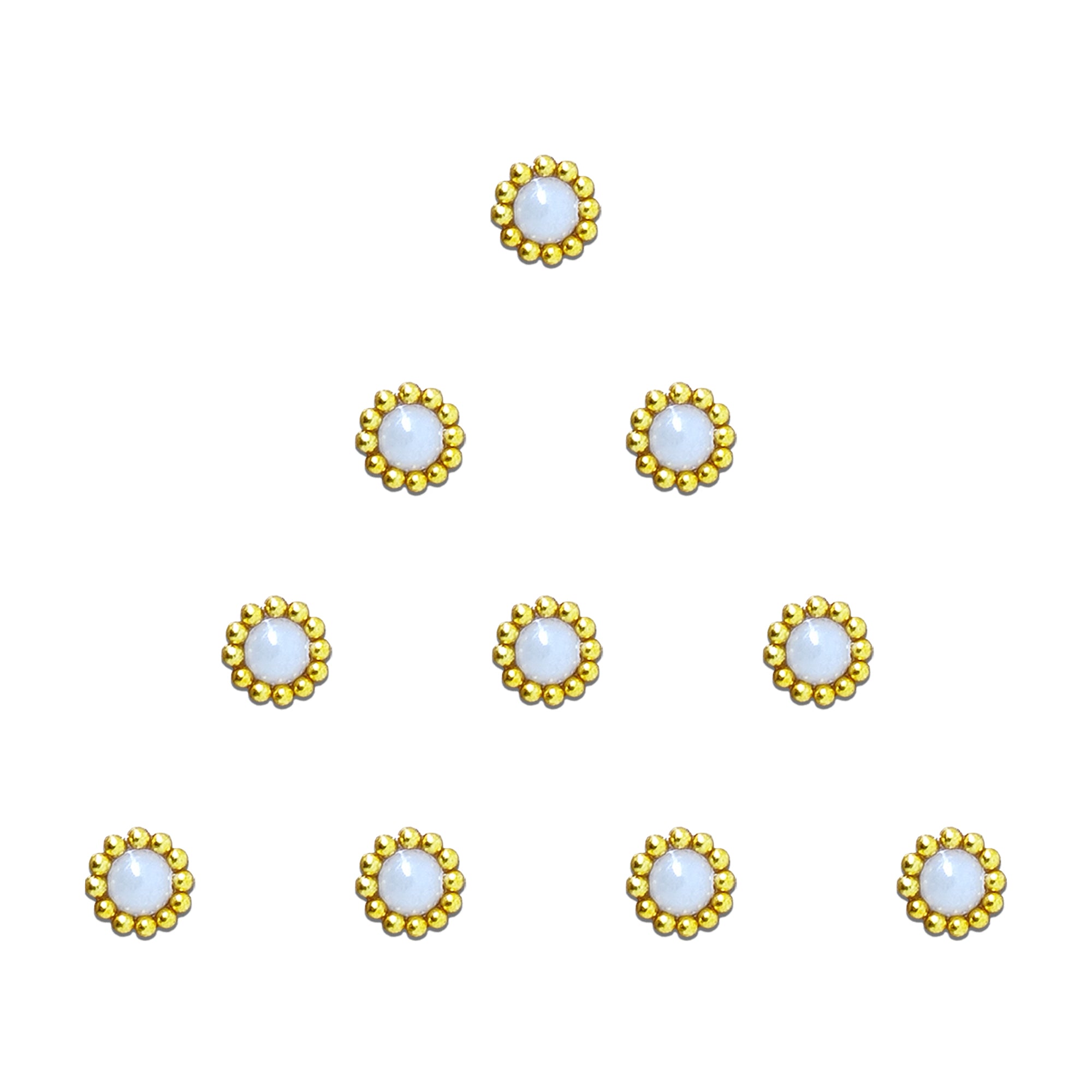 Comet Busters® Multicolor, Silver, Gold Round – Pearl, Shiny Beads – Handcrafted, Reusable & Skin-Friendly Bindis for Bridal Wear (5mm) – Forehead Bindi Stickers for Women & Girls – BIN480