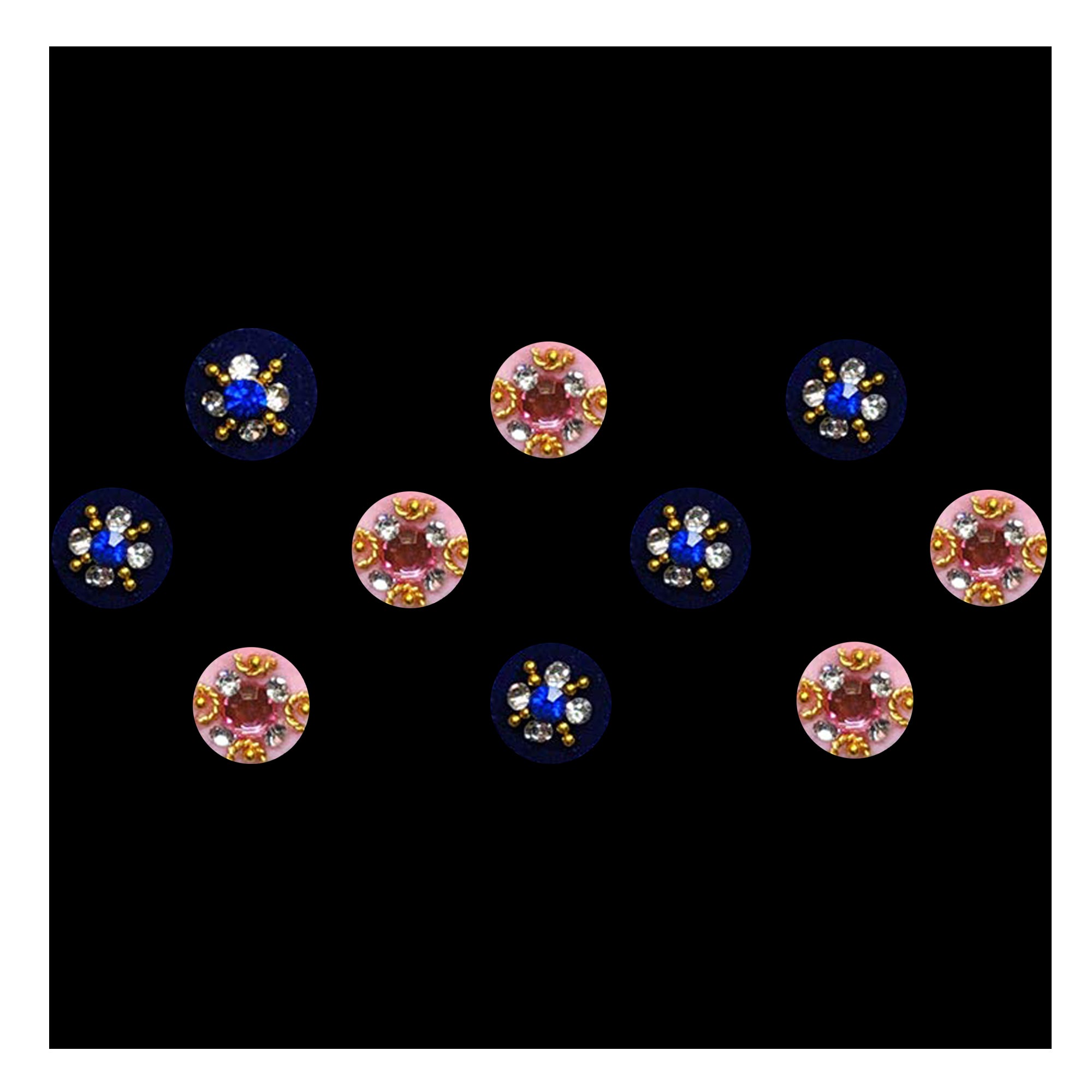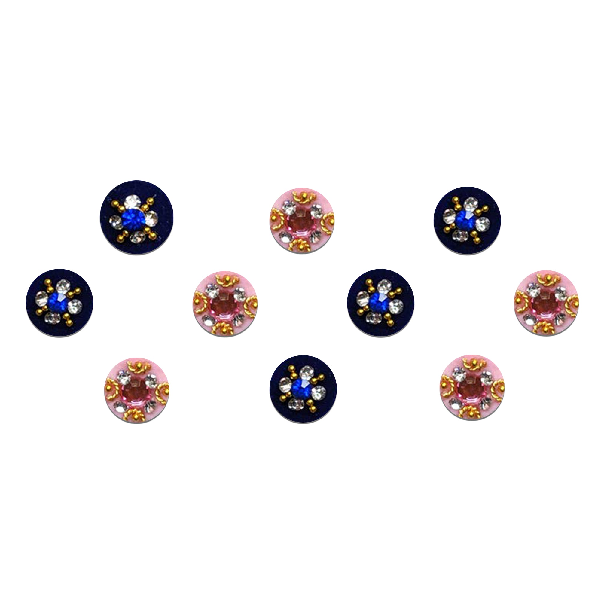 Comet Busters® Multicolor, Pink, Blue Round – Diamond – Handcrafted, Reusable & Skin-Friendly Bindis for Bridal Wear (10mm) – Forehead Bindi Stickers for Women & Girls – BIN371