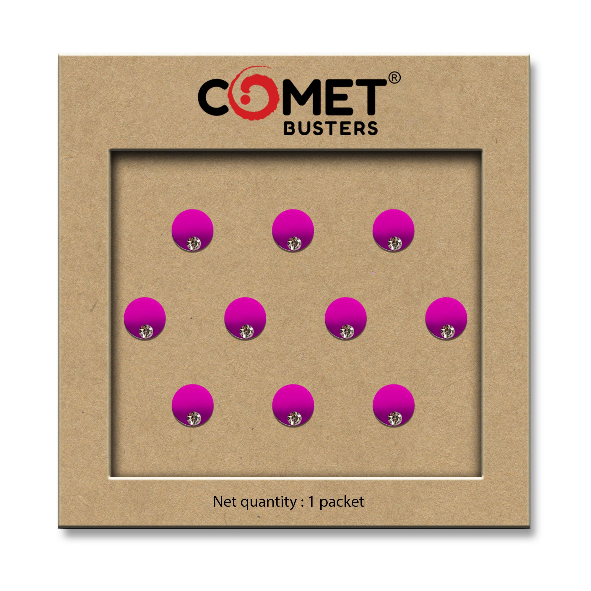 Comet Busters® Pink Round Classic Bindis – Handcrafted, Reusable, Skin-Safe Indian Forehead Stickers for Women