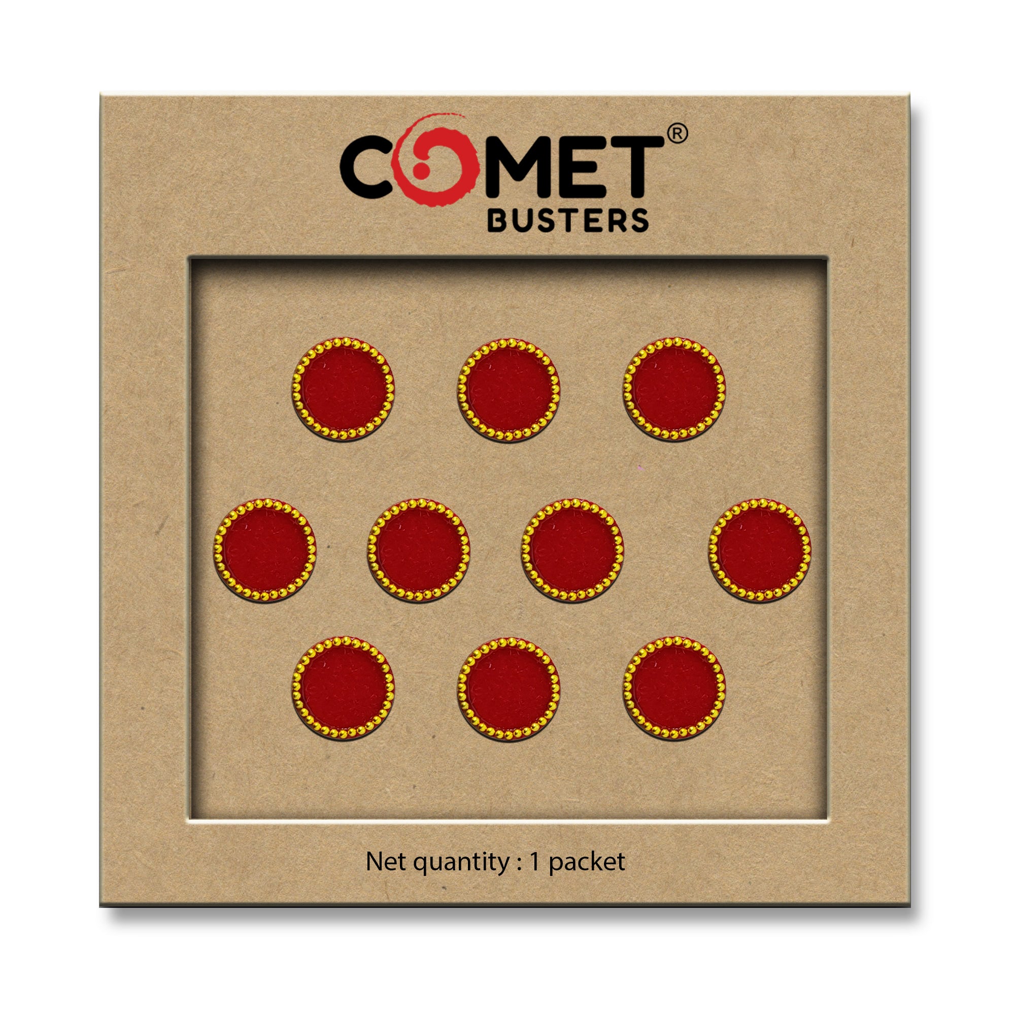 Comet Busters® Red Round – Velvet, Shiny Beads – Handcrafted, Reusable & Skin-Friendly Bindis for Casual Wear (10mm) – Forehead Bindi Stickers for Women & Girls – BIN052