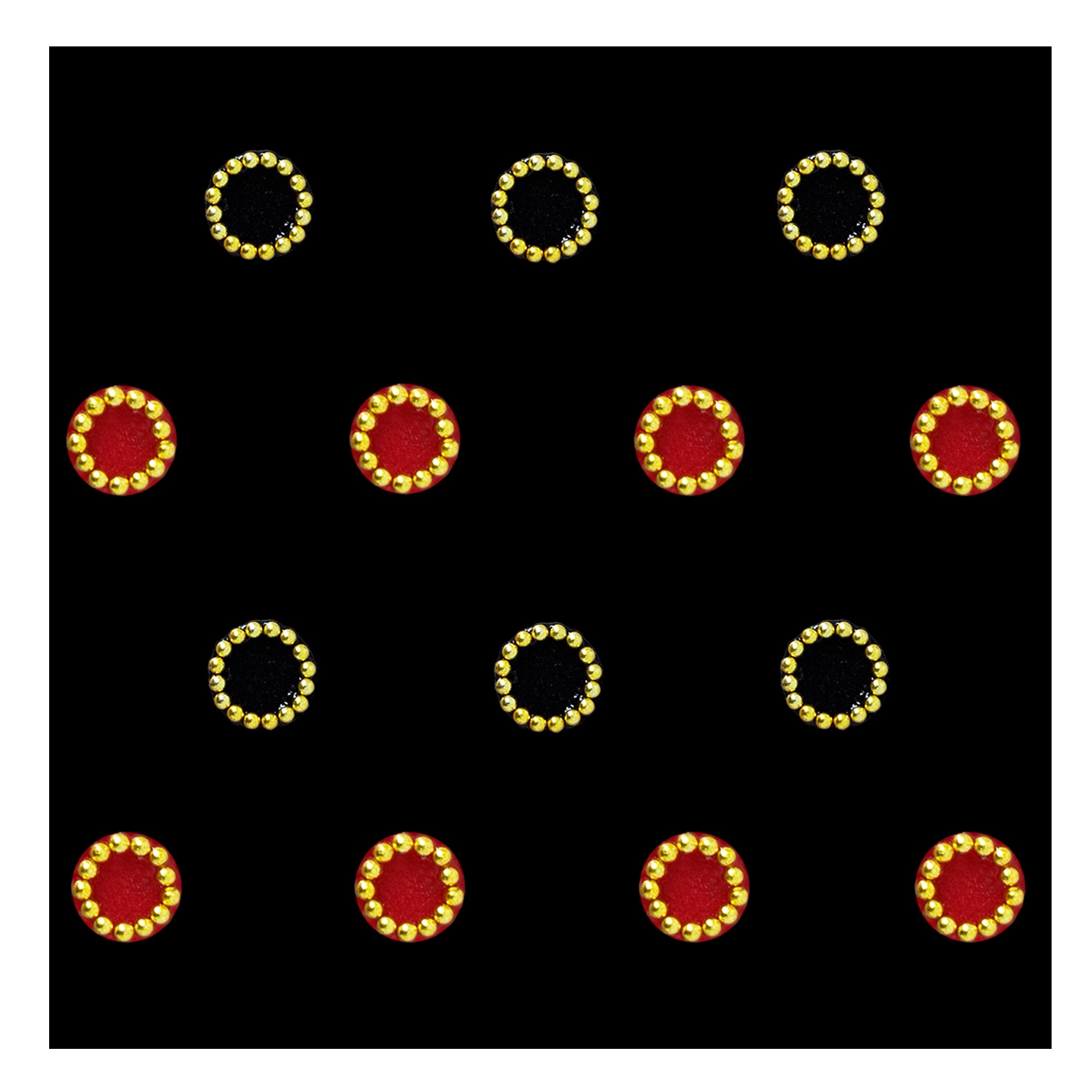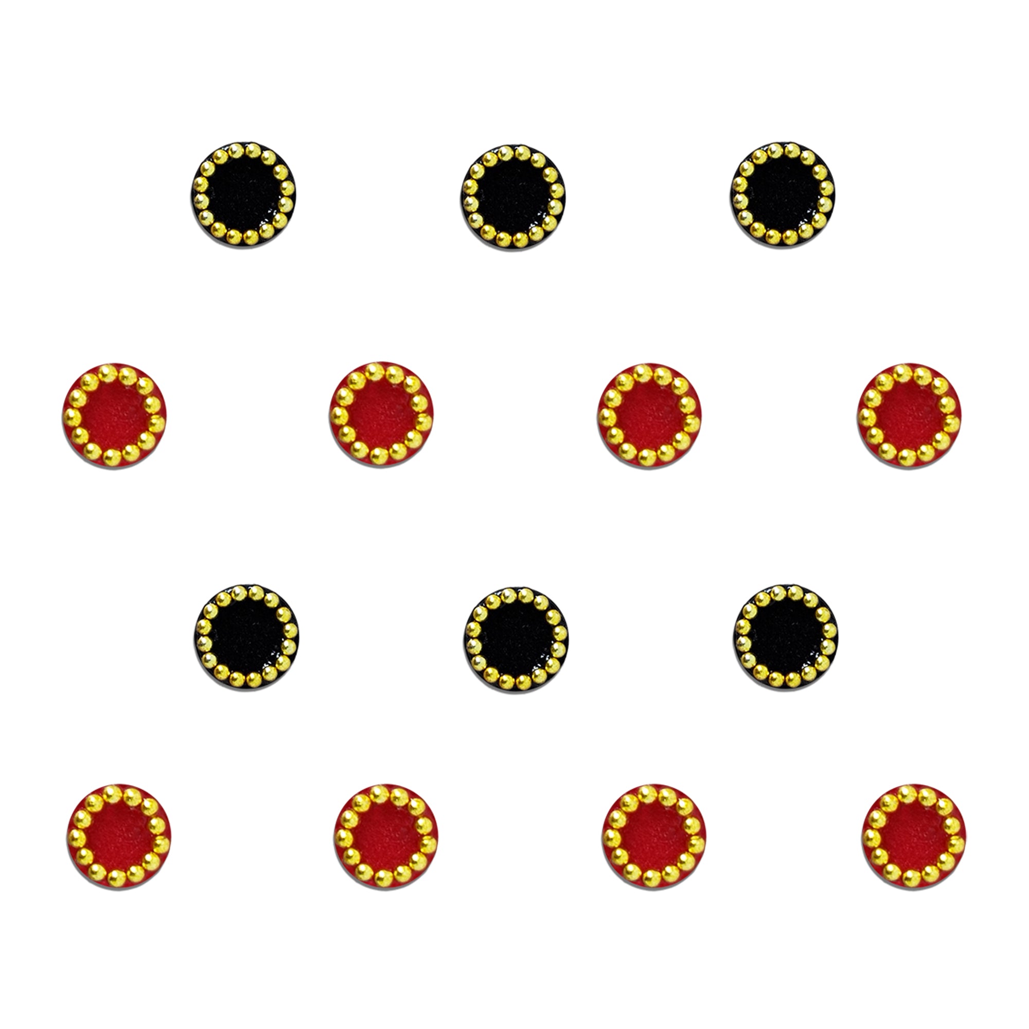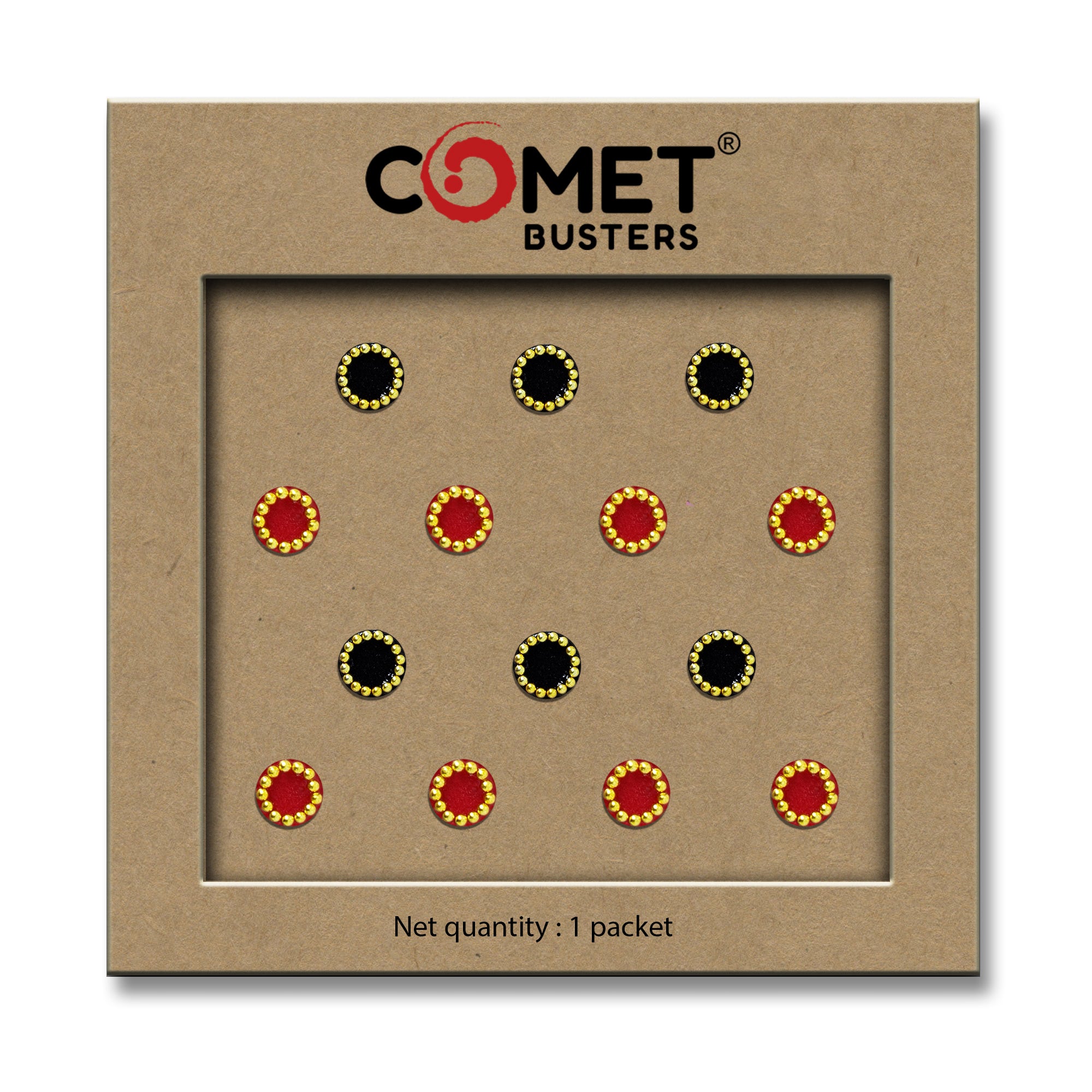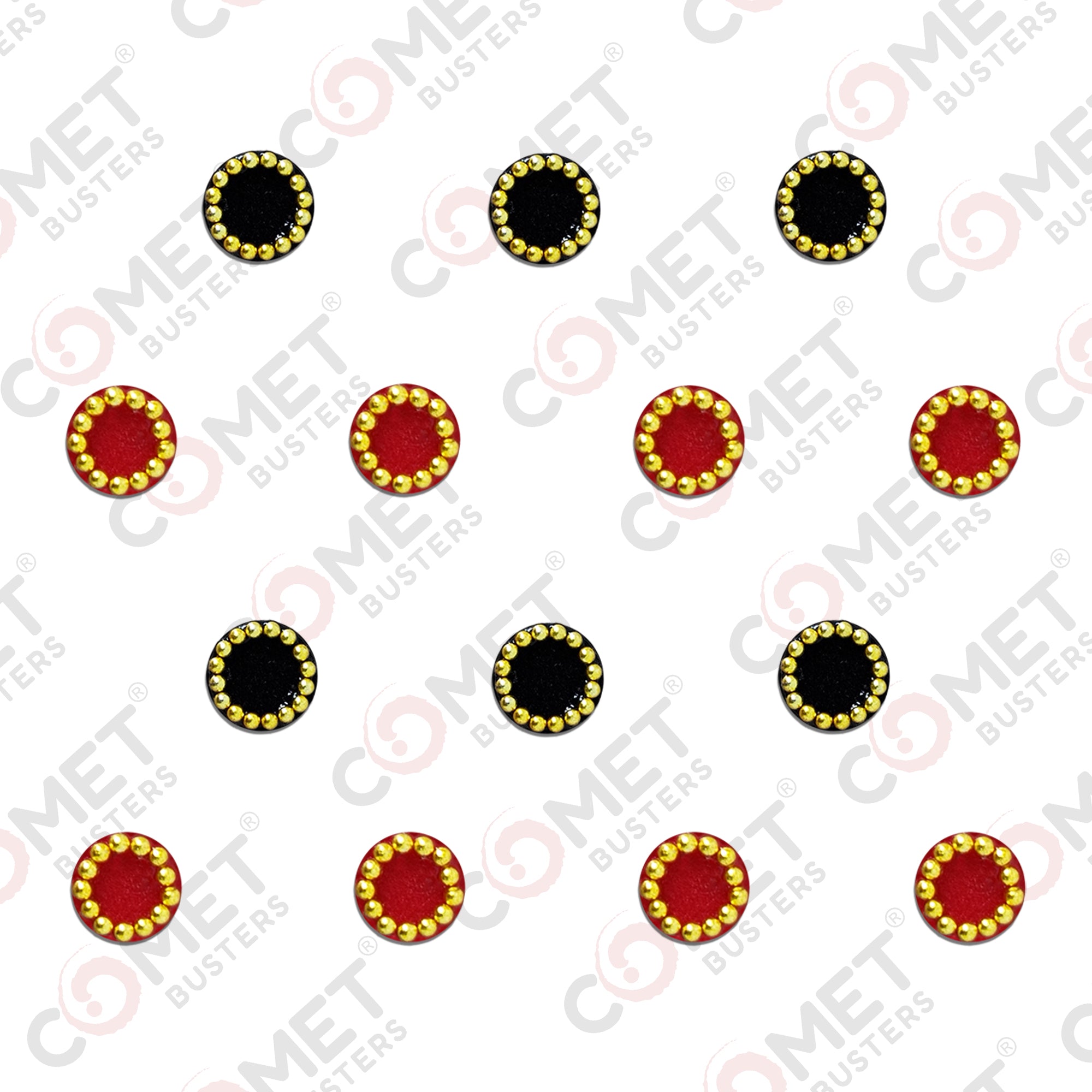 Comet Busters® Multicolor, Red, Black Round – Velvet, Shiny Beads – Handcrafted, Reusable & Skin-Friendly Bindis for Casual Wear (5mm) – Forehead Bindi Stickers for Women & Girls – BIN244