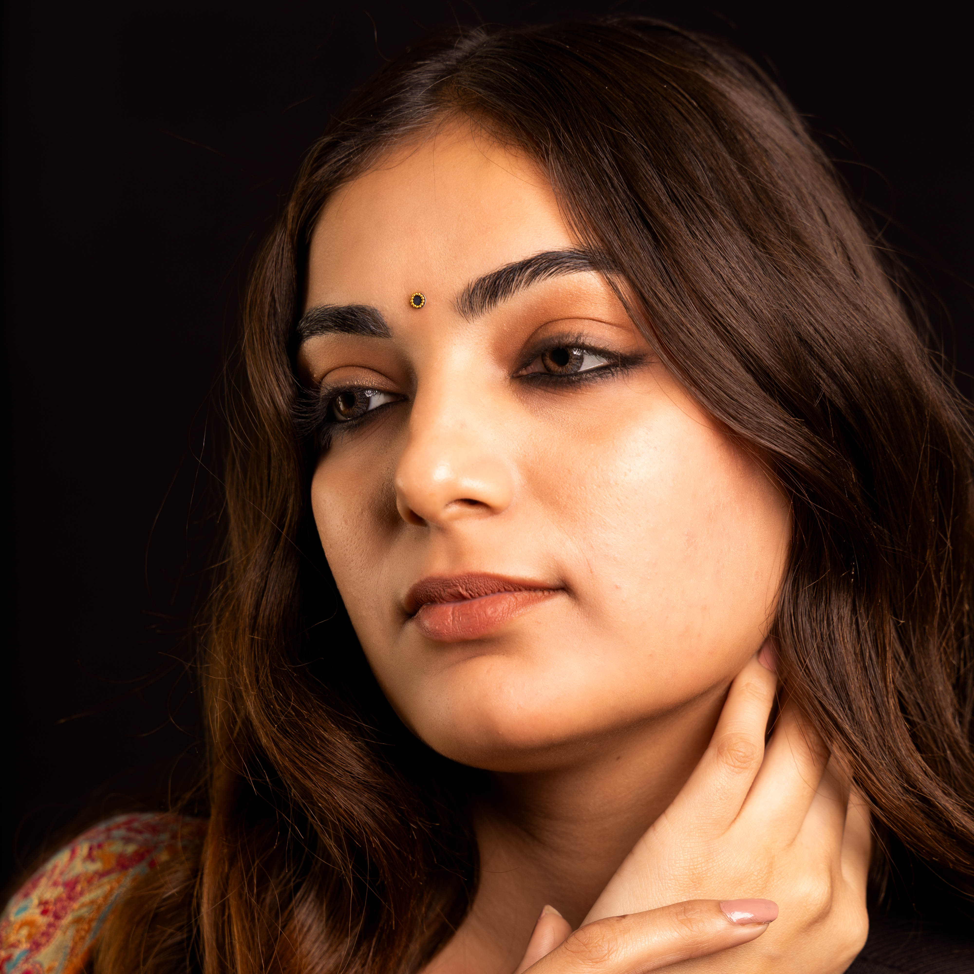 • To apply, gently remove the bindi from its backing and place it between the eyebrows.