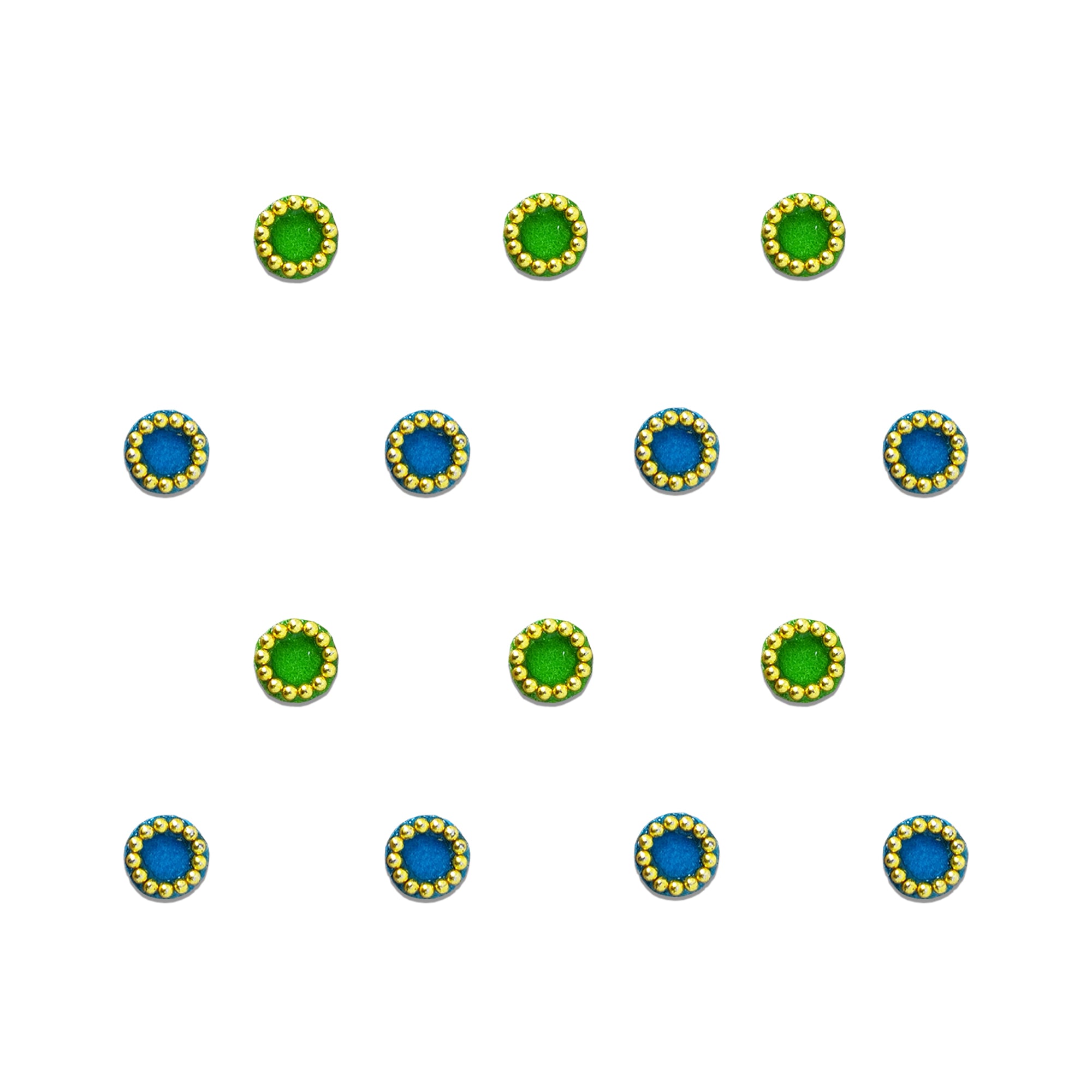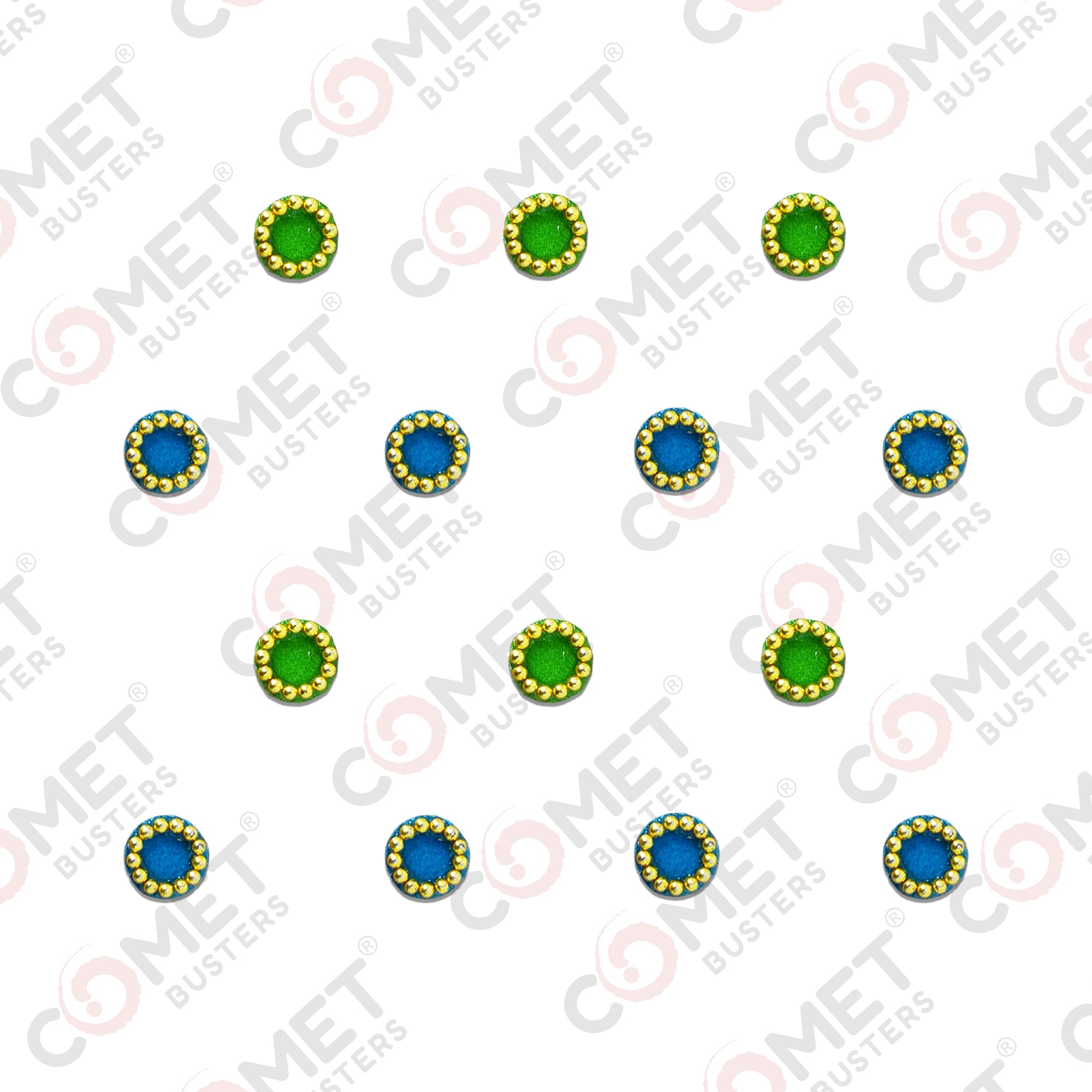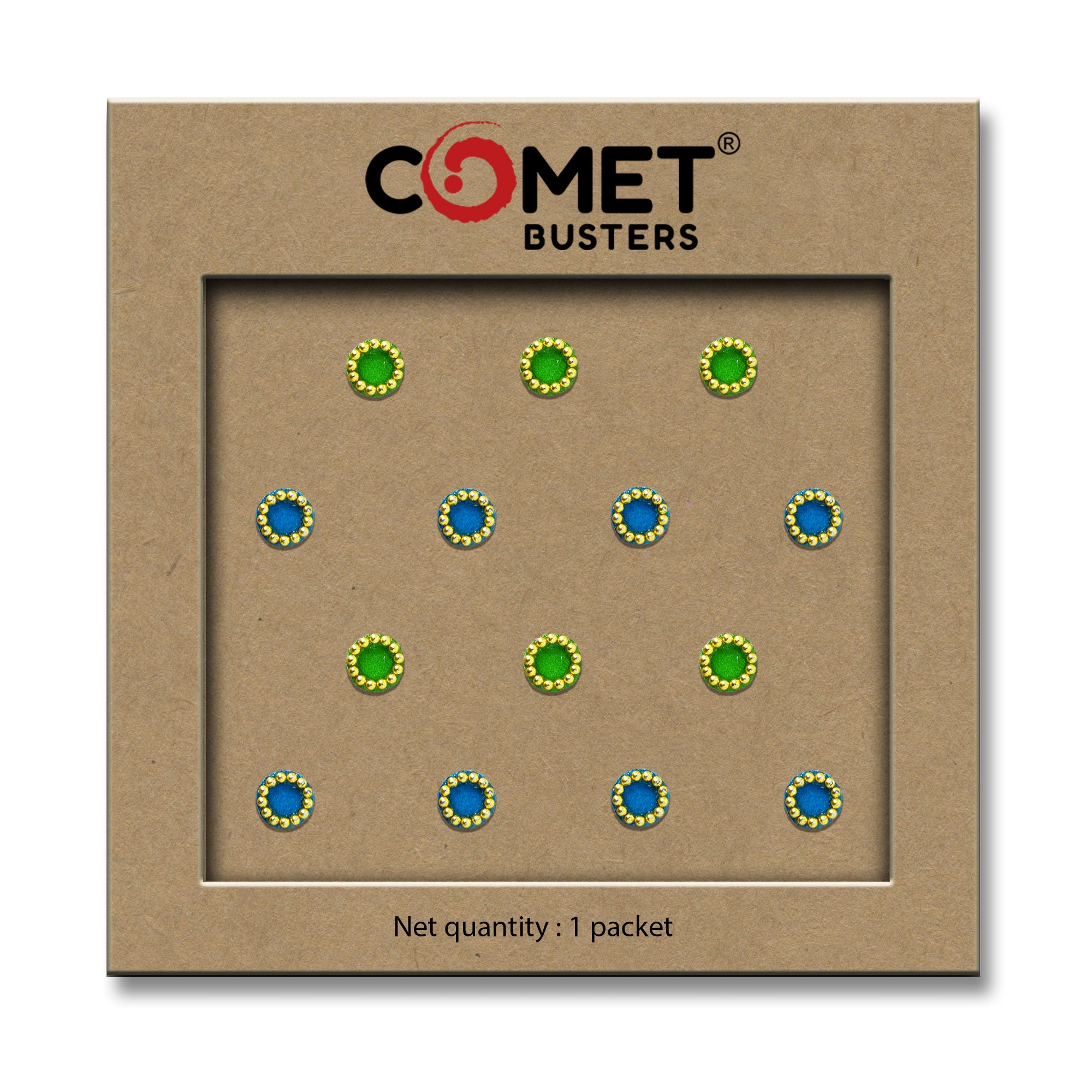 Comet Busters® Multicolor, Blue, Green Round – Velvet, Shiny Beads – Handcrafted, Reusable & Skin-Friendly Bindis for Casual Wear (5mm) – Forehead Bindi Stickers for Women & Girls – BIN229