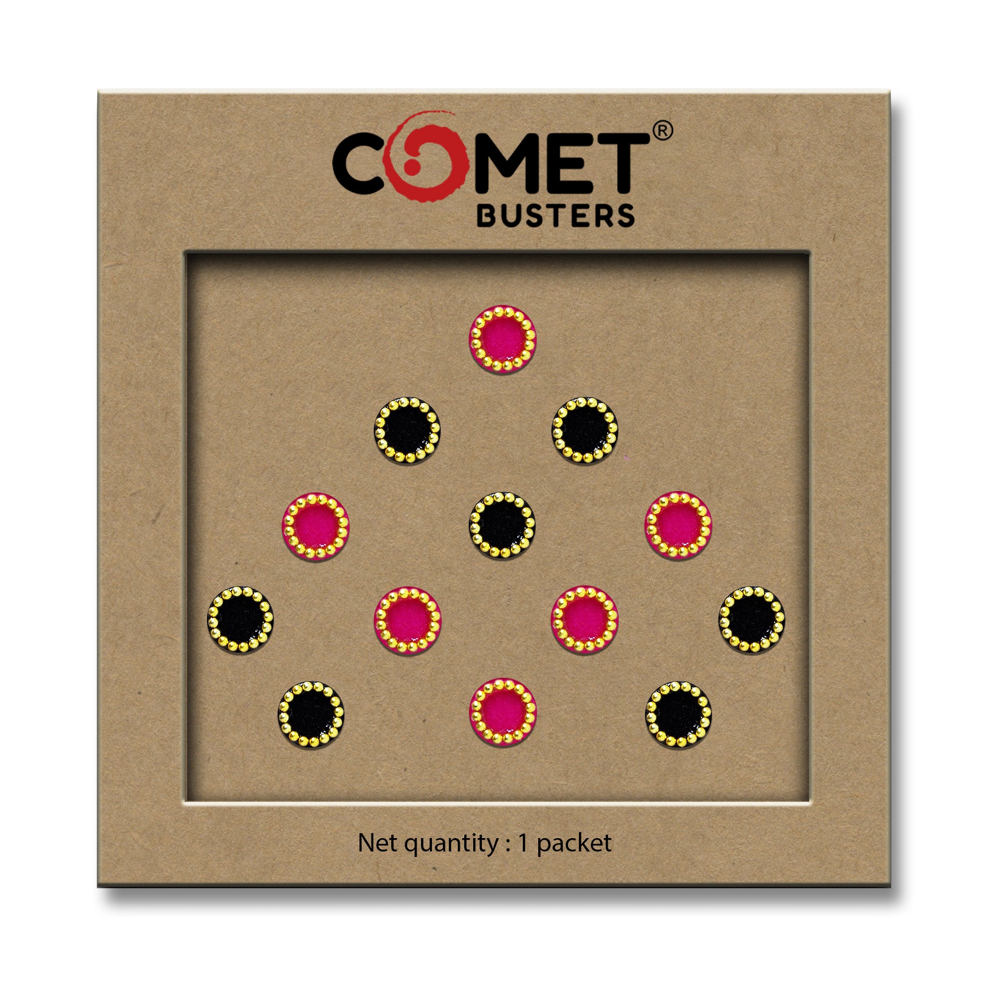 Comet Busters® Multicolor, Pink, Black Round – Velvet, Shiny Beads – Handcrafted, Reusable & Skin-Friendly Bindis for Casual Wear (5mm) – Forehead Bindi Stickers for Women & Girls – BIN235