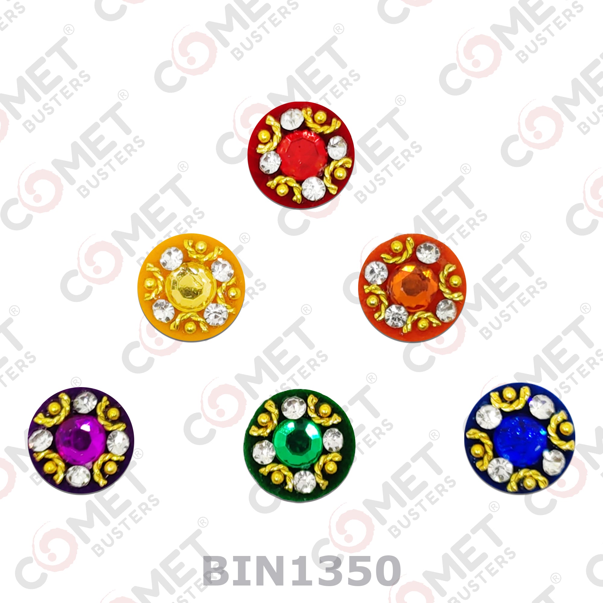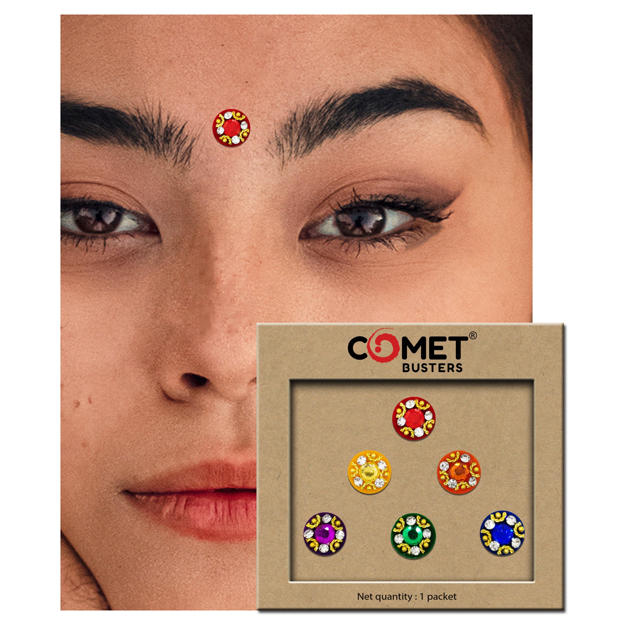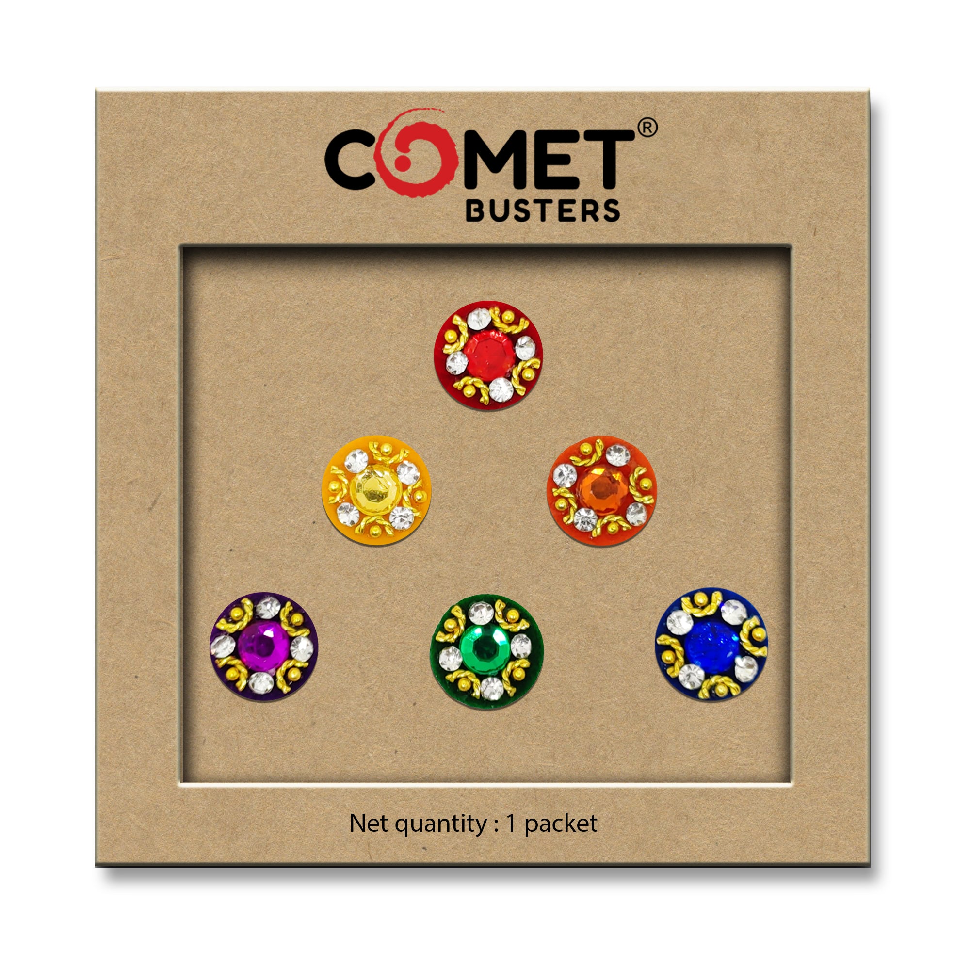Comet Busters® Multicolor Round Classic Bindis – Handcrafted, Reusable, Skin-Safe Indian Forehead Stickers for Women