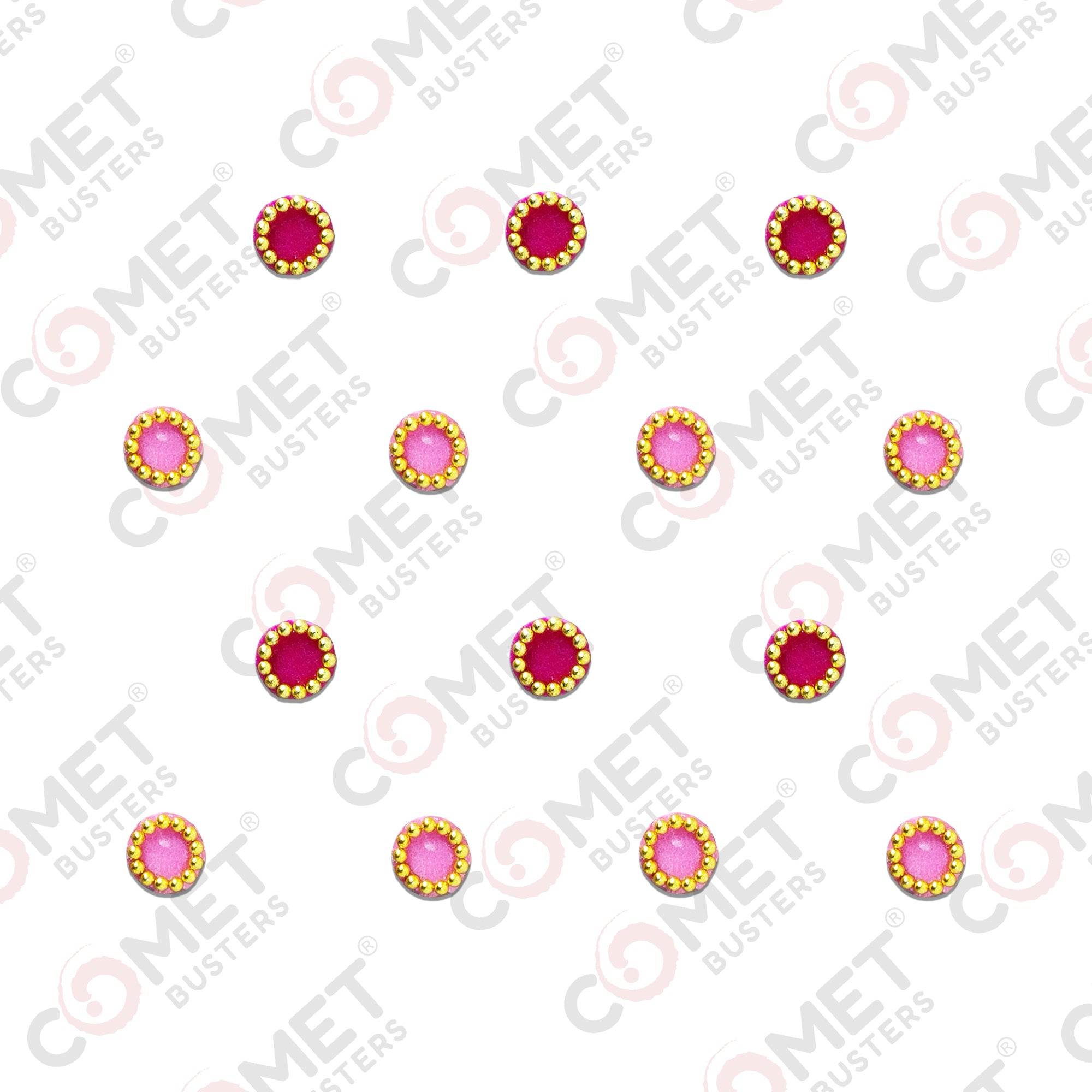 Comet Busters® Pink Round – Velvet, Shiny Beads – Handcrafted, Reusable & Skin-Friendly Bindis for Casual Wear (5mm) – Forehead Bindi Stickers for Women & Girls – BIN230