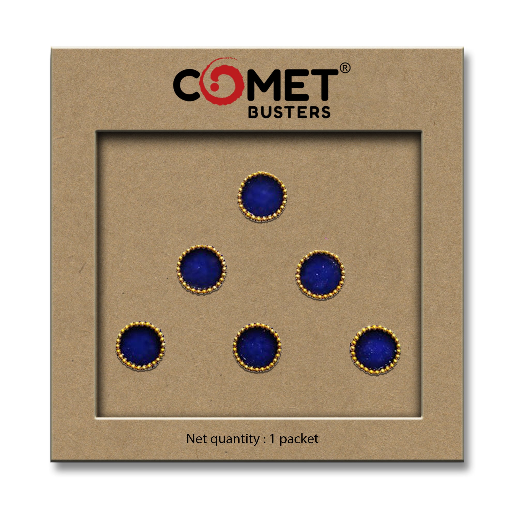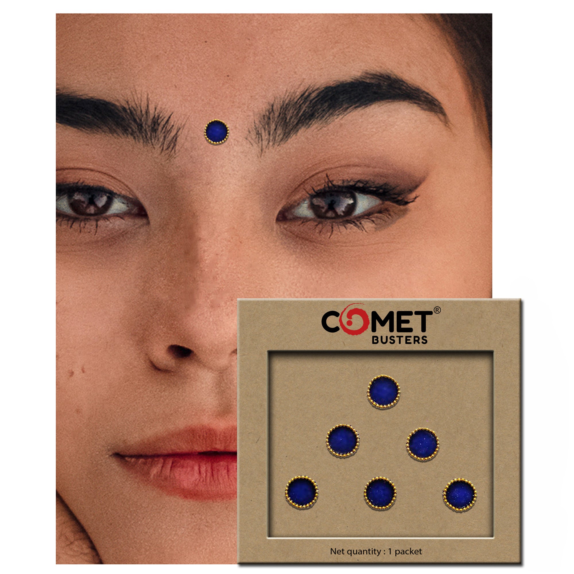 Comet Busters® Blue Round – Velvet, Shiny Beads – Handcrafted, Reusable & Skin-Friendly Bindis for Casual Wear (8mm) – Forehead Bindi Stickers for Women & Girls – BIN376