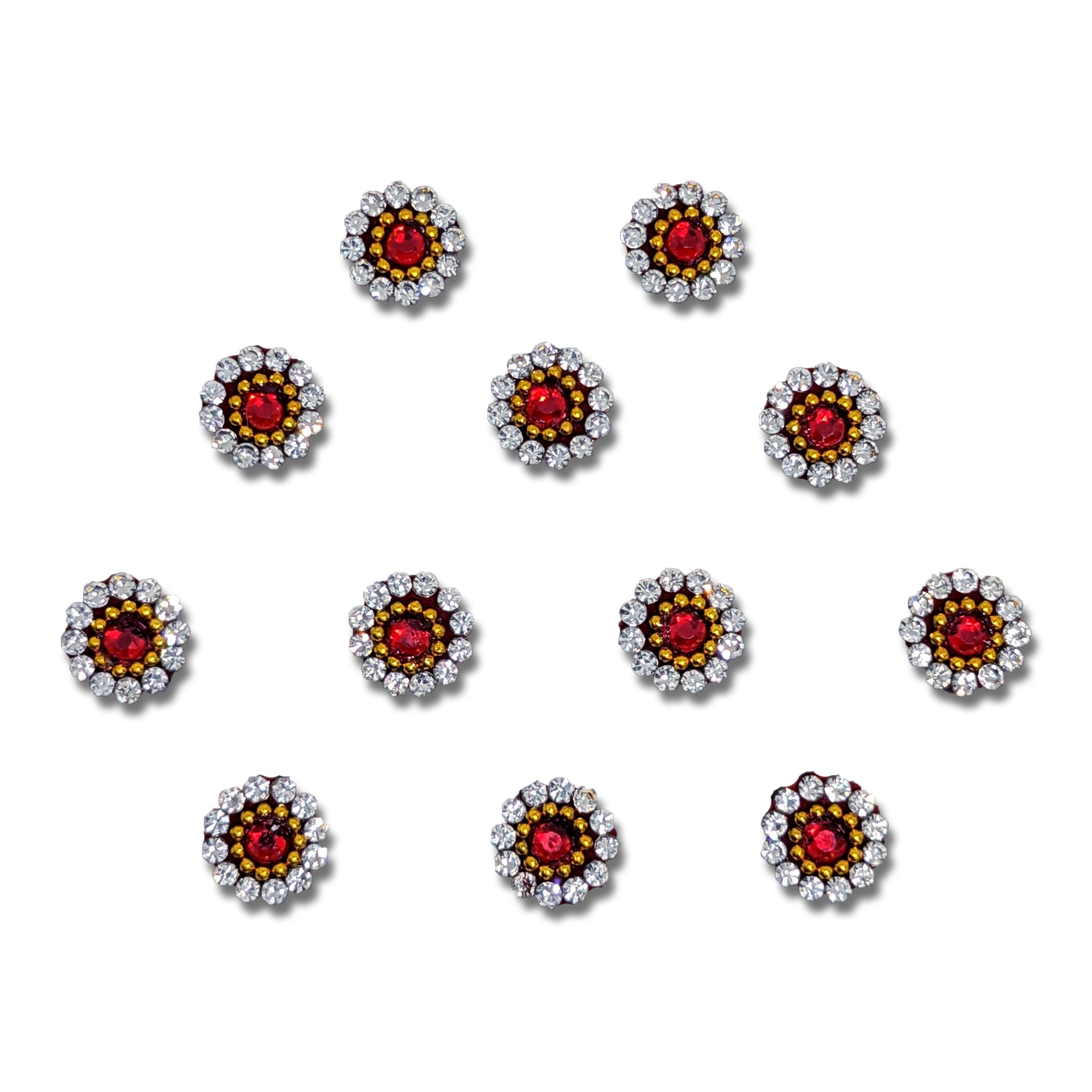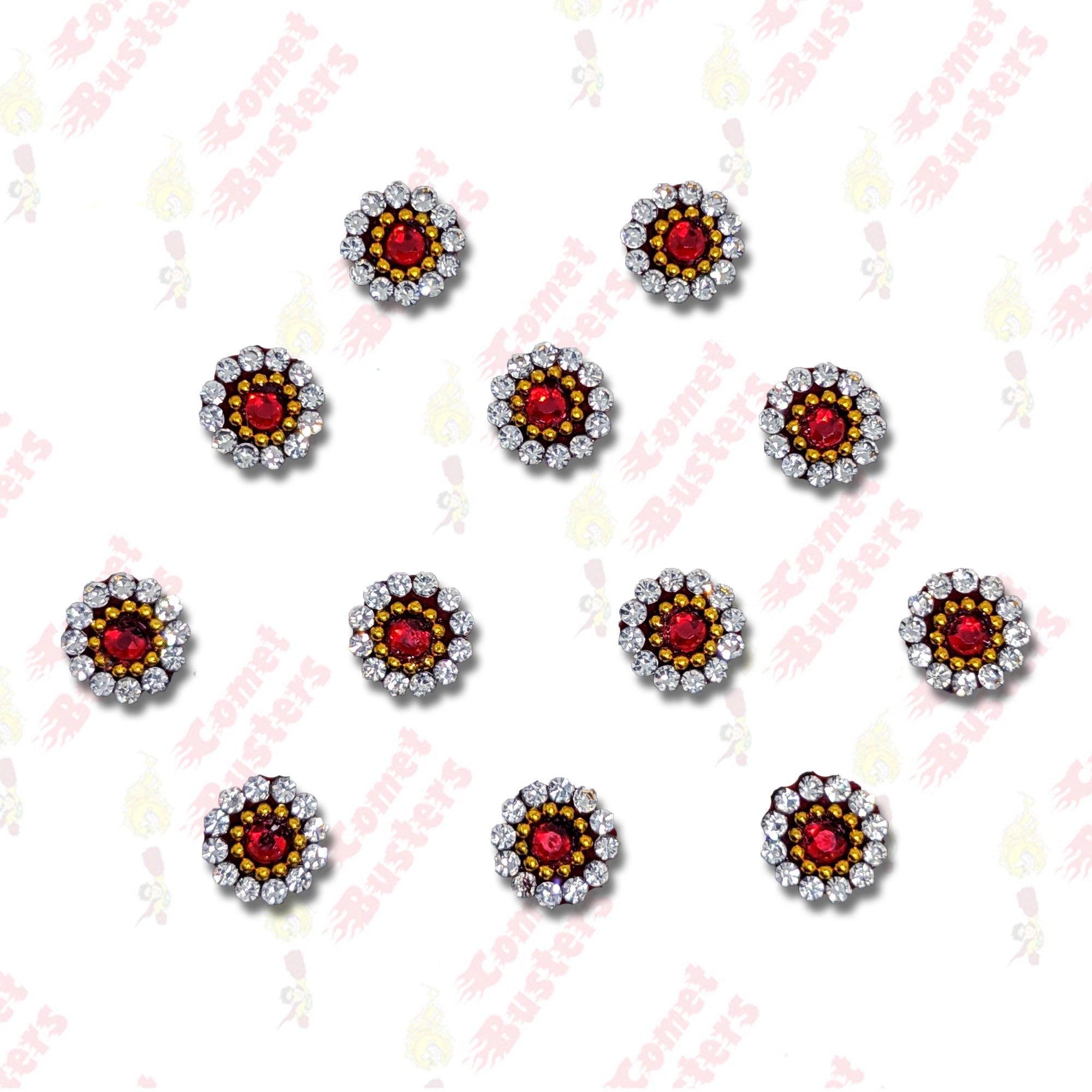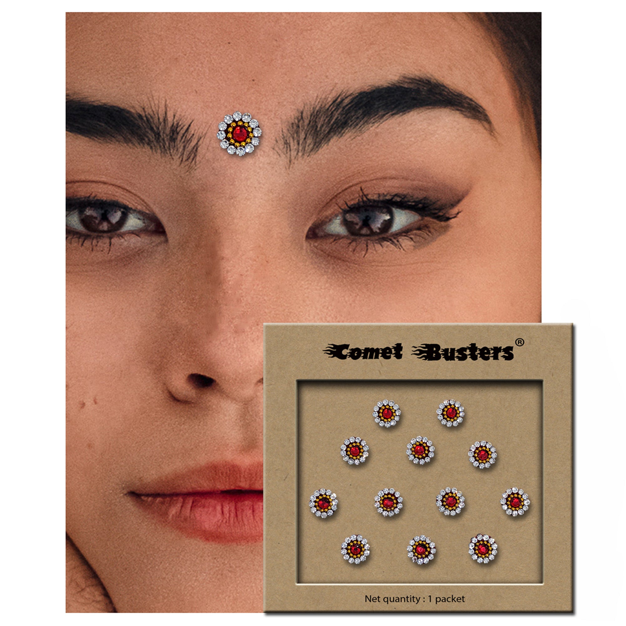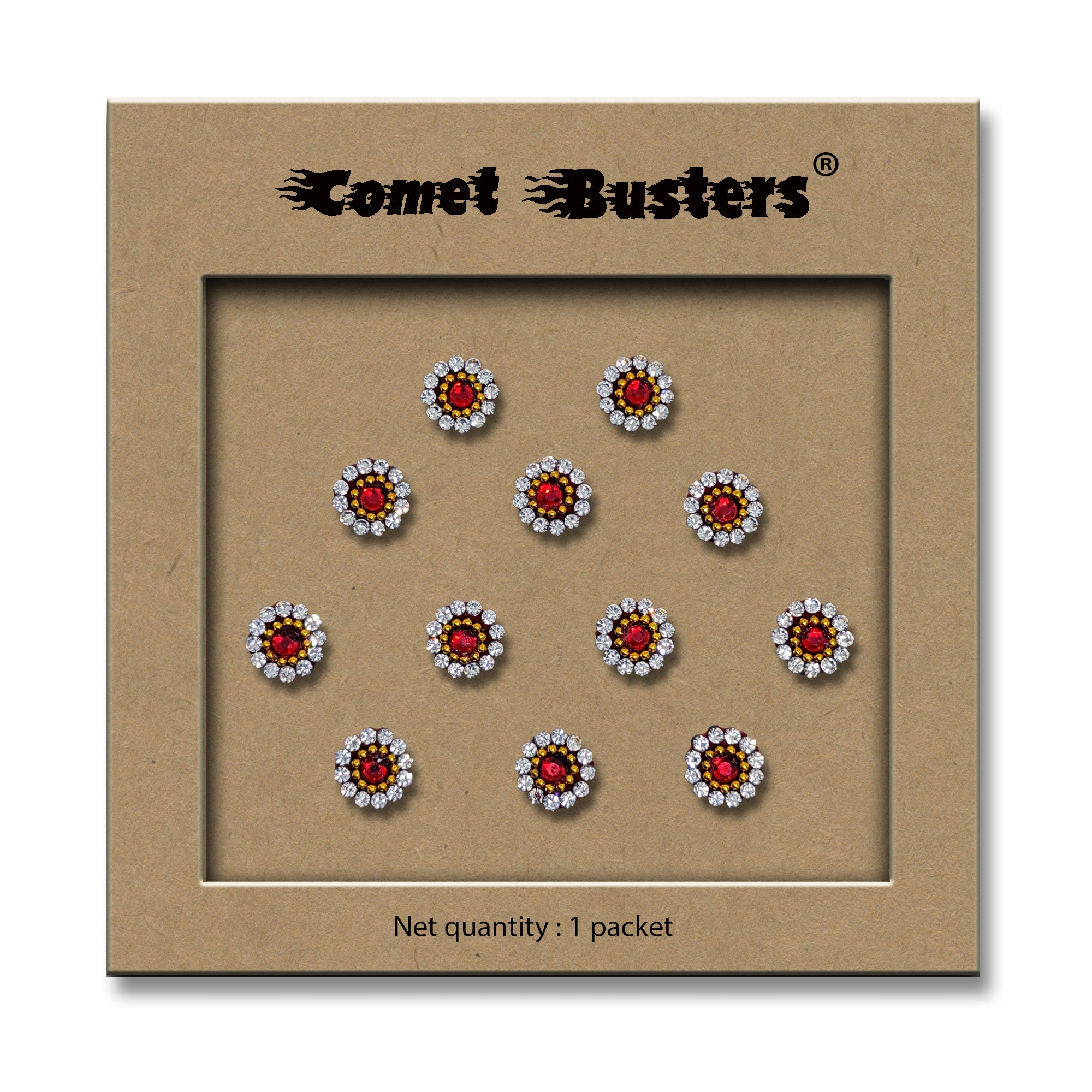 Comet Busters® Silver, Red, Multicolor Round – Diamond – Handcrafted, Reusable & Skin-Friendly Bindis for Party Wear (7mm) – Forehead Bindi Stickers for Women & Girls – BIN2020