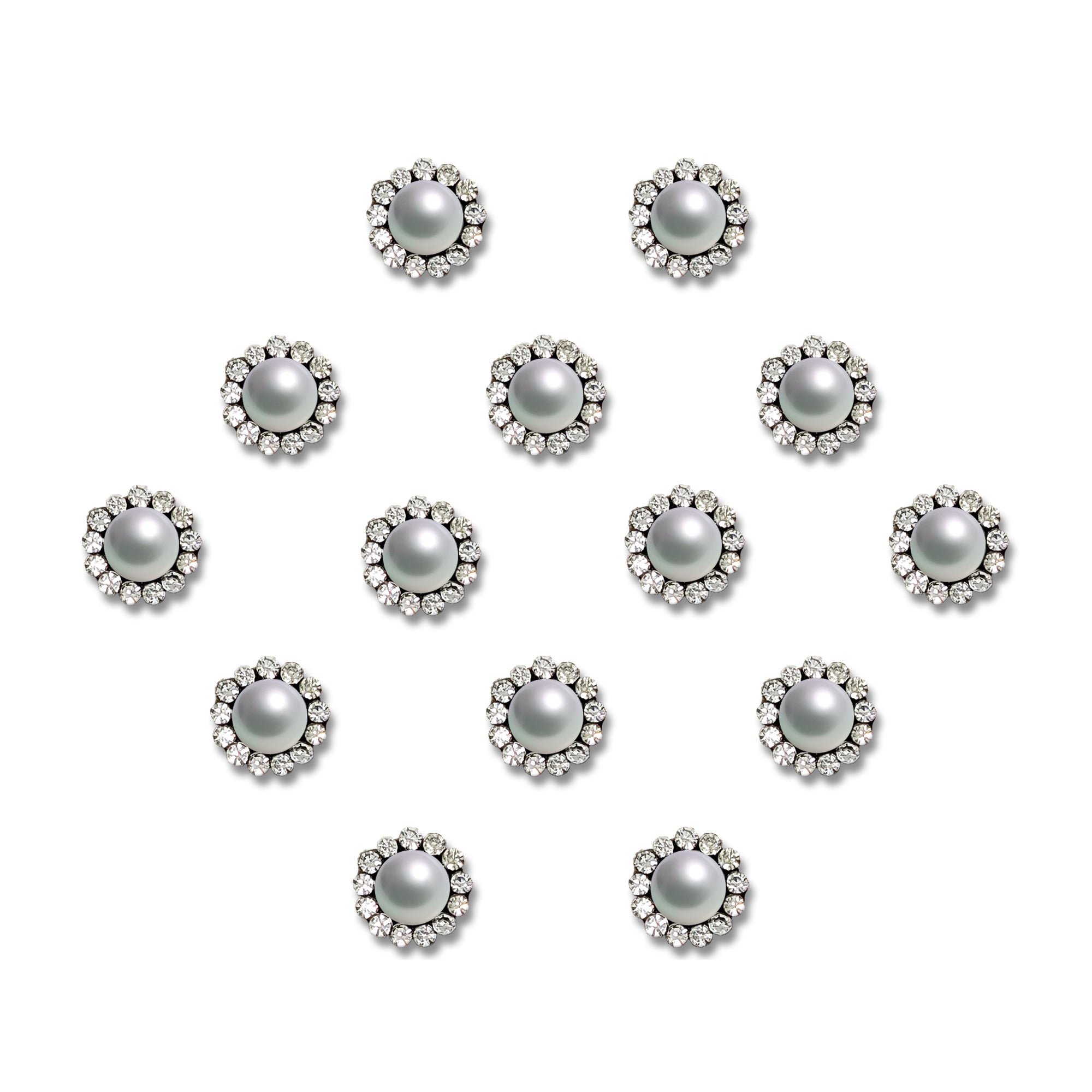 Comet Busters® Silver Round – Pearl, Diamond – Handcrafted, Reusable & Skin-Friendly Bindis for Party Wear (6mm) – Forehead Bindi Stickers for Women & Girls – BIN2016