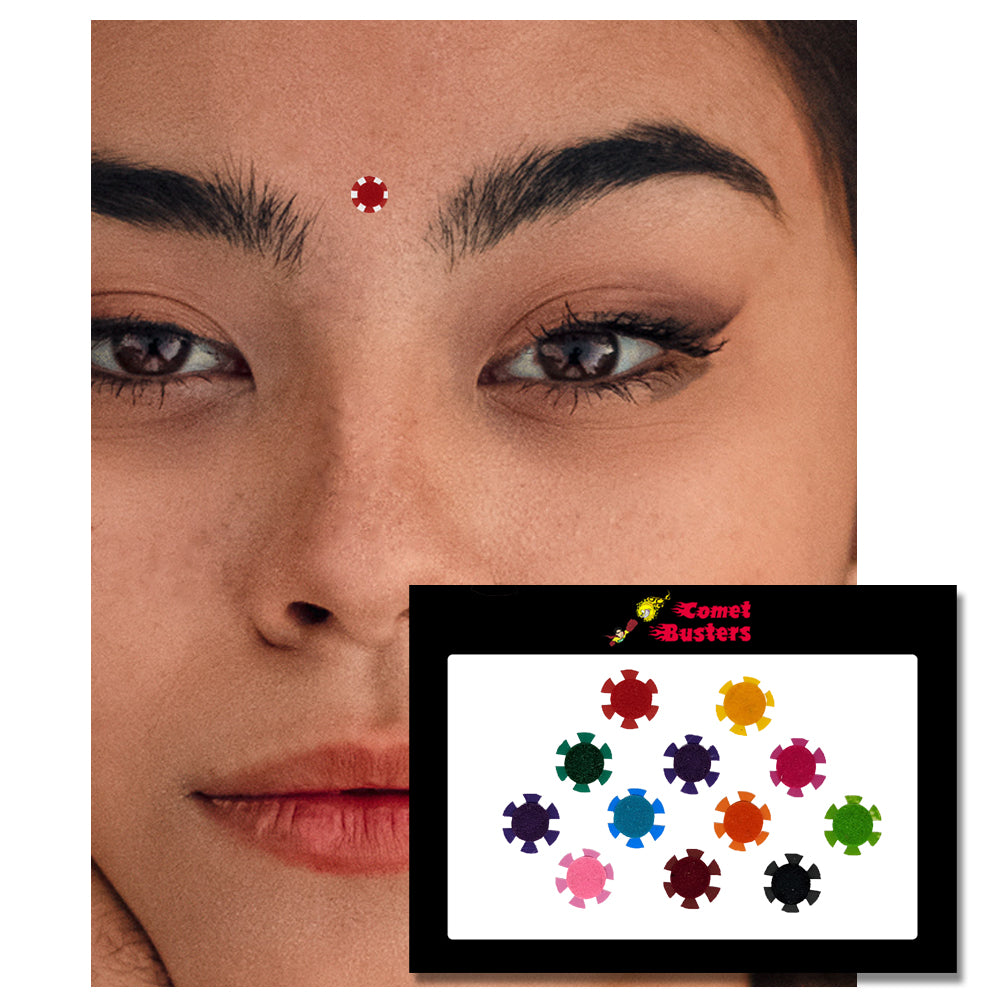Comet Busters® Multicolor Round – Velvet – Handcrafted, Reusable & Skin-Friendly Bindis for Casual Wear (8mm) – Forehead Bindi Stickers for Women & Girls – BIN1747