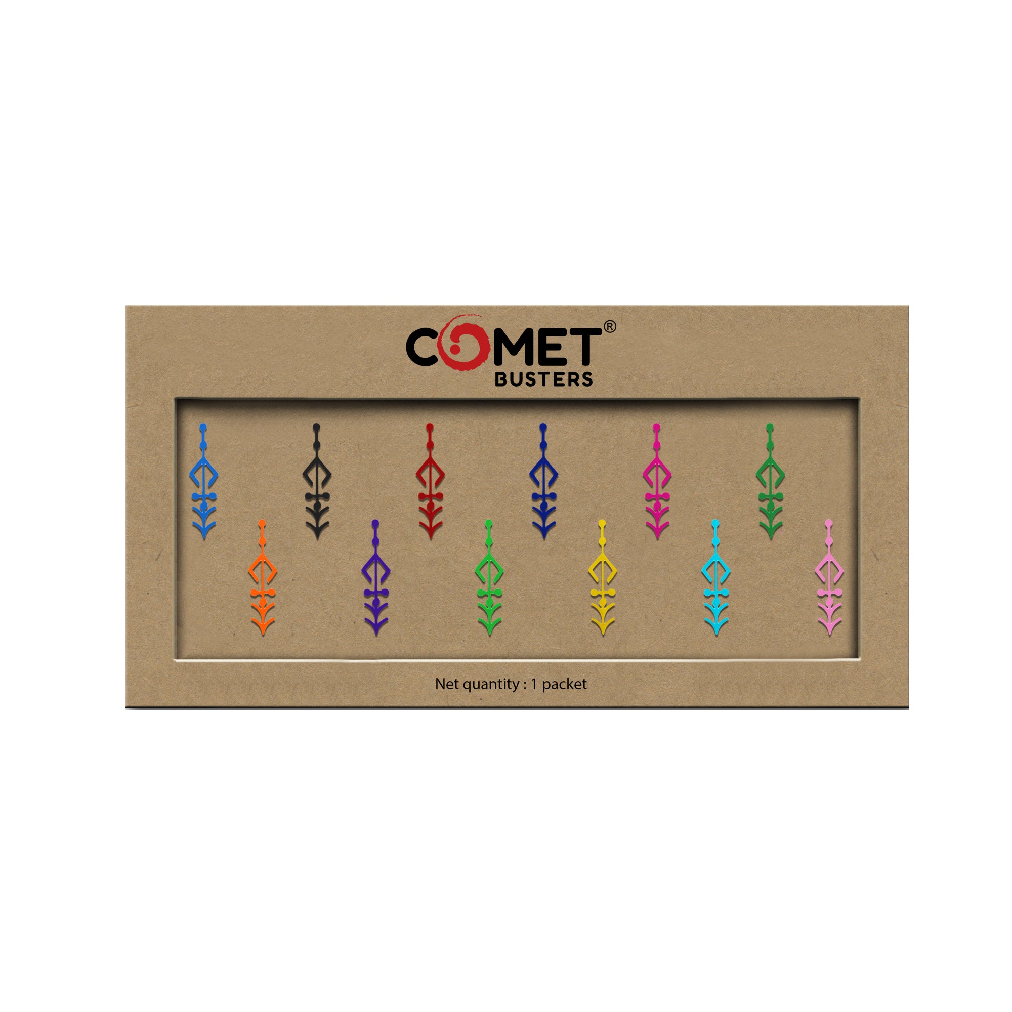 Comet Busters® Multicolor Artistic Abstract Bindis, Round – Diamond, Shiny Beads, PVC – Handcrafted, Reusable & Skin-Friendly Bindis for Casual Wear (20mm) – Forehead Bindi Stickers for Women & Girls – BIN267