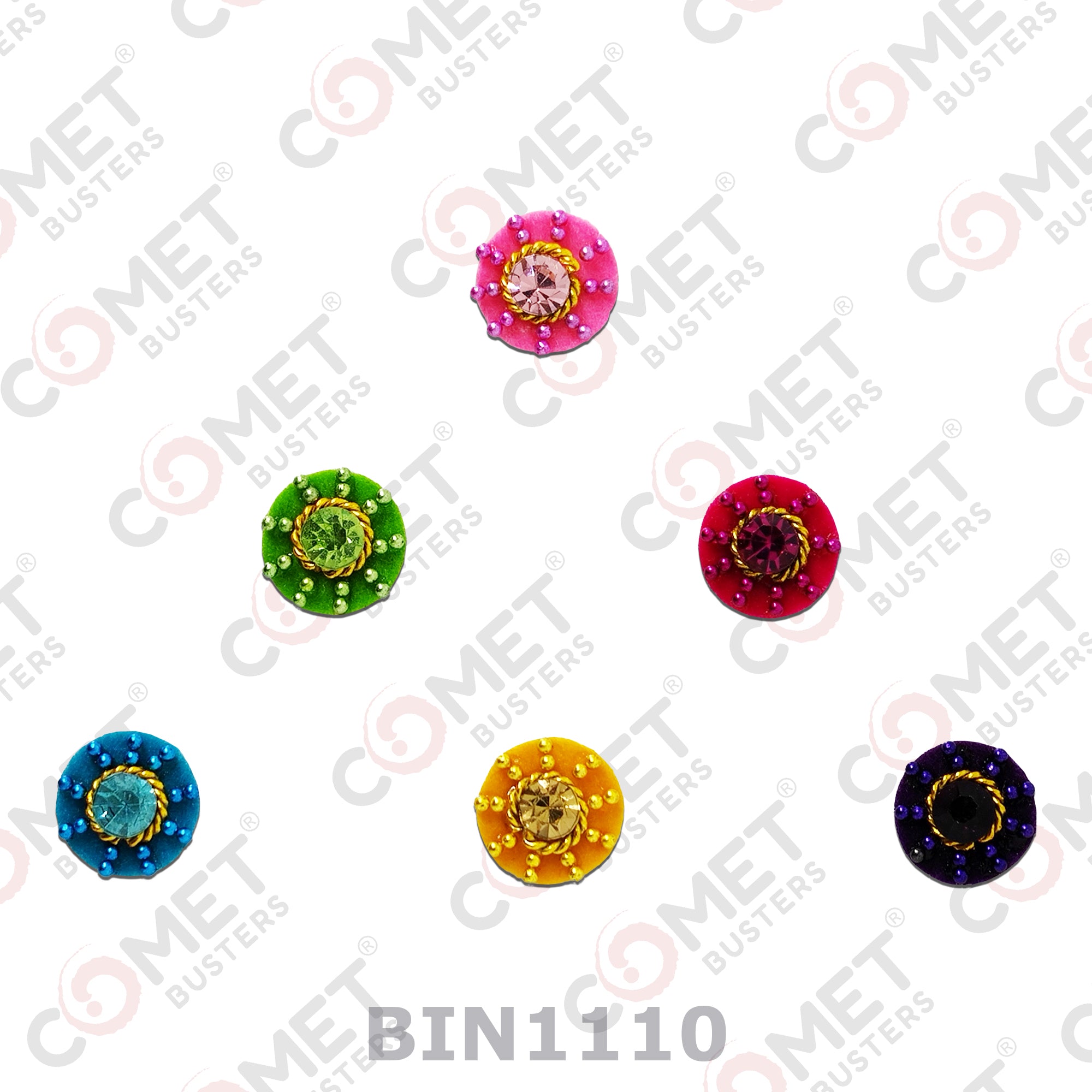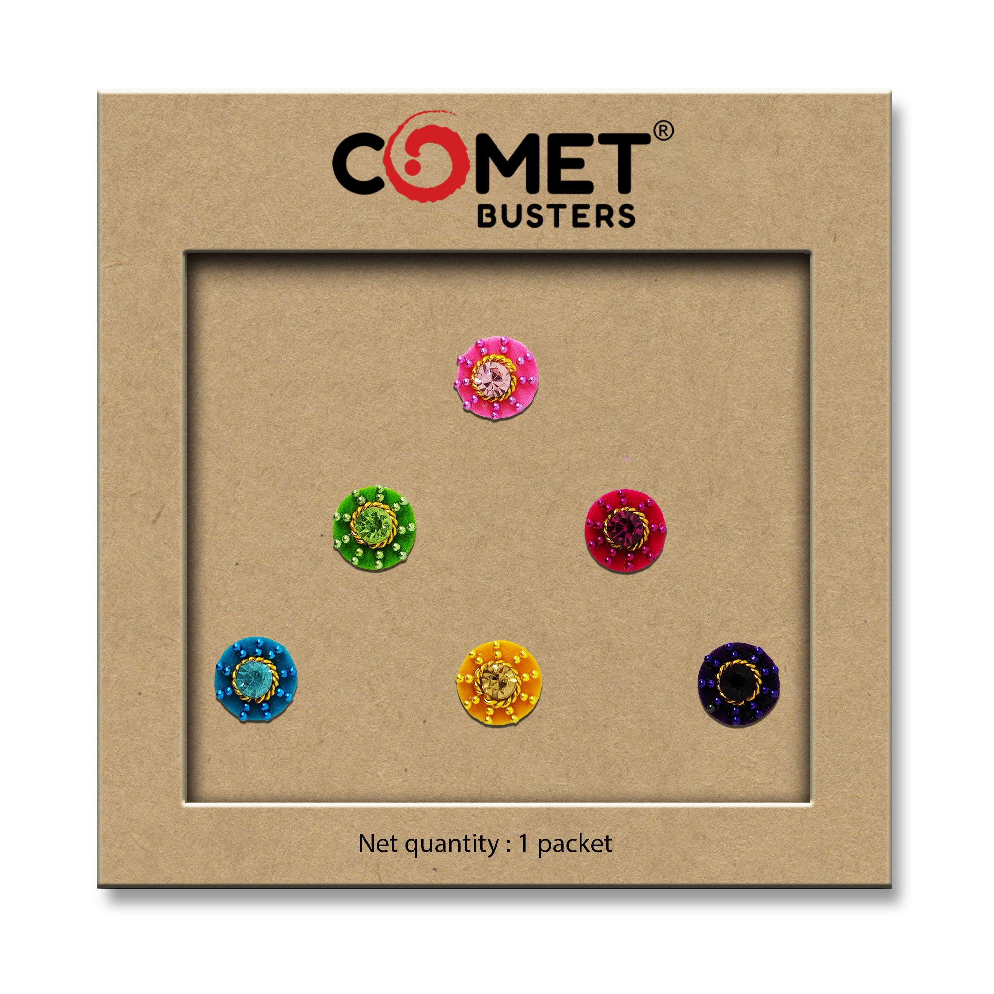 Comet Busters® Multicolor Round – Diamond, Velvet, Shiny Beads – Handcrafted, Reusable & Skin-Friendly Bindis for Party Wear (7mm) – Forehead Bindi Stickers for Women & Girls – BIN1110