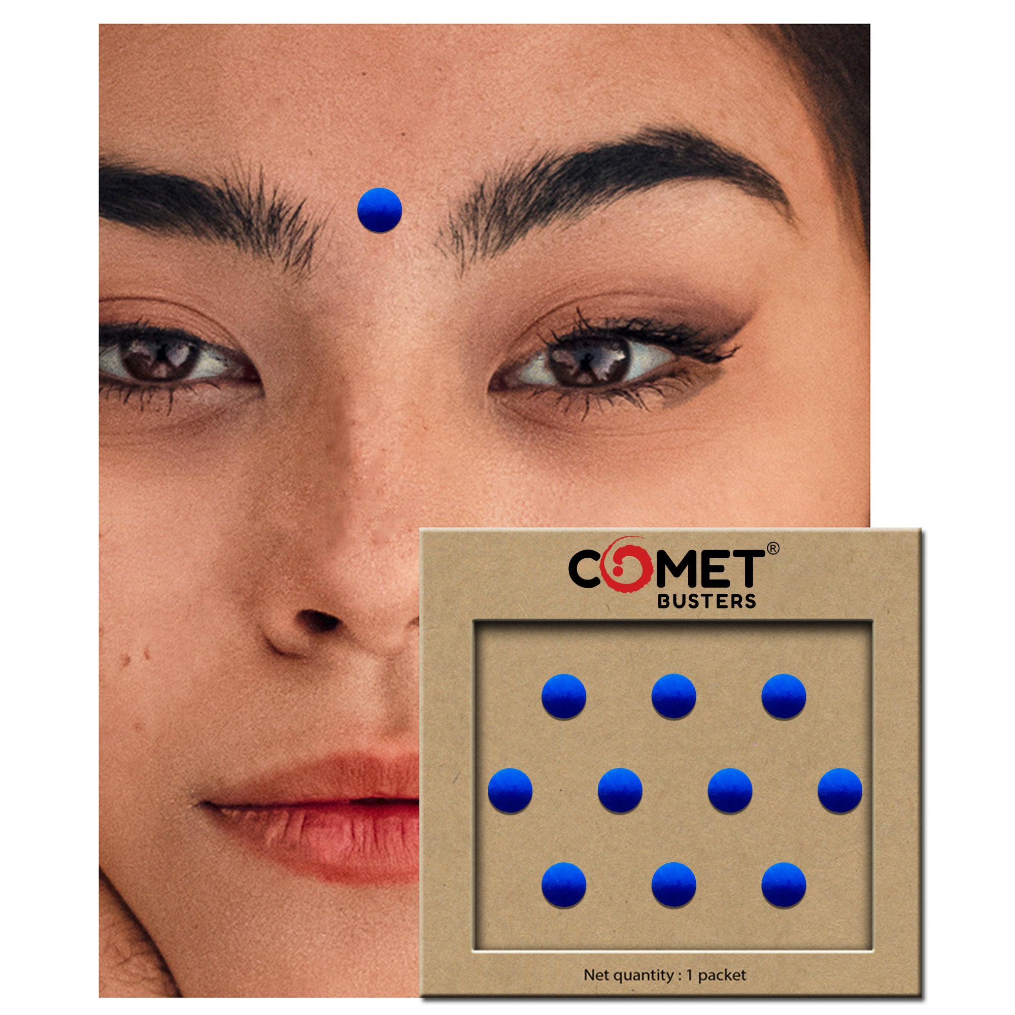 Comet Busters® Blue Round Classic Bindis – Handcrafted, Reusable, Skin-Safe Indian Forehead Stickers for Women