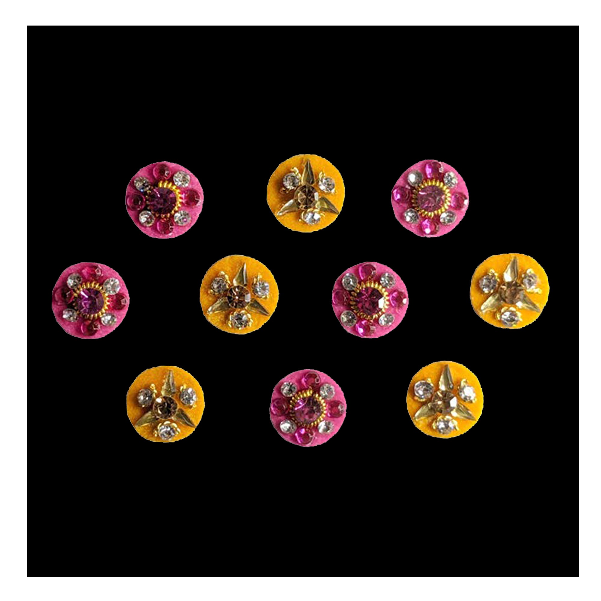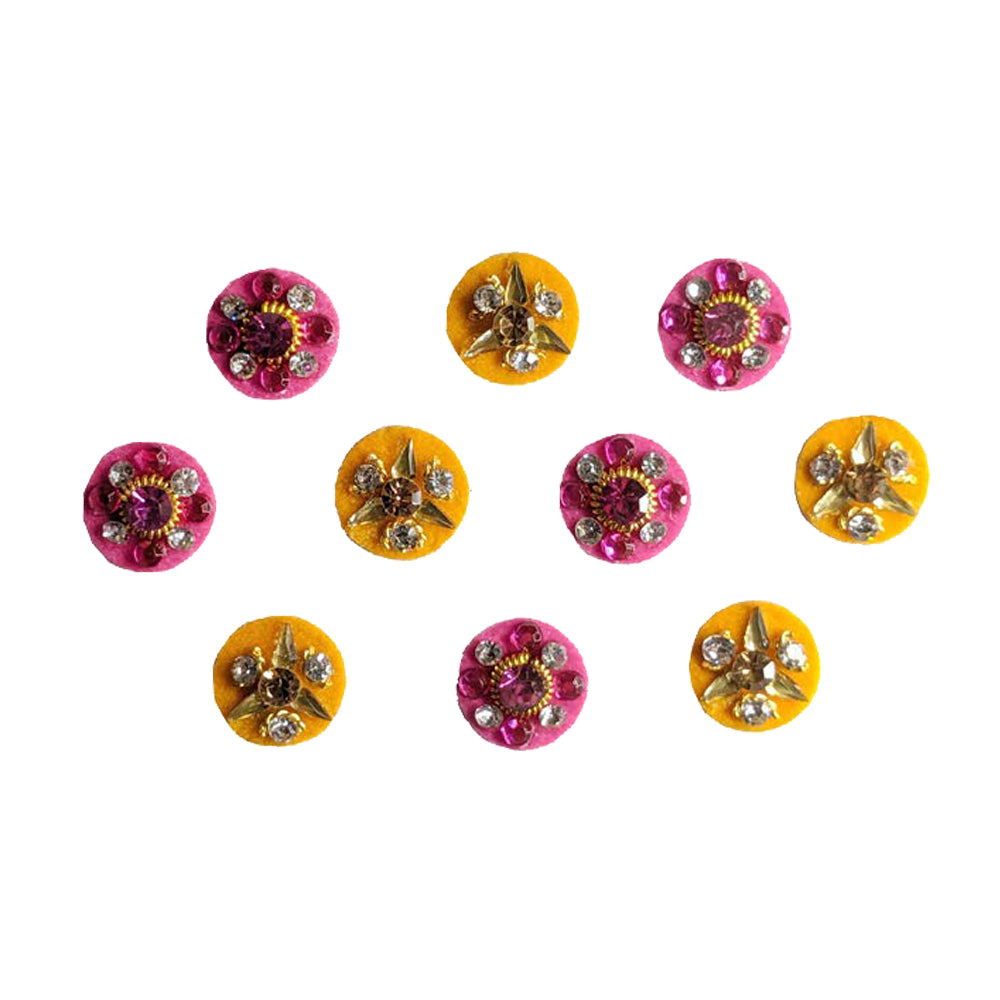 Comet Busters® Multicolor, Pink, Yellow Round – Diamond – Handcrafted, Reusable & Skin-Friendly Bindis for Bridal Wear (10mm) – Forehead Bindi Stickers for Women & Girls – BIN369