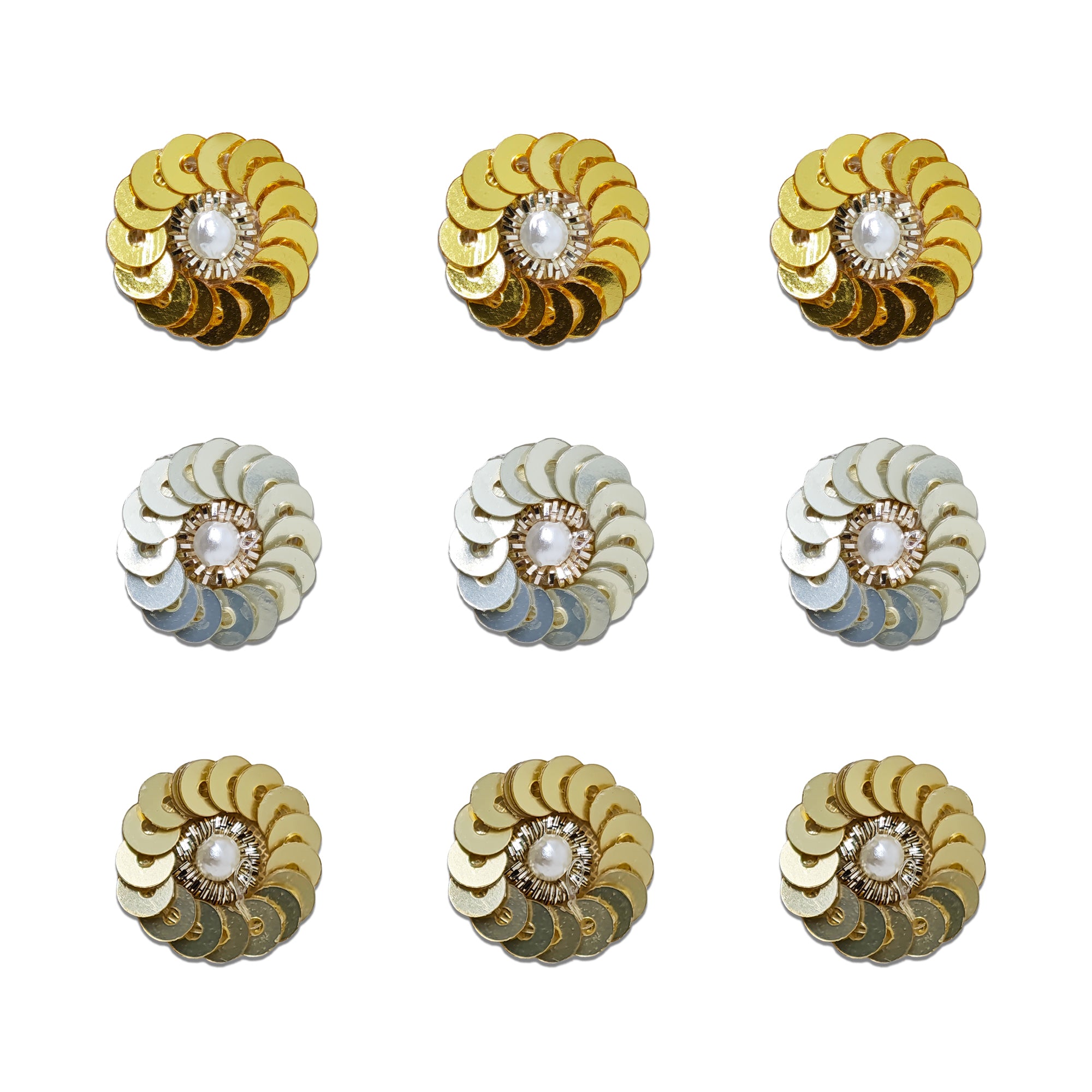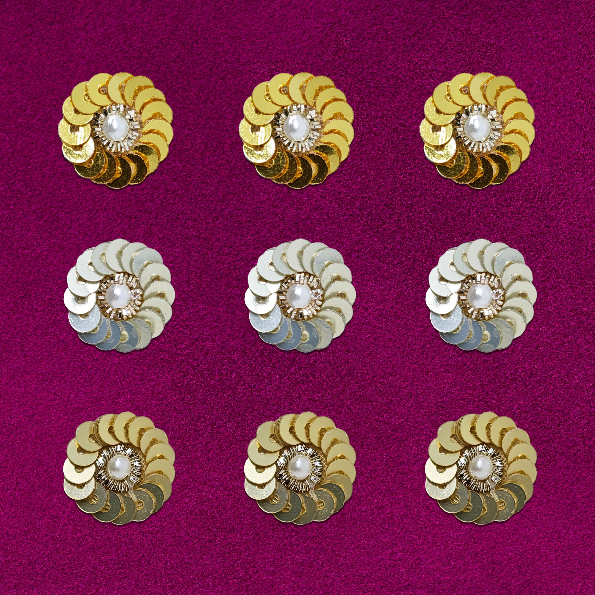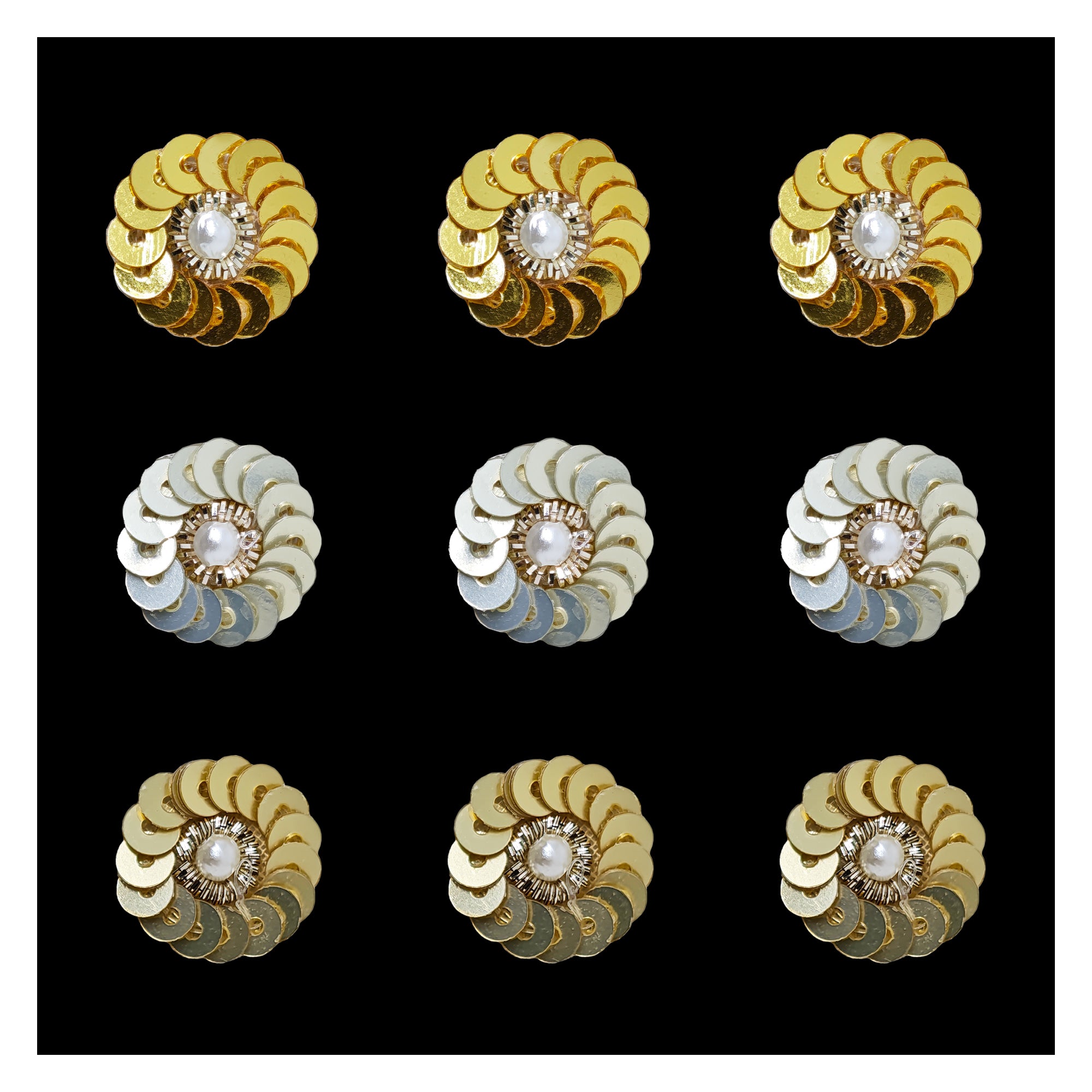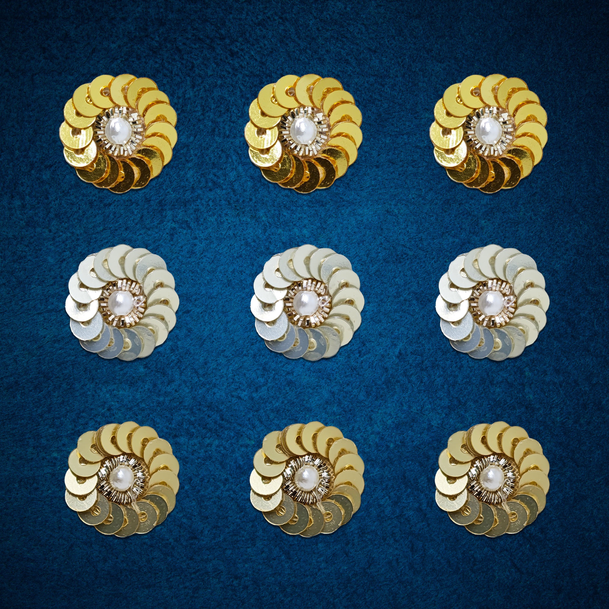 Add sparkle and elegance to your festive look with Indira, our premium handcrafted bindi collection. These 14mm round bindis feature layered metallic sequins arranged in a floral pattern with a pearl centre, creating a rich, dazzling finish perfect for weddings, festivals, classical dance and traditional celebrations.