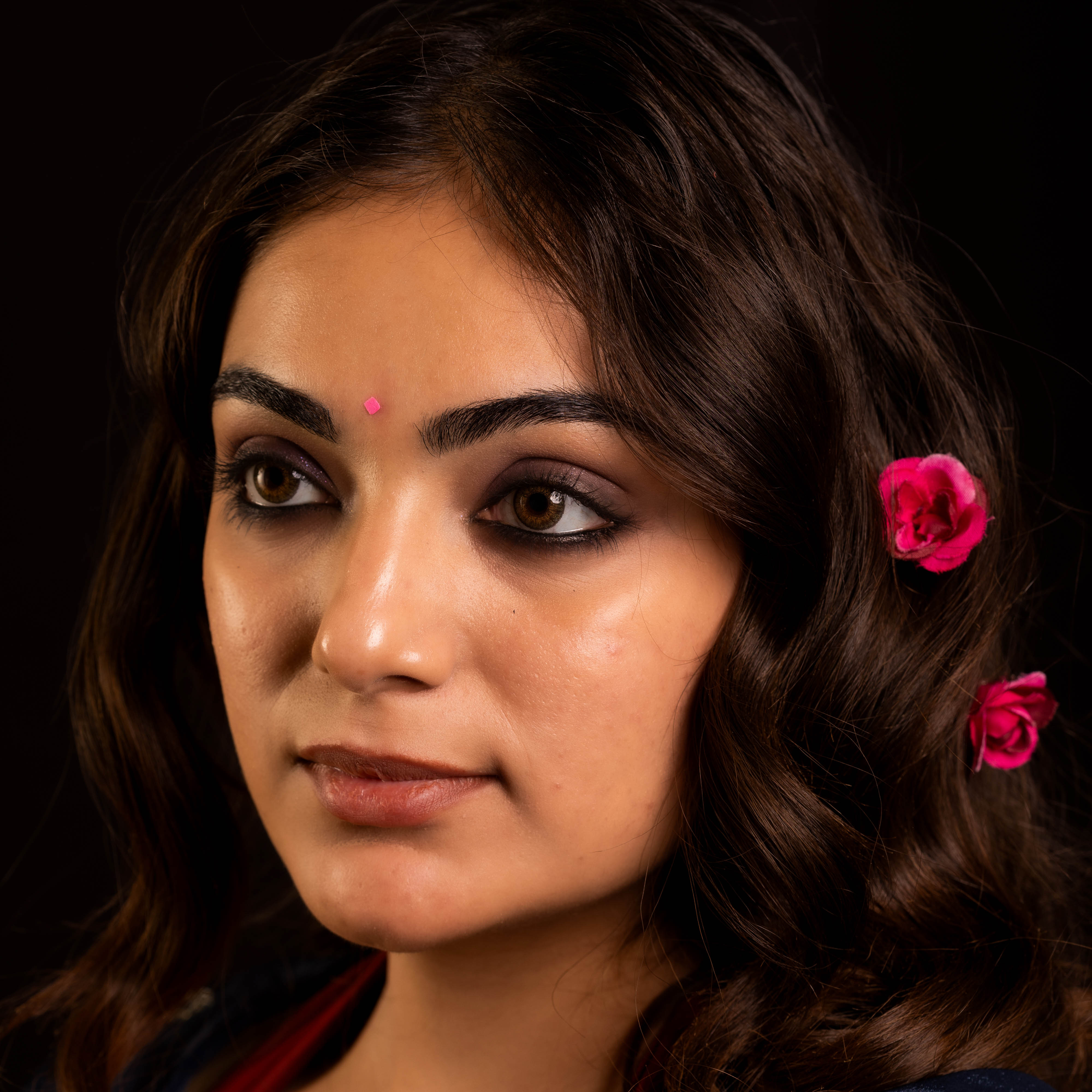 • To apply, gently remove the bindi from its backing and place it between the eyebrows.