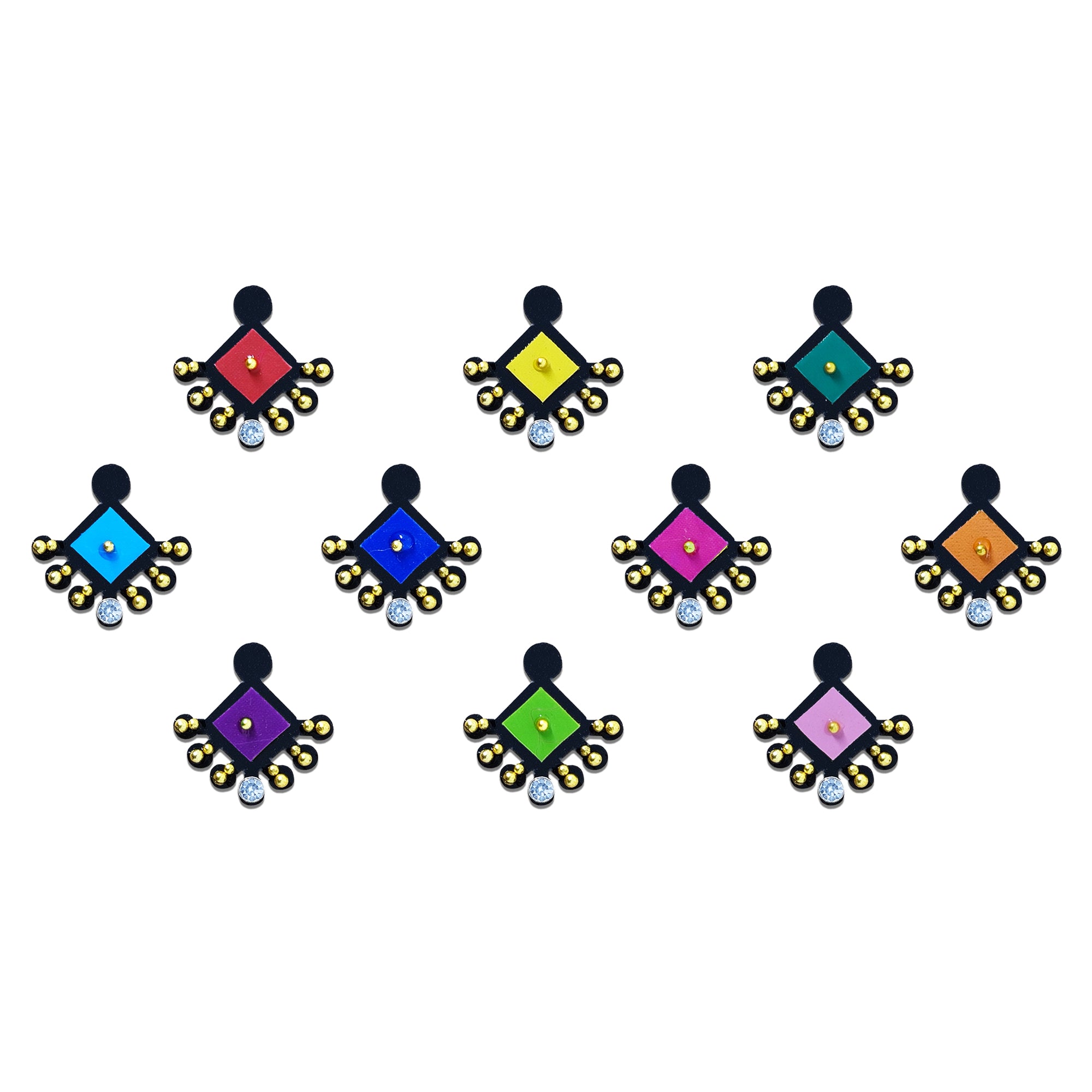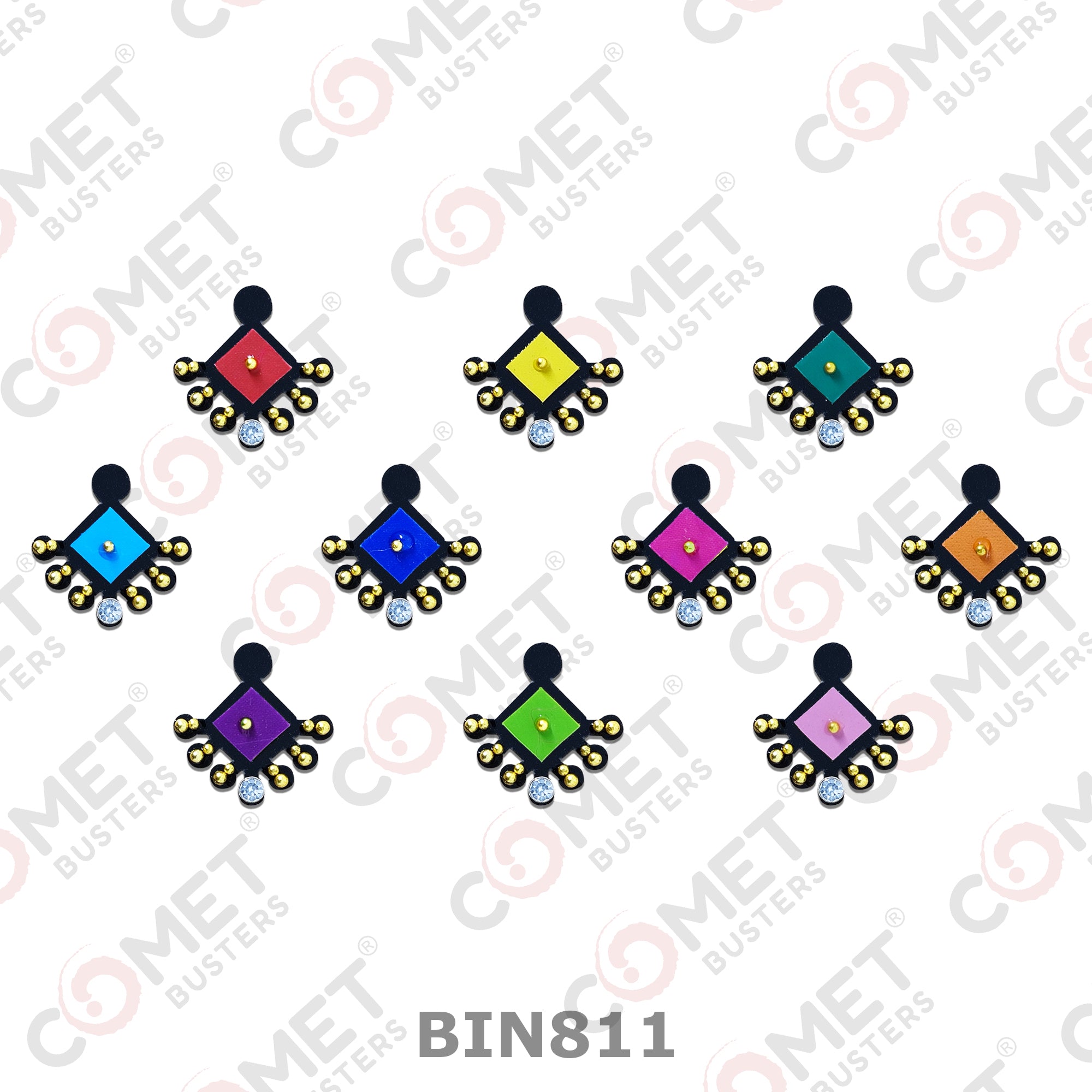 Comet Busters® Multicolor Square – Diamond, Shiny Beads – Handcrafted, Reusable & Skin-Friendly Bindis for Casual Wear (12mm) – Forehead Bindi Stickers for Women & Girls – BIN811