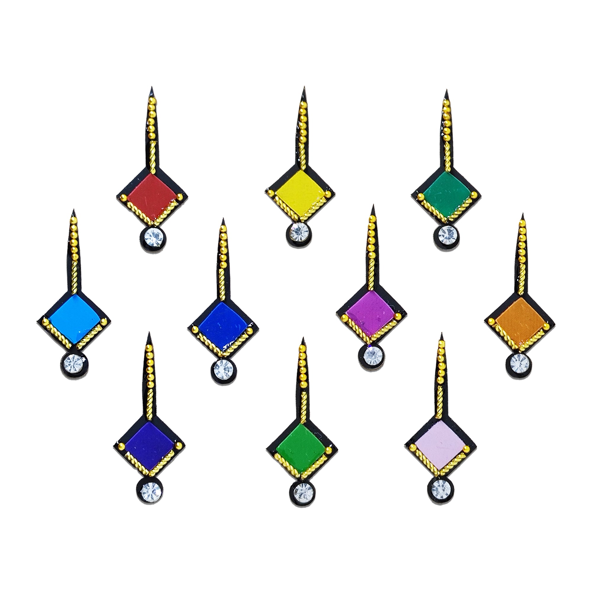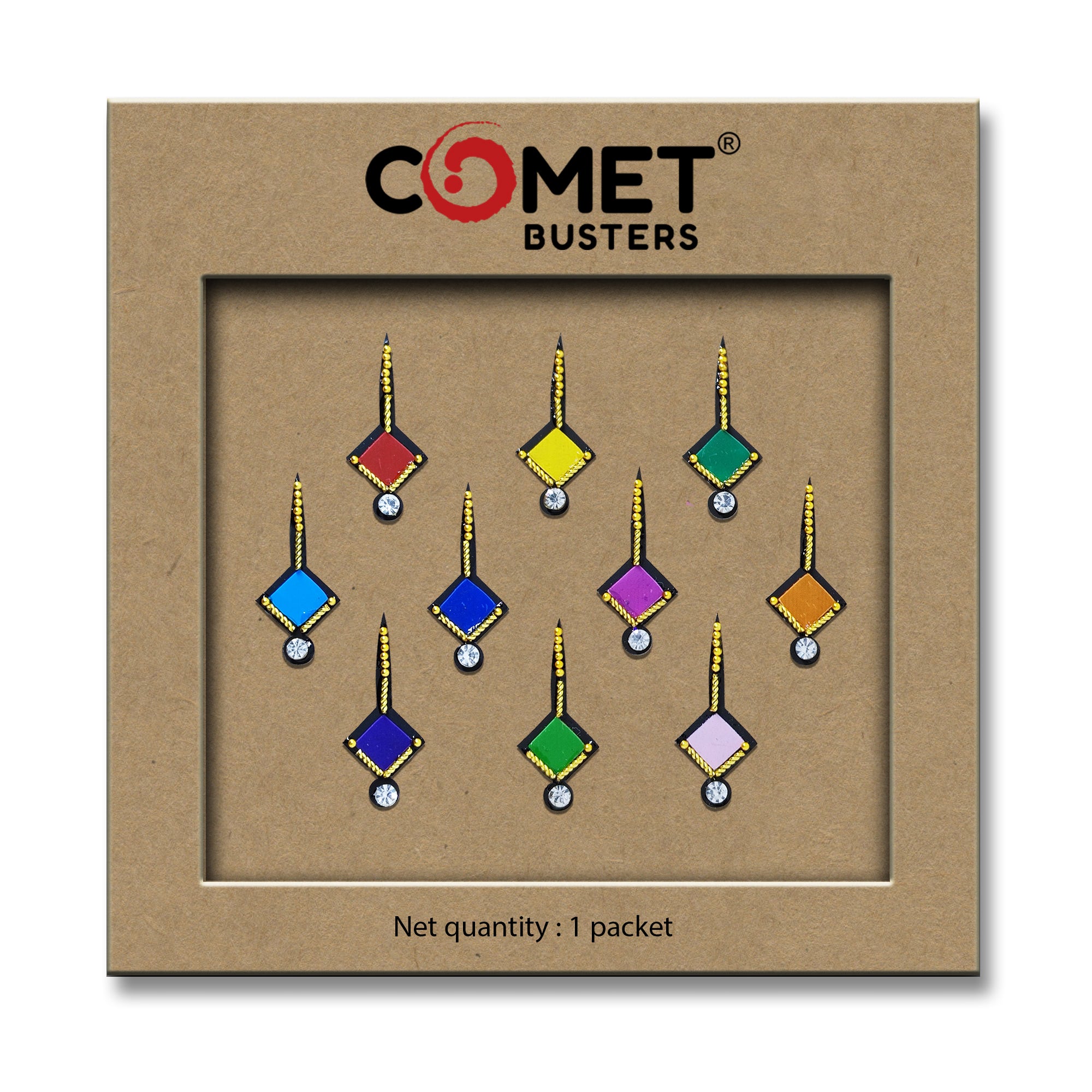 Comet Busters® Multicolor Square – Diamond, Shiny Beads – Handcrafted, Reusable & Skin-Friendly Bindis for Casual Wear (20mm) – Forehead Bindi Stickers for Women & Girls – BIN816