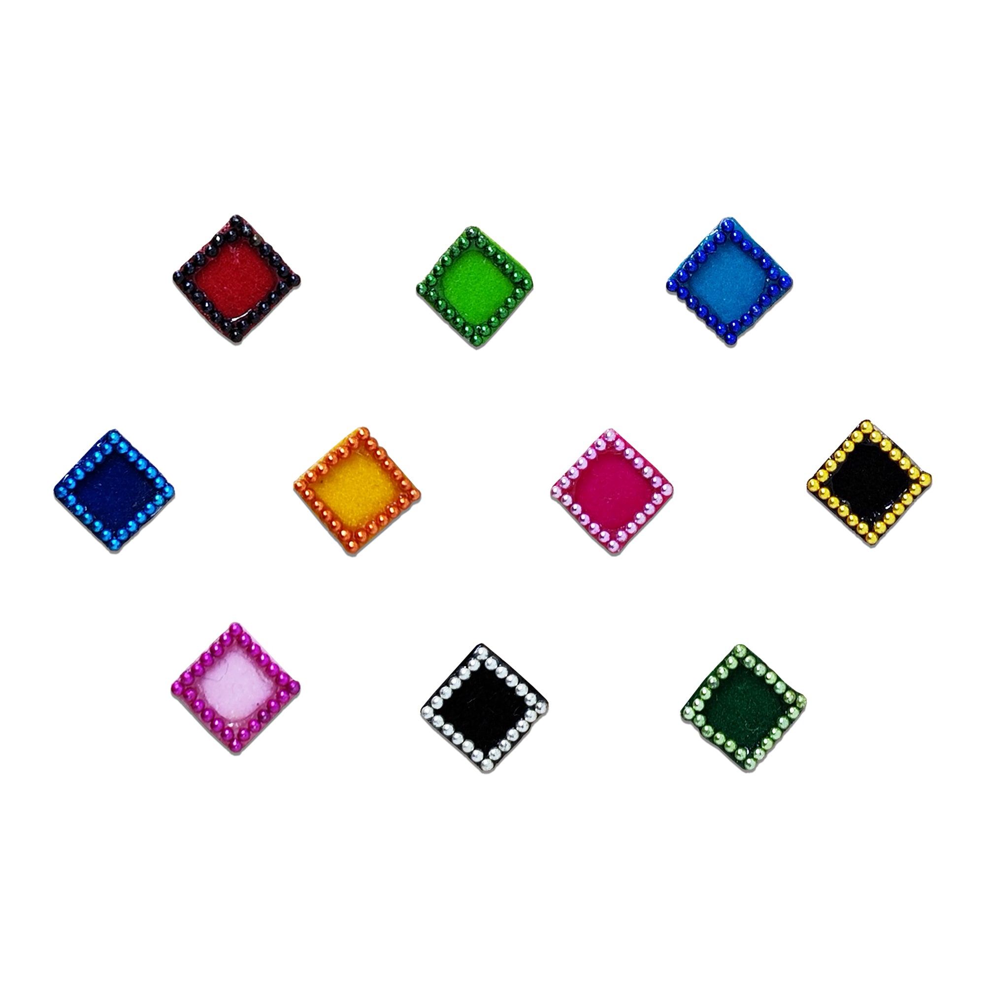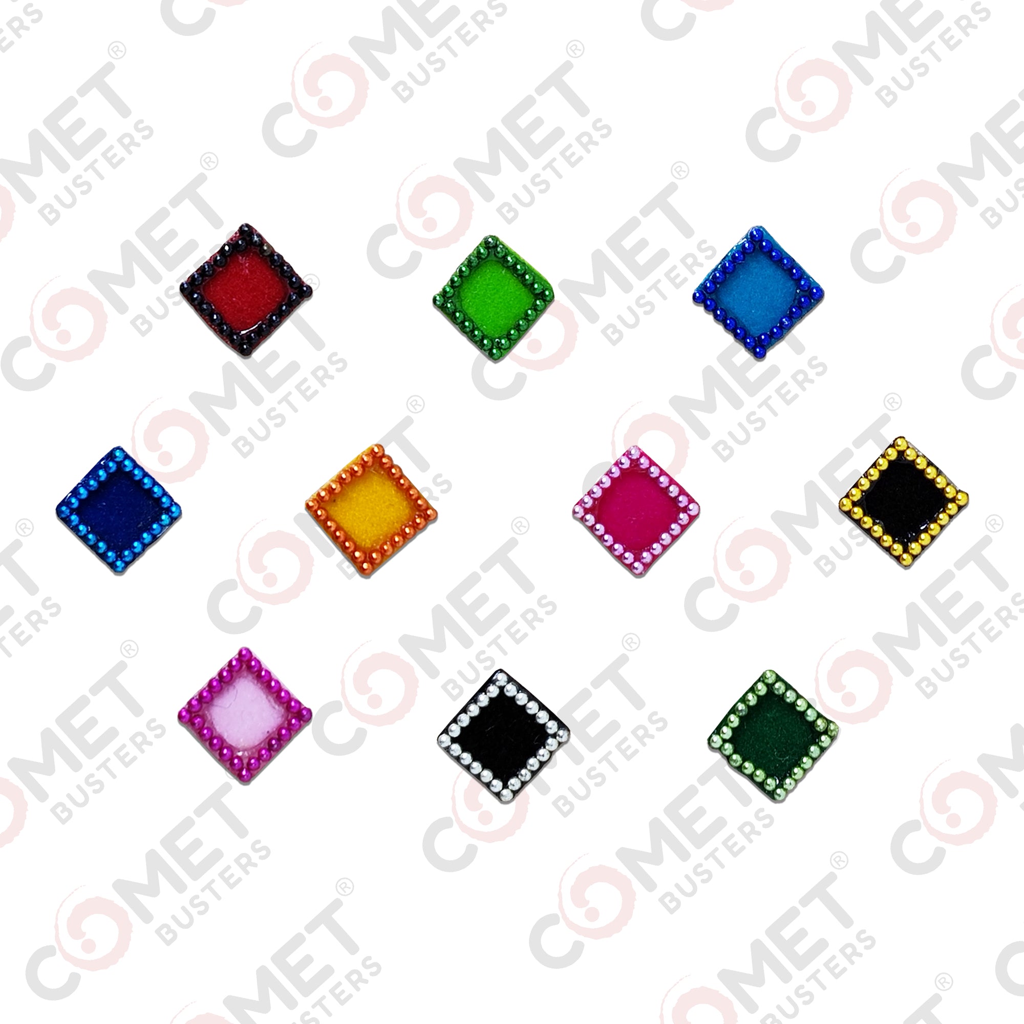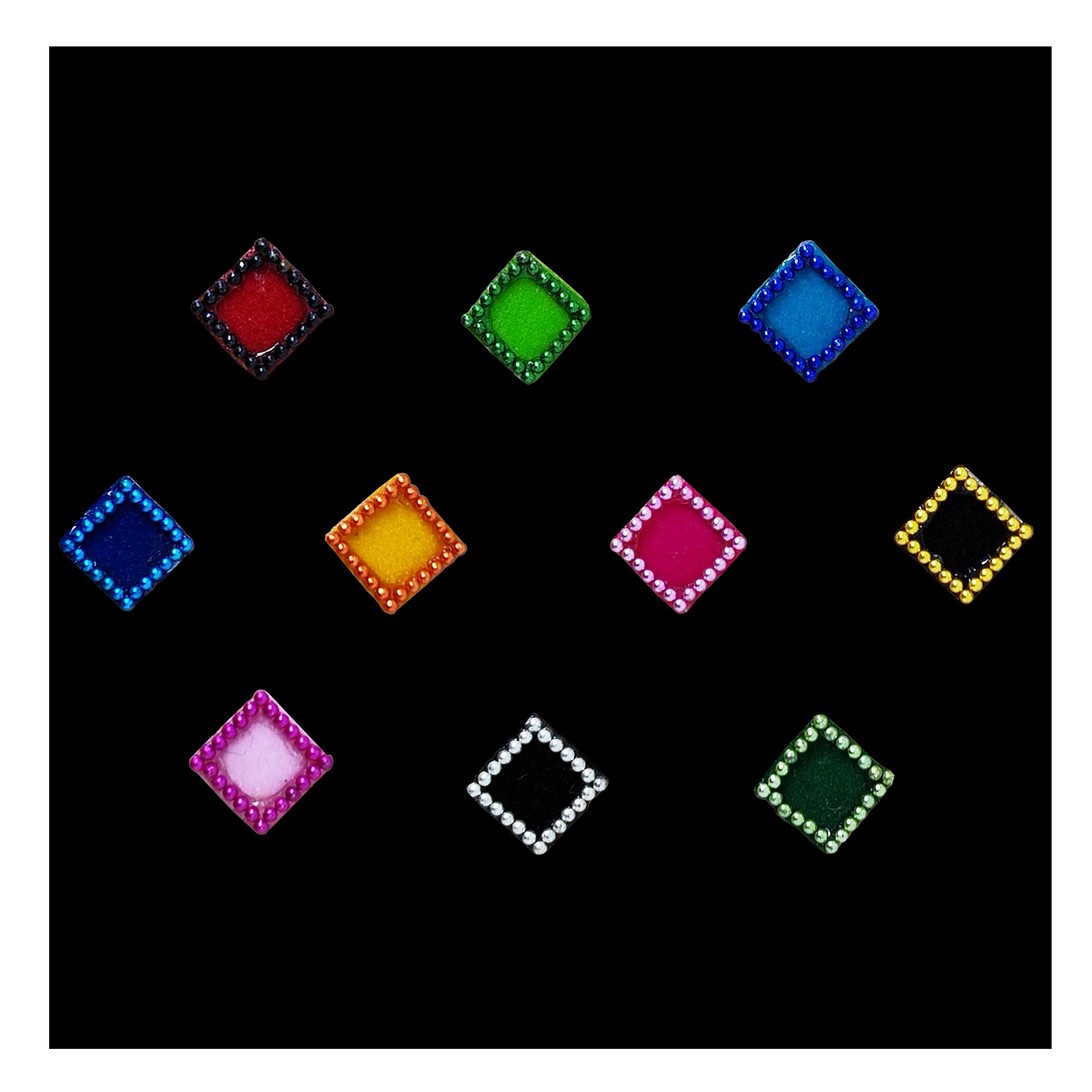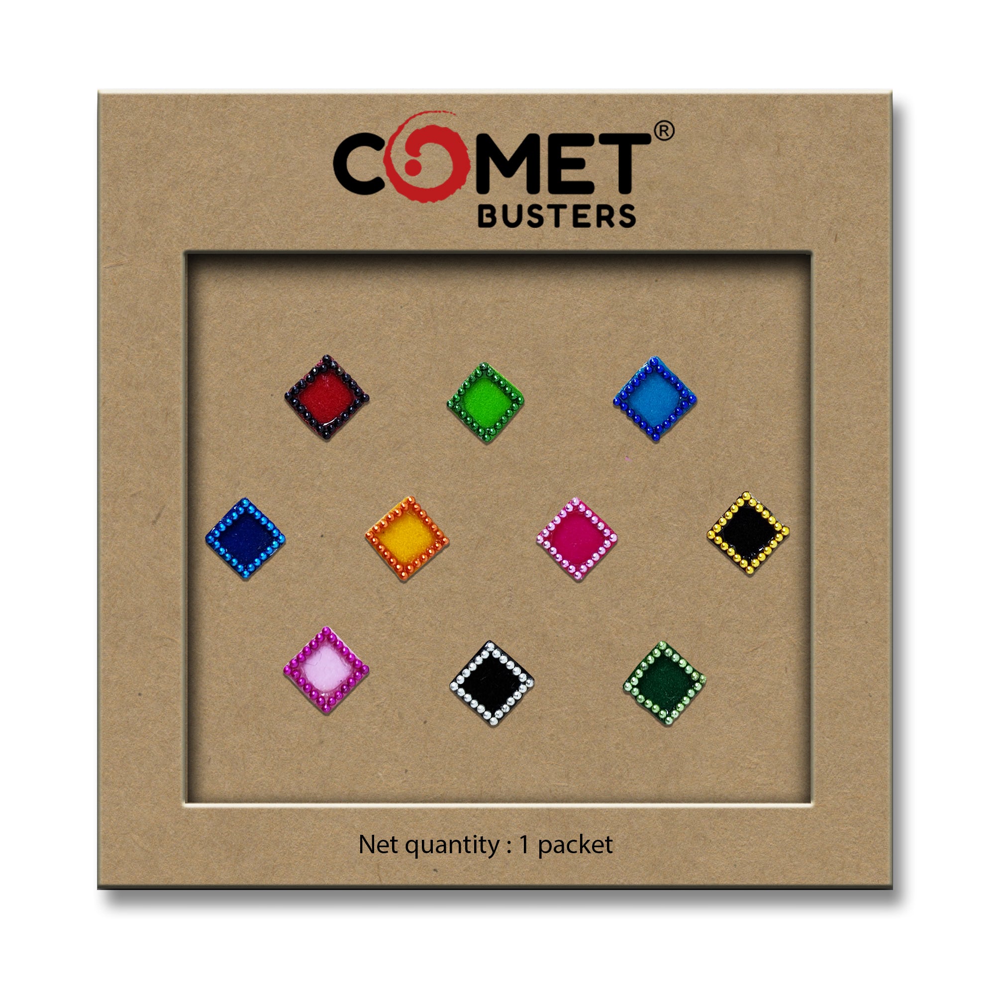 Comet Busters® Multicolor Square – Velvet, Shiny Beads – Handcrafted, Reusable & Skin-Friendly Bindis for Casual Wear (8mm) – Forehead Bindi Stickers for Women & Girls – BIN130
