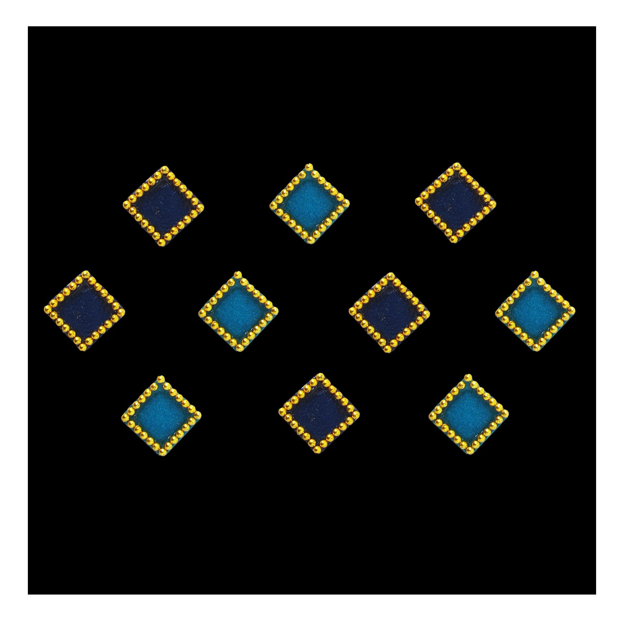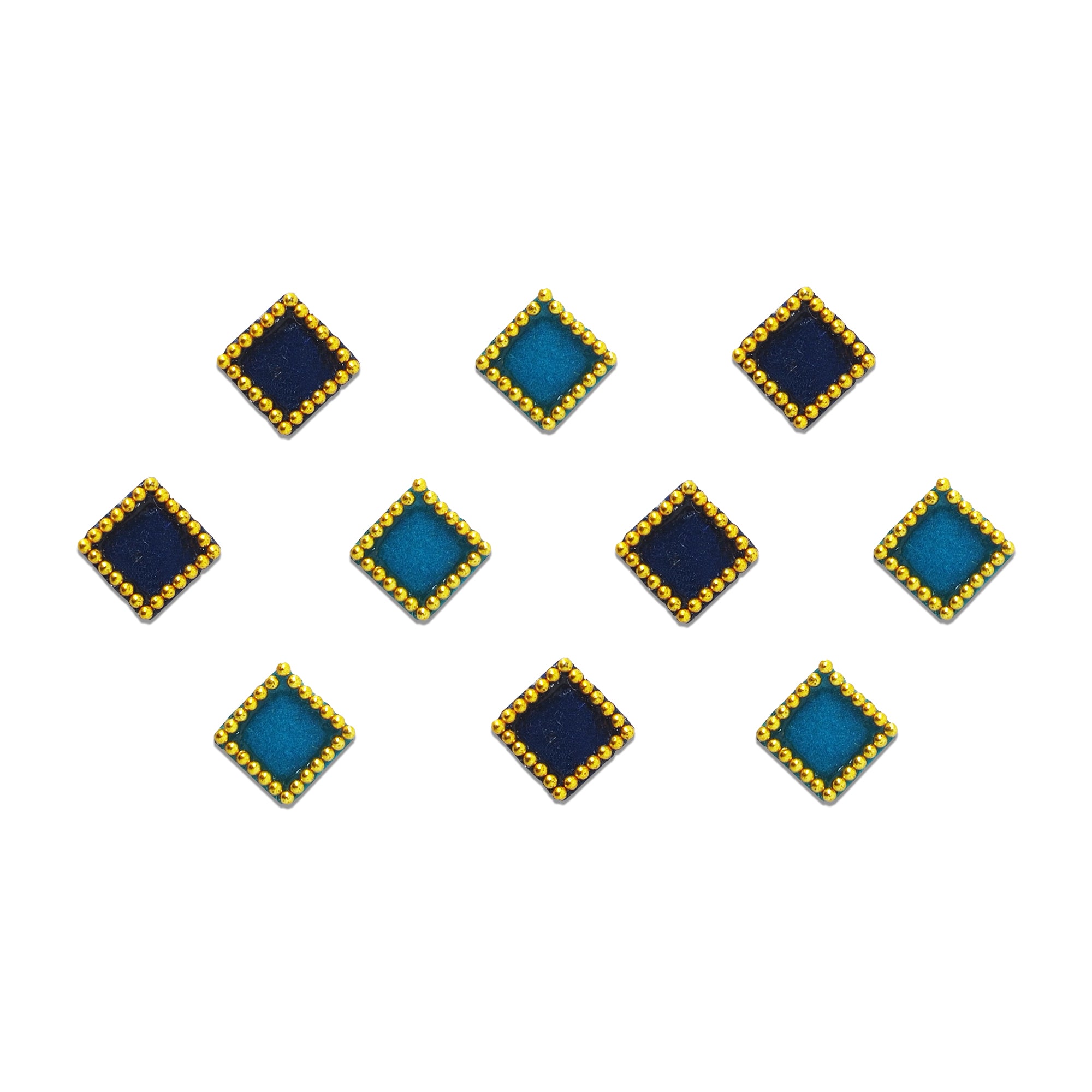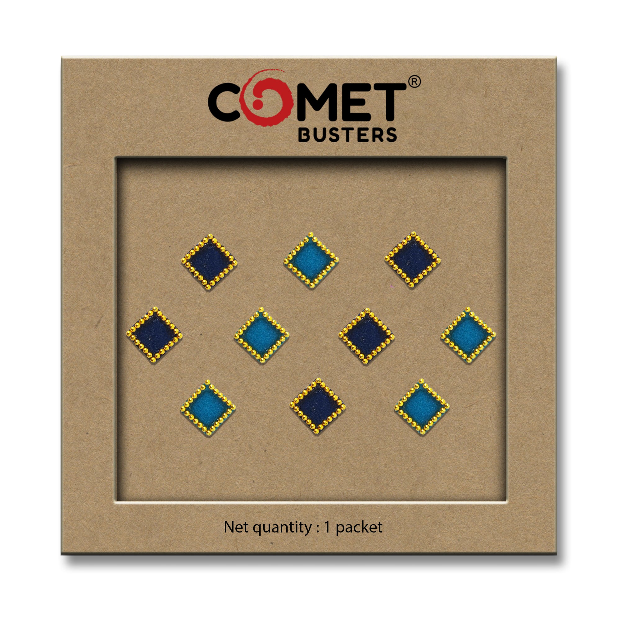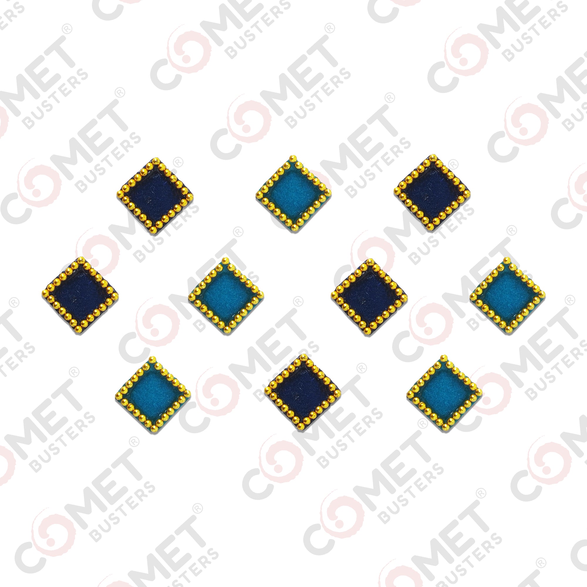 Comet Busters® Blue Square – Velvet, Shiny Beads – Handcrafted, Reusable & Skin-Friendly Bindis for Casual Wear (8mm) – Forehead Bindi Stickers for Women & Girls – BIN182