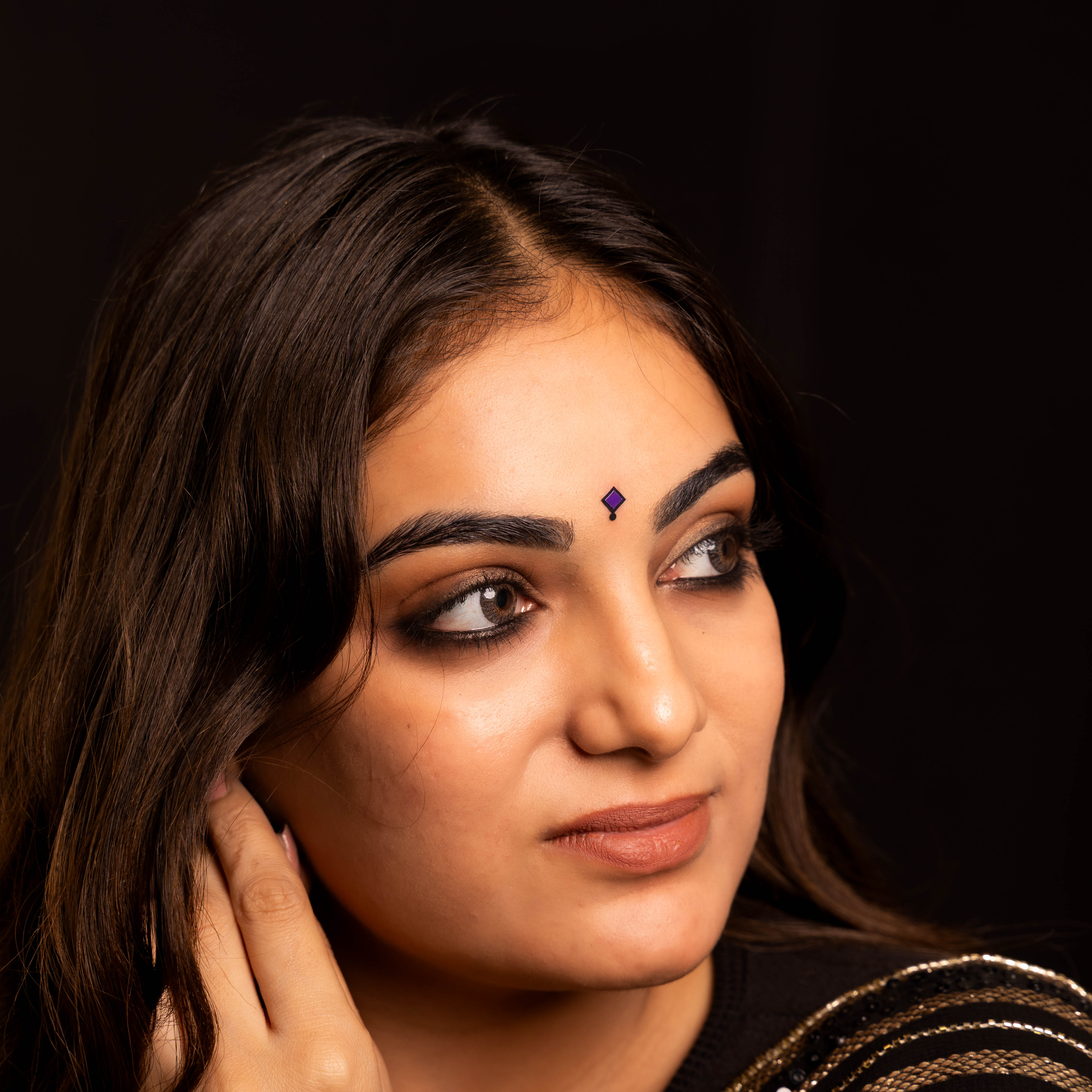 • Diamond Bindis: Sparkling bindi styles embellished with high-shine stones for a luxurious touch