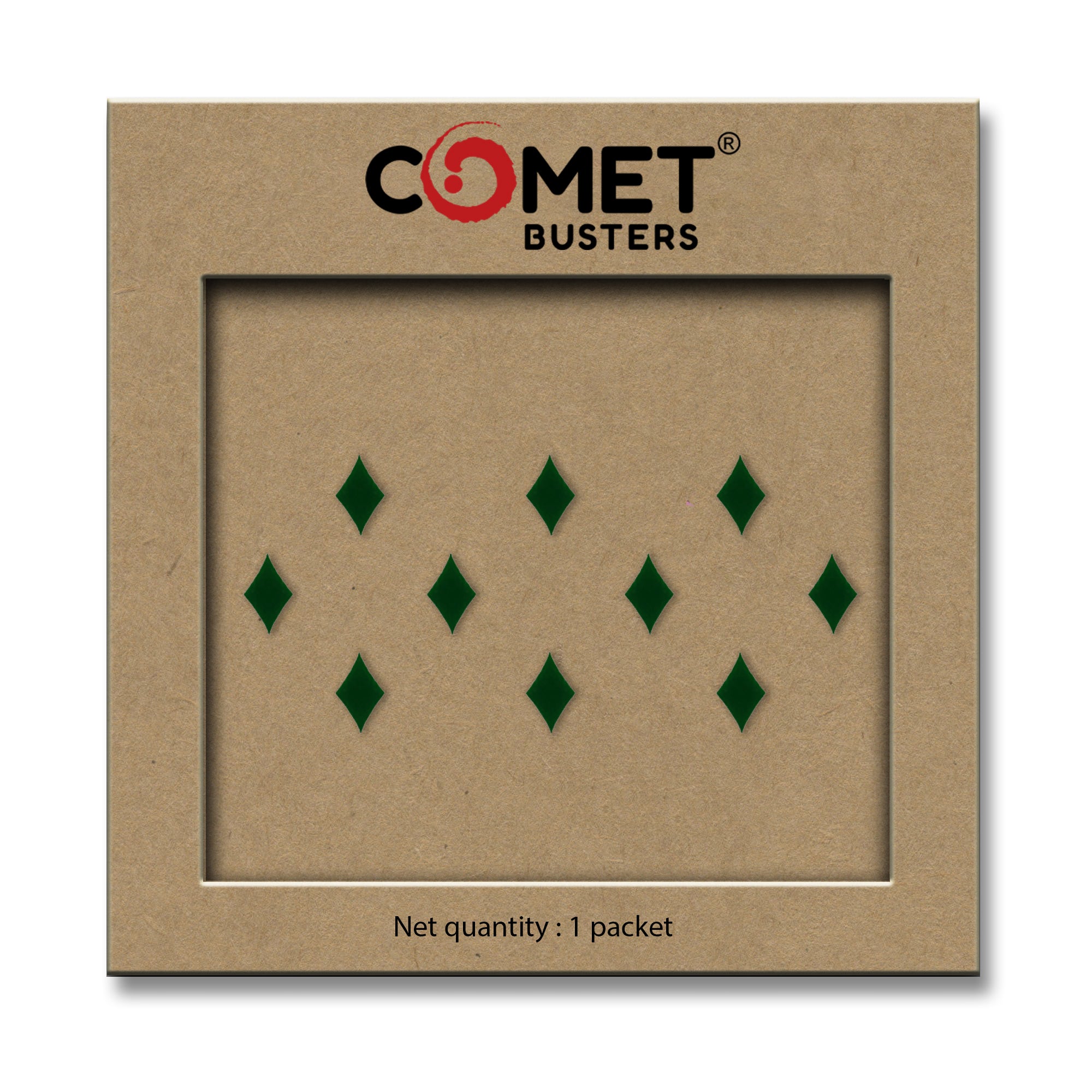 Comet Busters® Green Square Classic Bindis – Handcrafted, Reusable, Skin-Safe Indian Forehead Stickers for Women