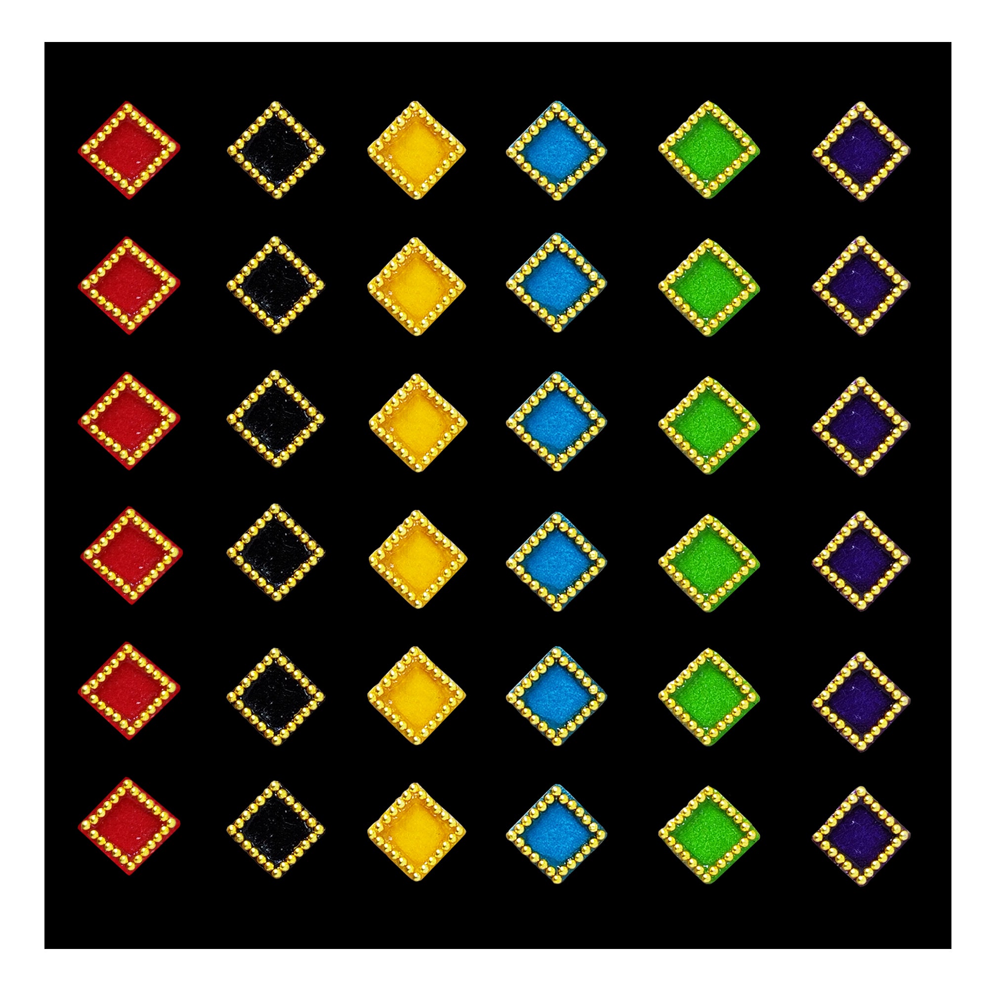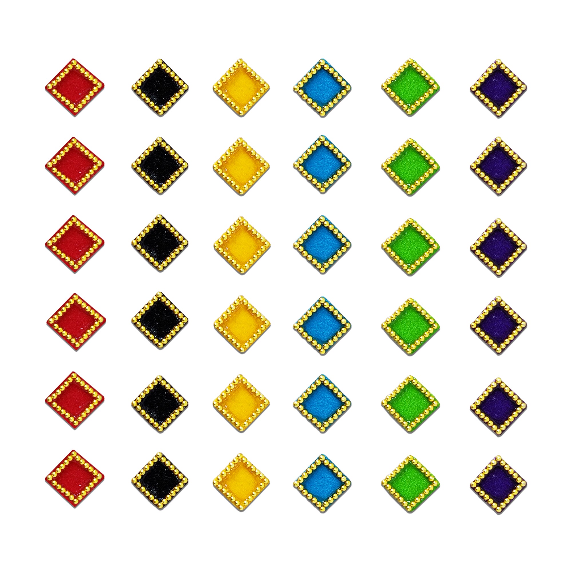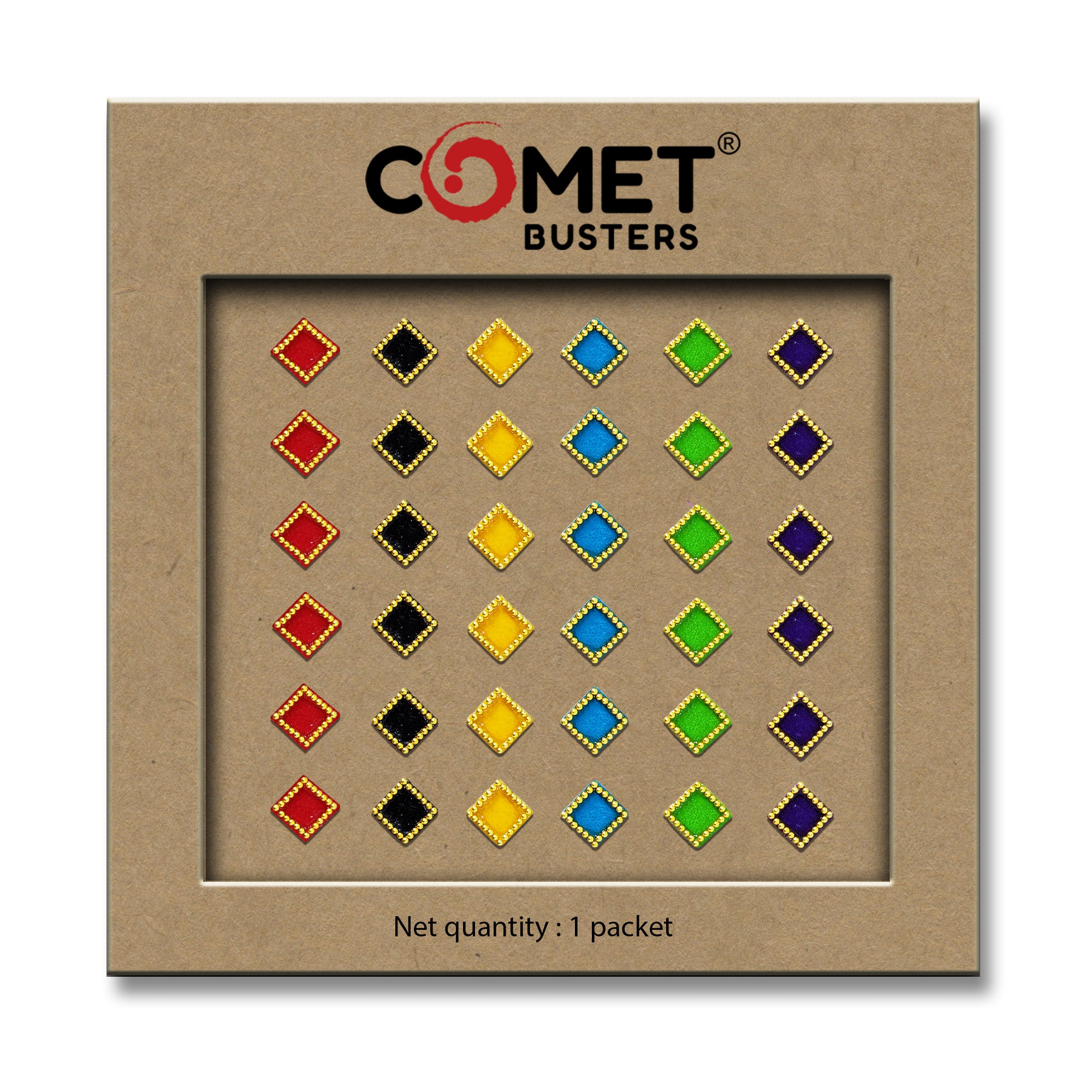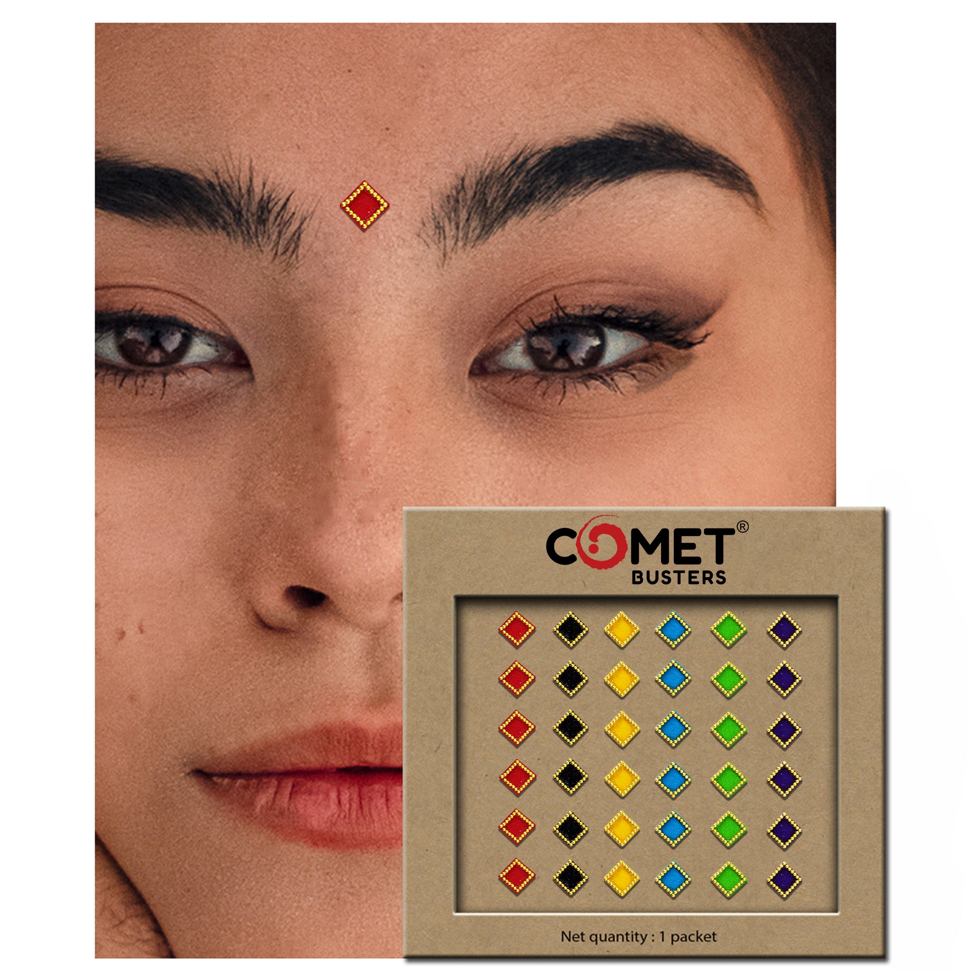 Comet Busters® Multicolor Square – Velvet, Shiny Beads – Handcrafted, Reusable & Skin-Friendly Bindis for Casual Wear (10mm) – Forehead Bindi Stickers for Women & Girls – BIN251