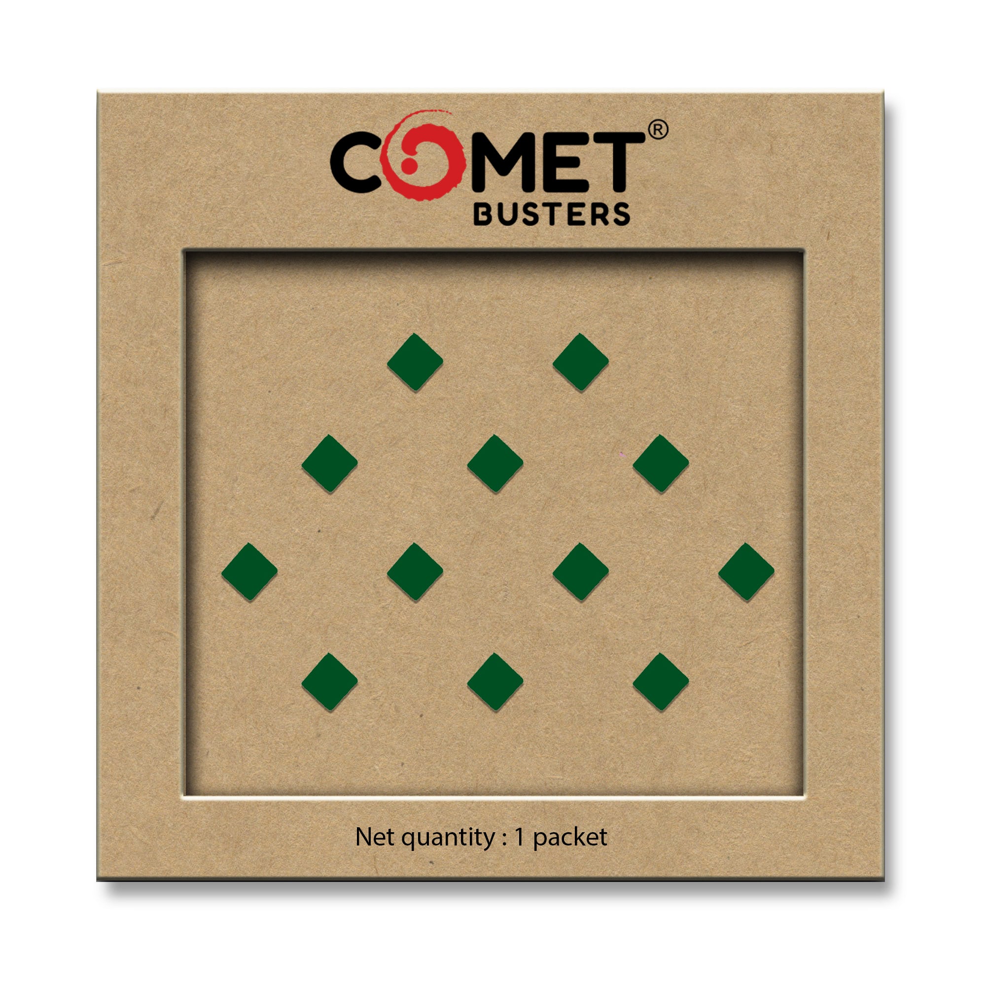 Comet Busters® Green Square – Velvet – Handcrafted, Reusable & Skin-Friendly Bindis for Casual Wear (5mm) – Forehead Bindi Stickers for Women & Girls – BIN1197
