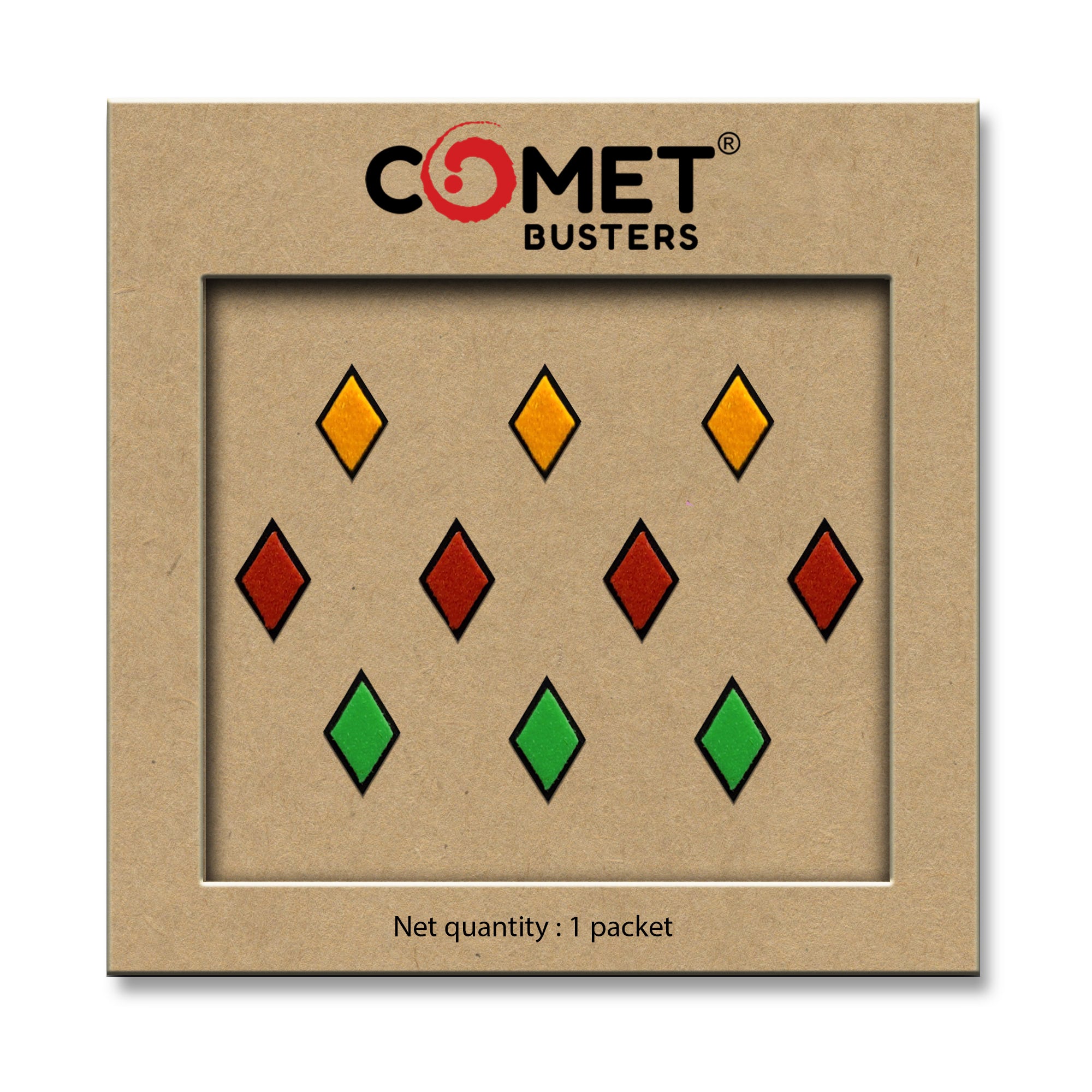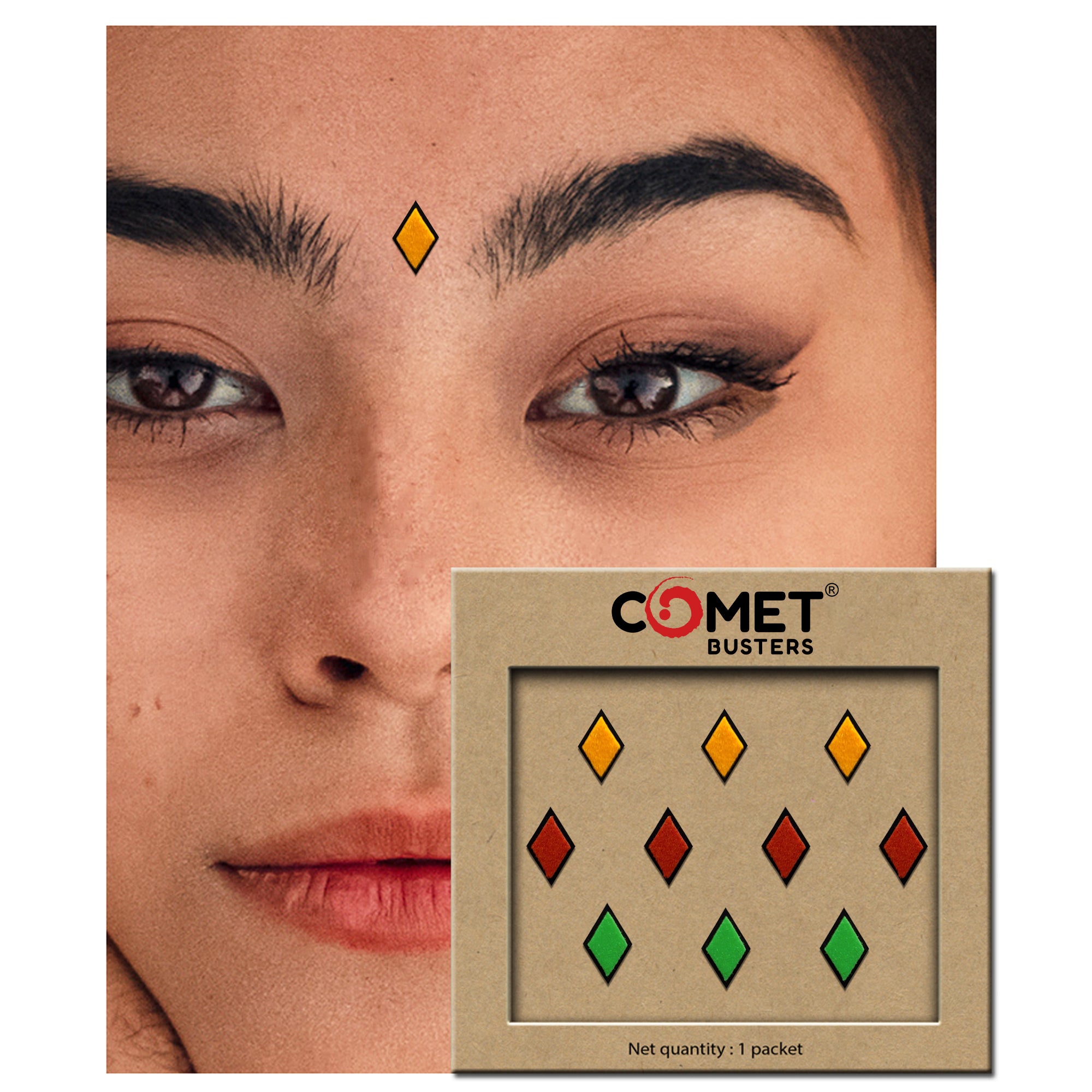 Comet Busters® Green, Maroon, Orange, Multicolor Square – Velvet – Handcrafted, Reusable & Skin-Friendly Bindis for Casual Wear (10mm) – Forehead Bindi Stickers for Women & Girls – BIN1306