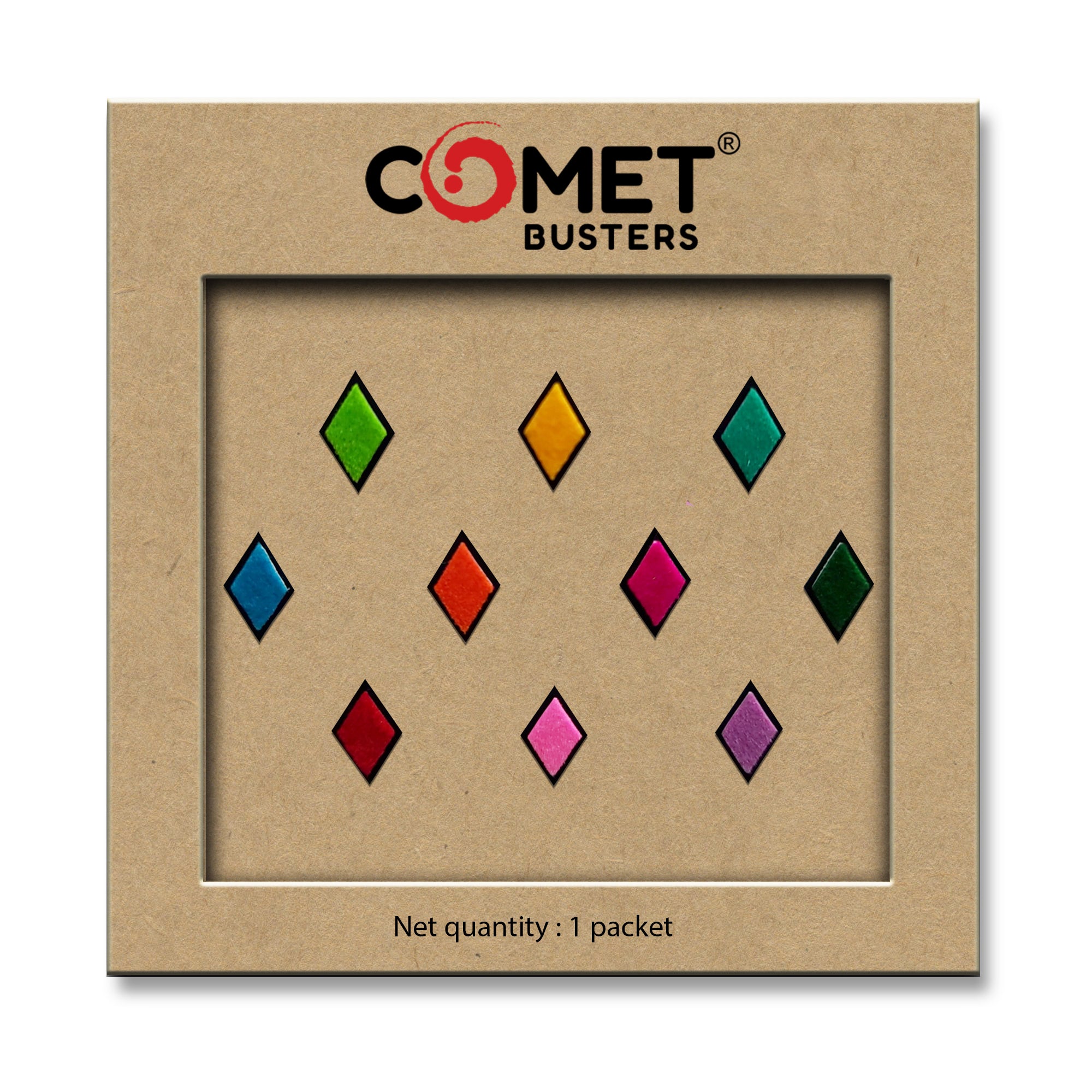 Comet Busters® Multicolor Square Classic Bindis – Handcrafted, Reusable, Skin-Safe Indian Forehead Stickers for Women