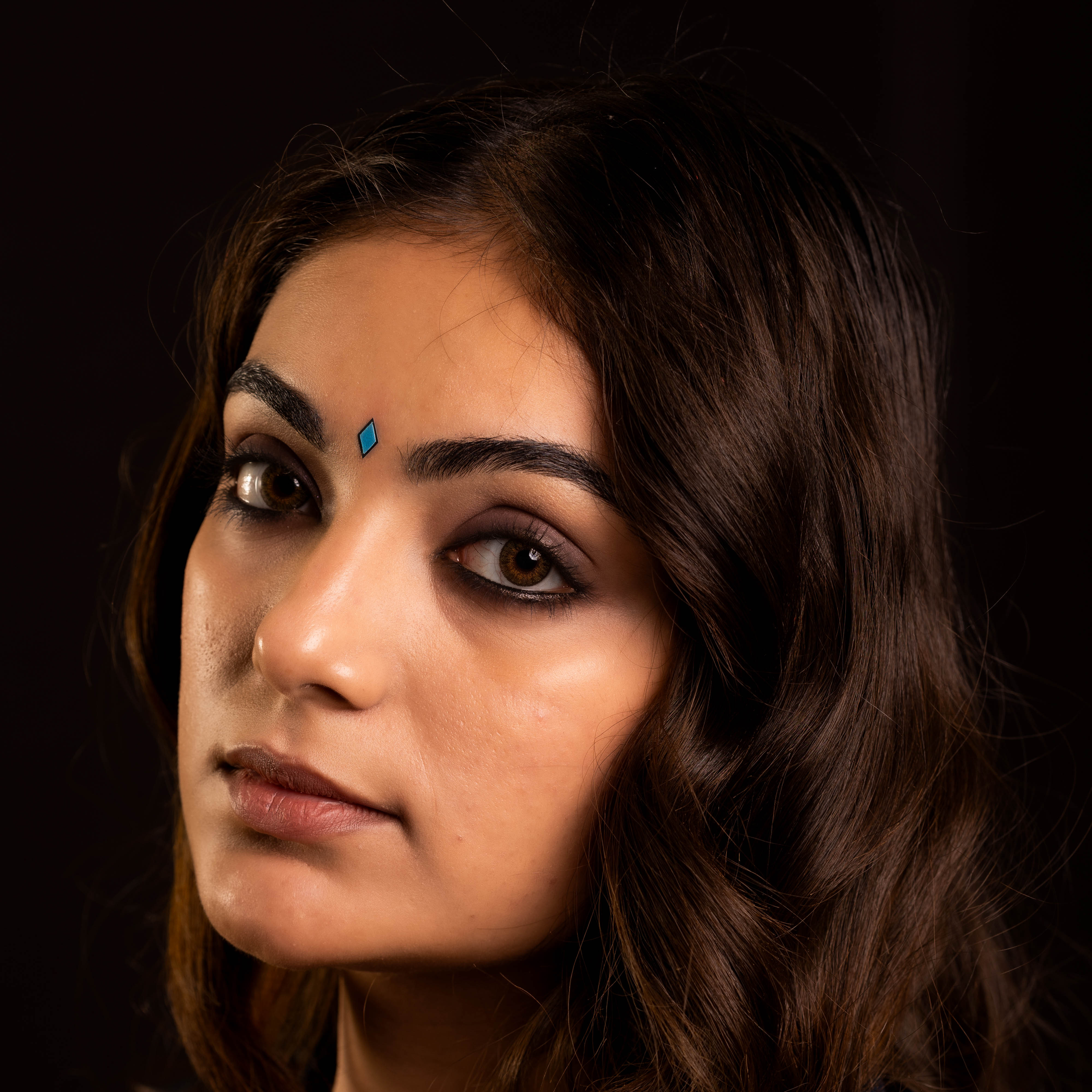 • To apply, gently remove the bindi from its backing and place it between the eyebrows.
