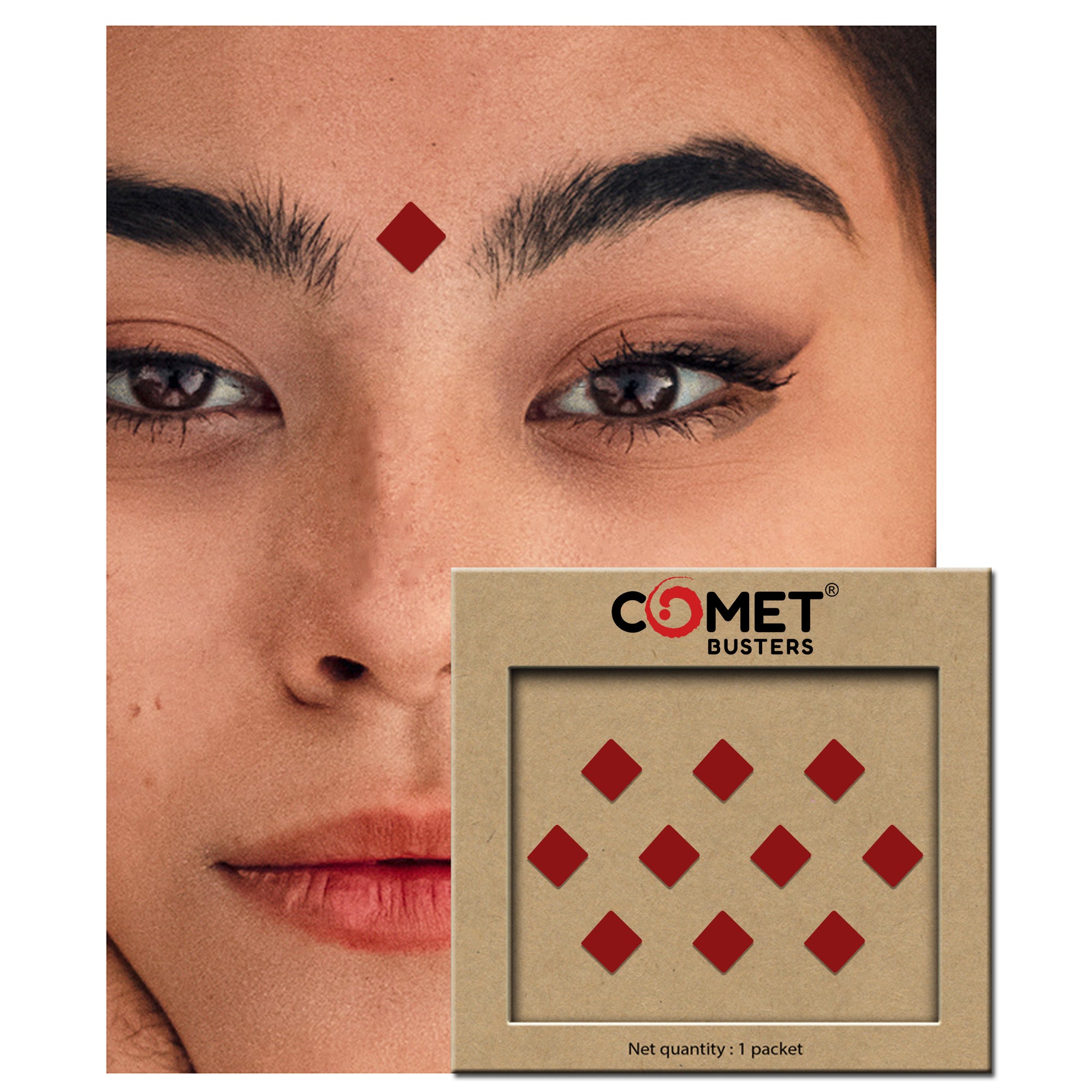 Comet Busters® Red Square Bindis – PVC – Handcrafted, Reusable & Skin-Friendly Bindis for Casual Wear (8mm) – Forehead Bindi Stickers for Women & Girls – BIN1193