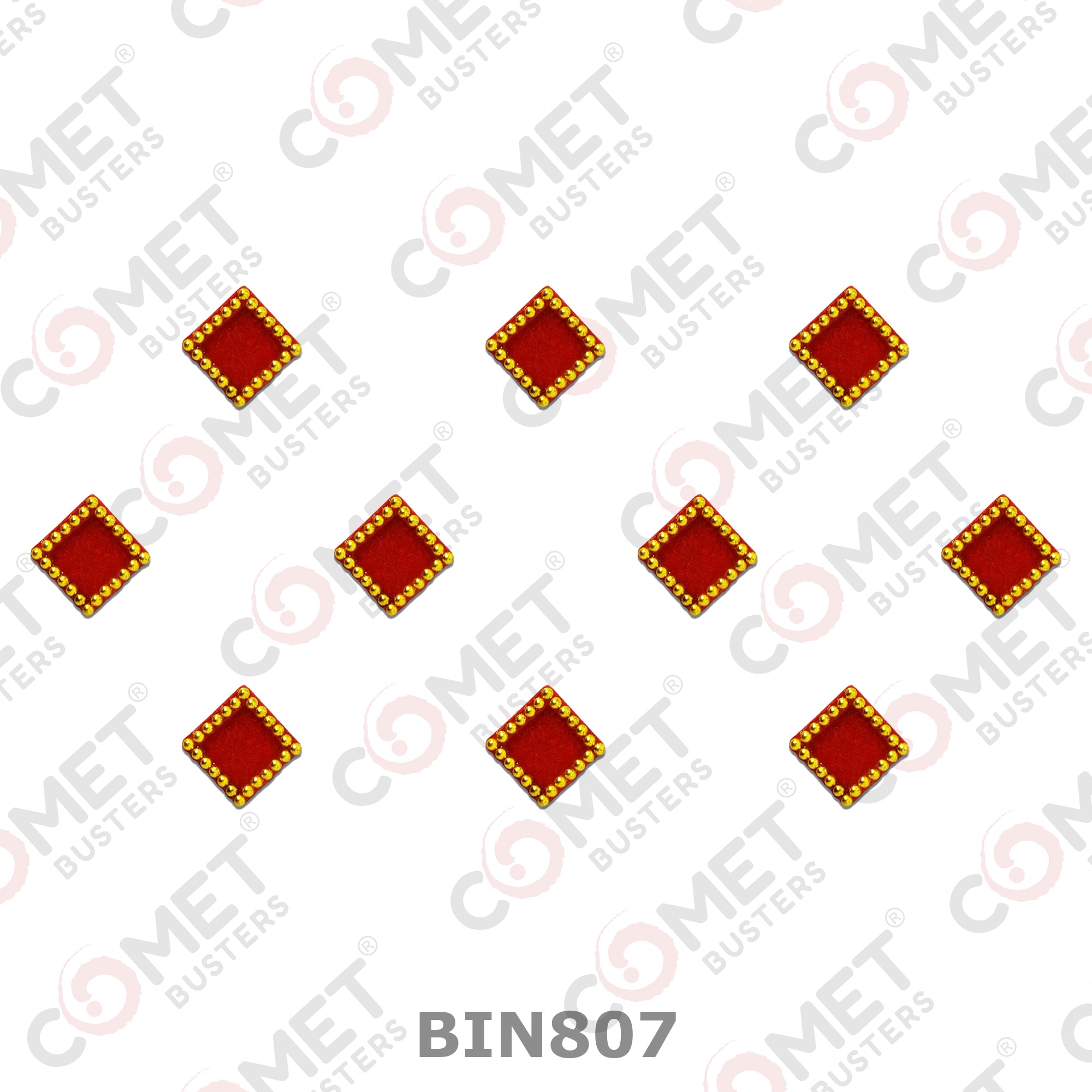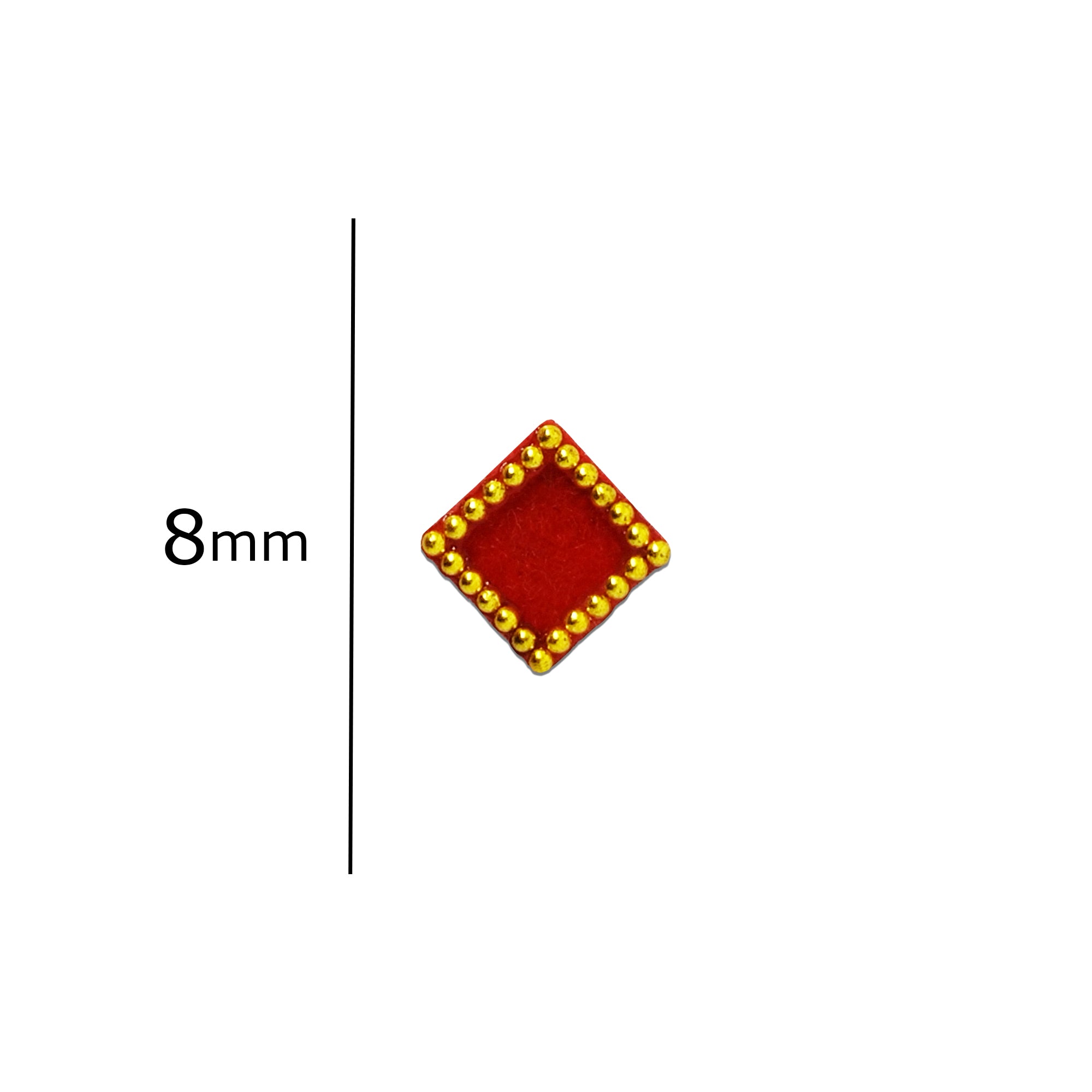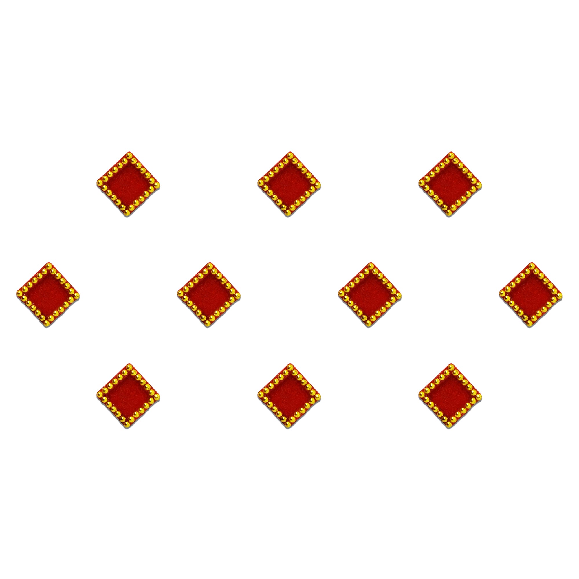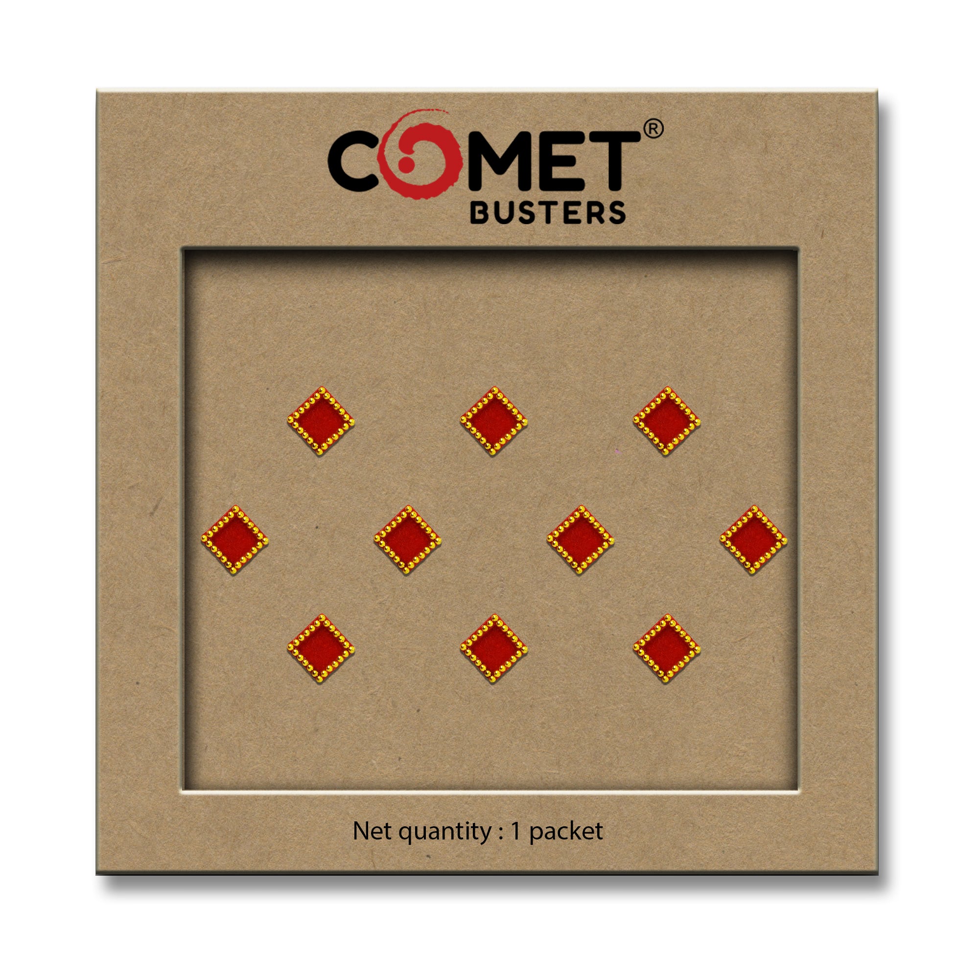 Comet Busters® Red Square – Velvet, Shiny Beads – Handcrafted, Reusable & Skin-Friendly Bindis for Casual Wear (8mm) – Forehead Bindi Stickers for Women & Girls – BIN807