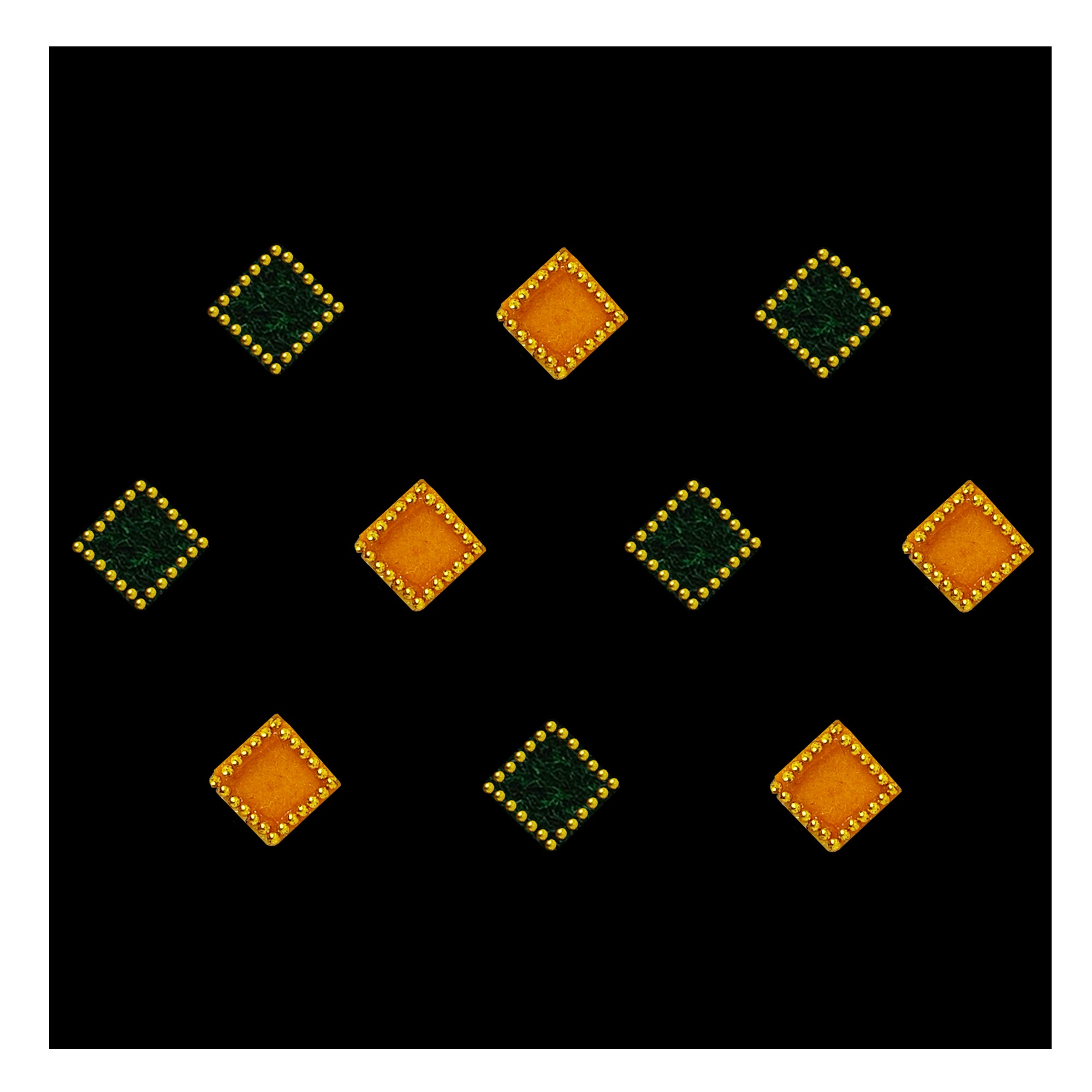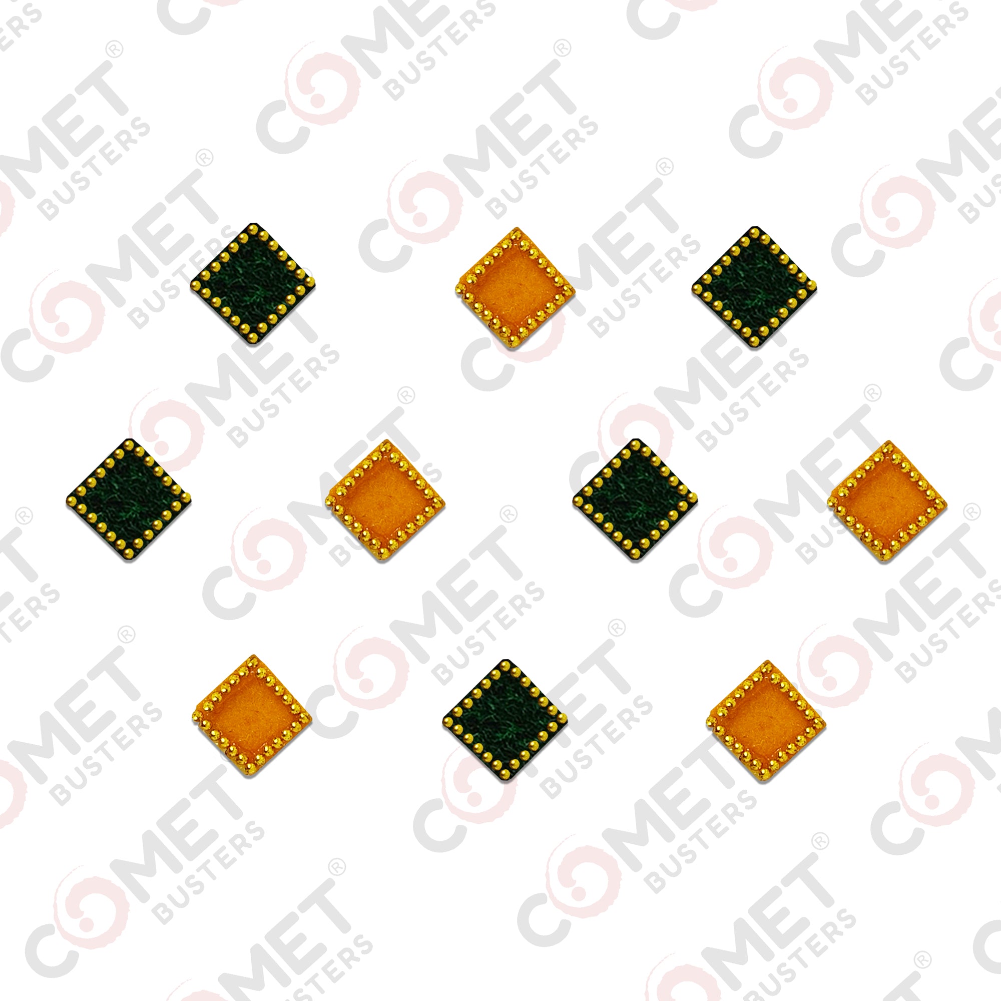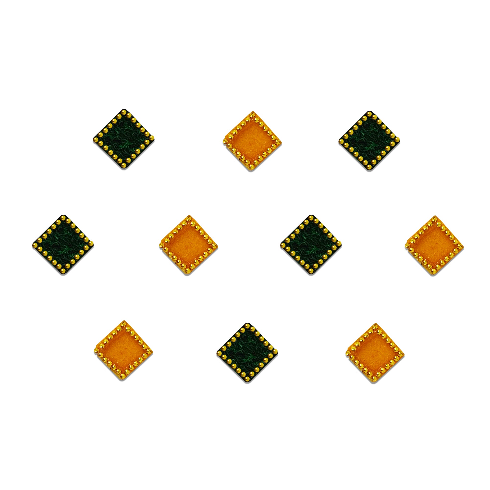 Comet Busters® Multicolor, Green, Yellow Square – Velvet, Shiny Beads – Handcrafted, Reusable & Skin-Friendly Bindis for Casual Wear (8mm) – Forehead Bindi Stickers for Women & Girls – BIN201