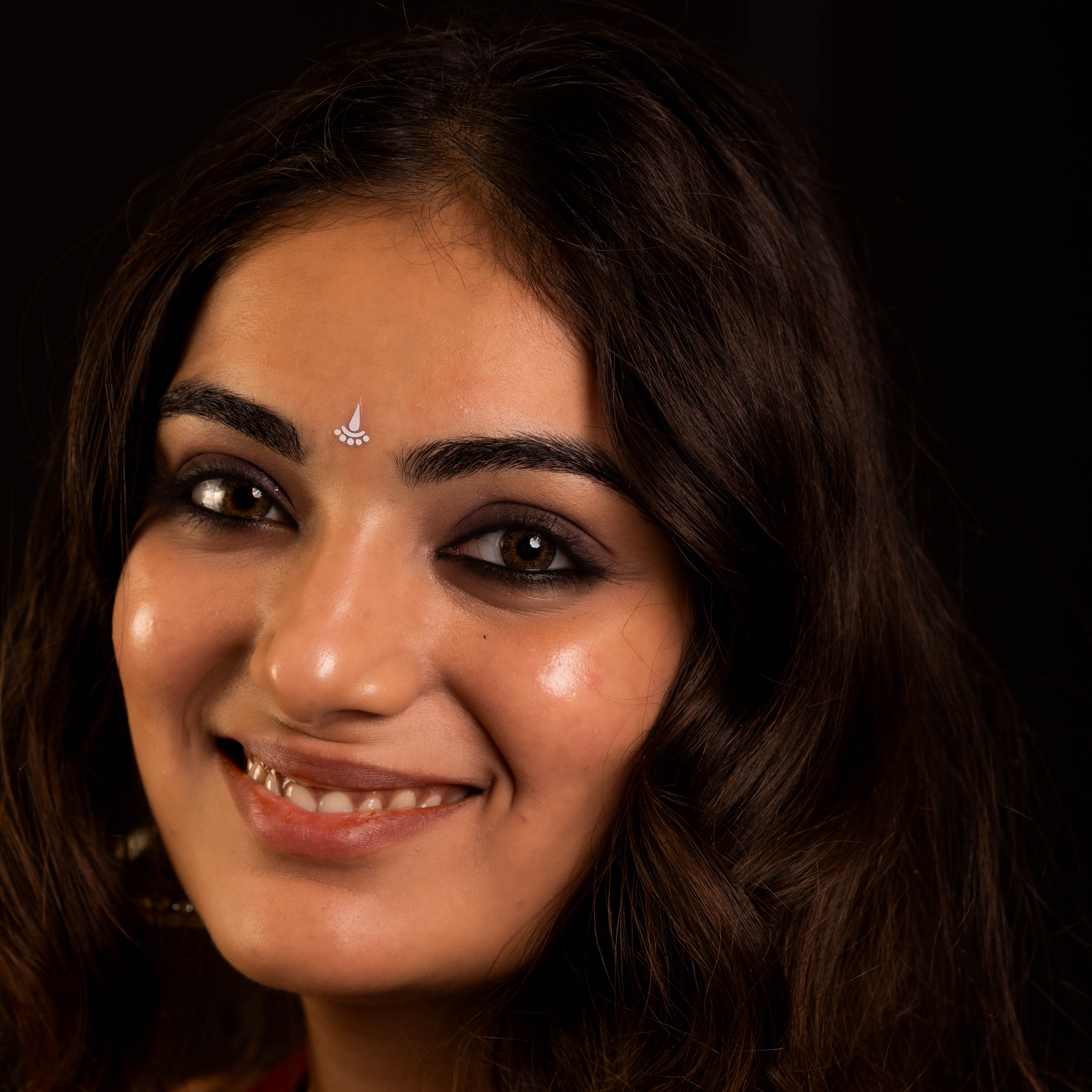 • To apply, gently remove the bindi from its backing and place it between the eyebrows.