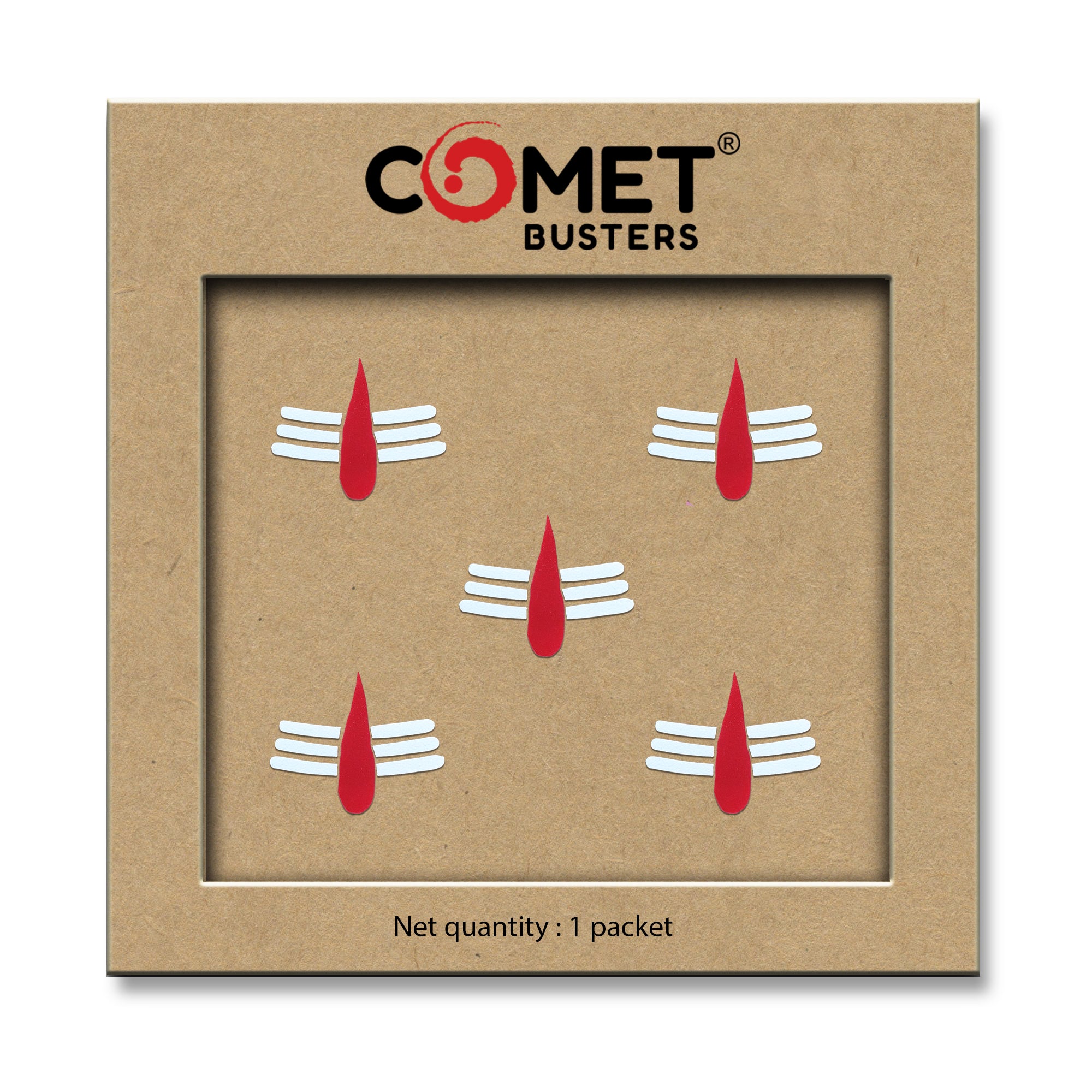 Channel divine energy with Comet Busters® Mahakal Tilak Spiritual Bindis. Featuring a bold red tilak paired with sacred white tripundra lines, this 15mm design reflects devotion to Lord Shiva. Skin-safe, lightweight, and reusable, these bindis are perfect for pujas, festivals, meditation, and spiritual occasions.