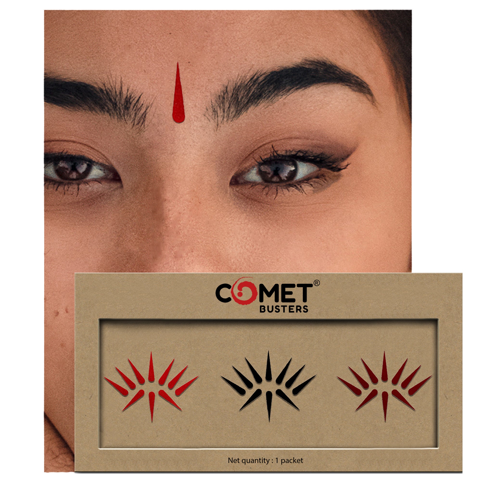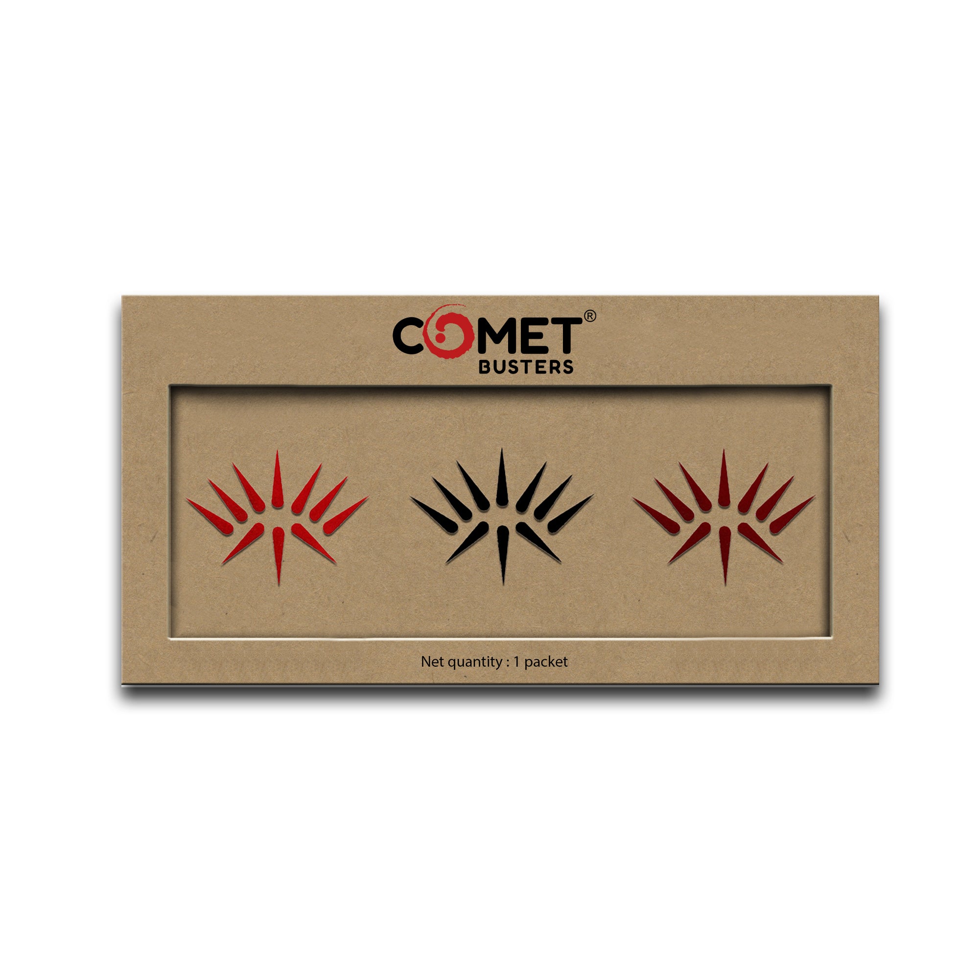 Comet Busters® Red, Maroon, Black, Multicolor Tilak – Velvet – Handcrafted, Reusable & Skin-Friendly Bindis for Casual Wear (13mm) – Forehead Bindi Stickers for Women & Girls – BIN1577